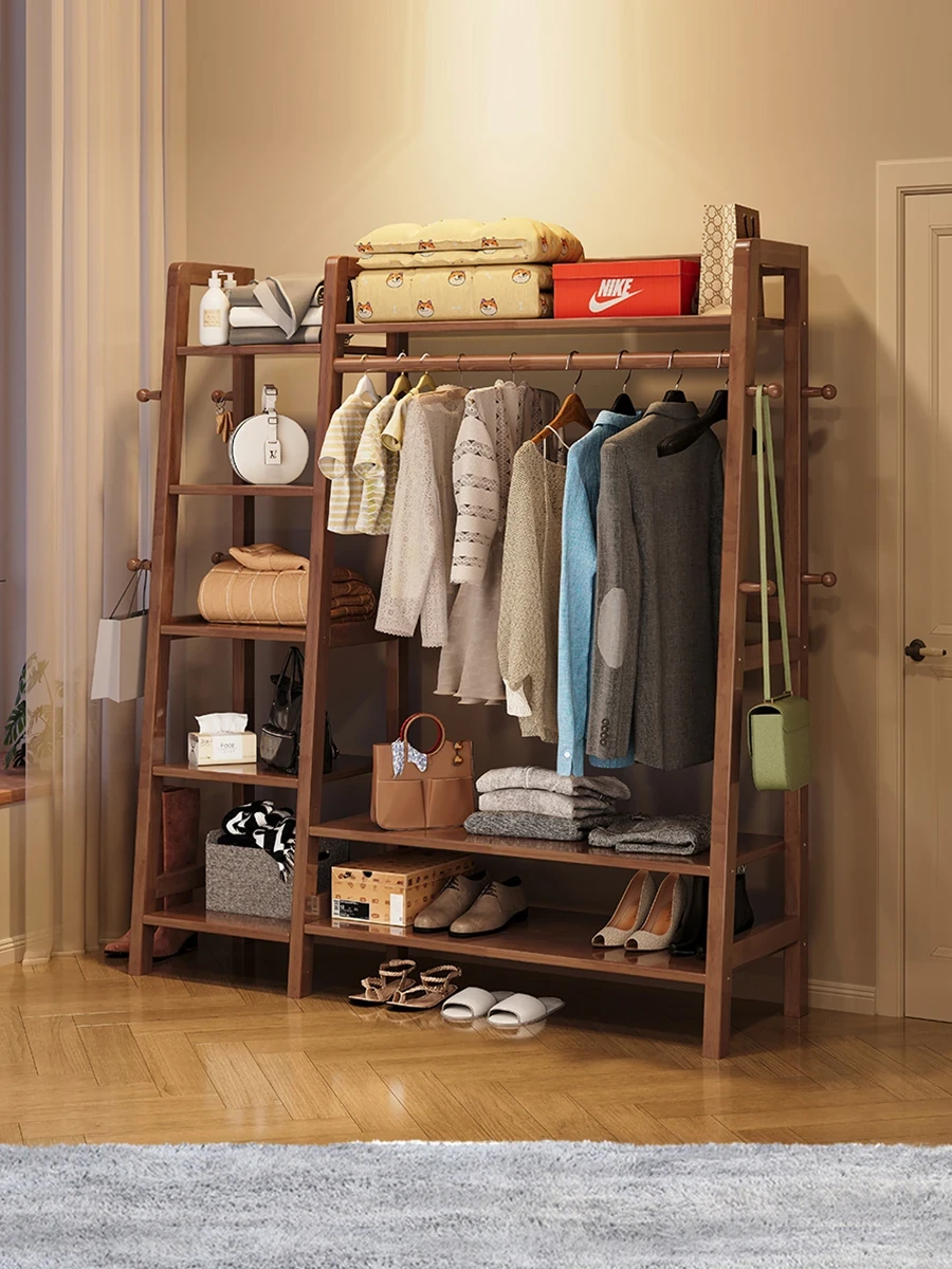 高品質の無垢材ハンガーラック|寝室・リビングに最適な多層収納|スタイリッシュで実用的な衣服掛け|家中で活躍する便利なアイテム!