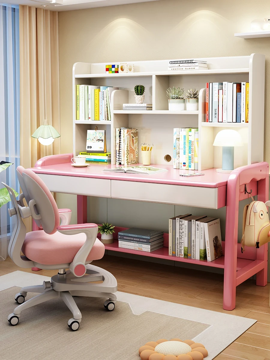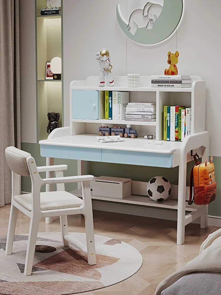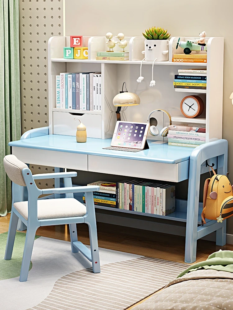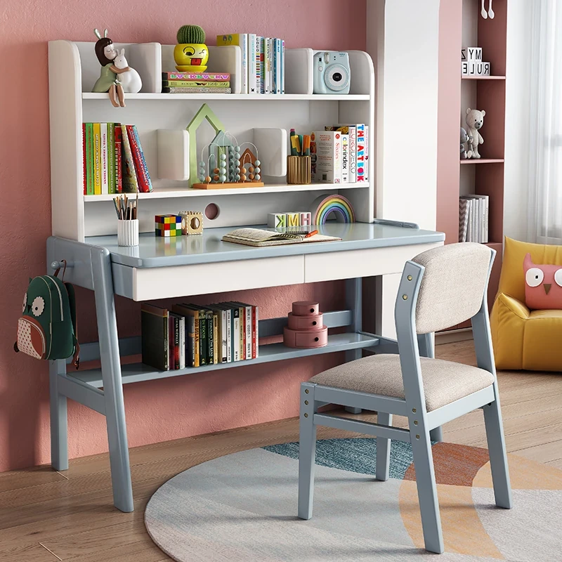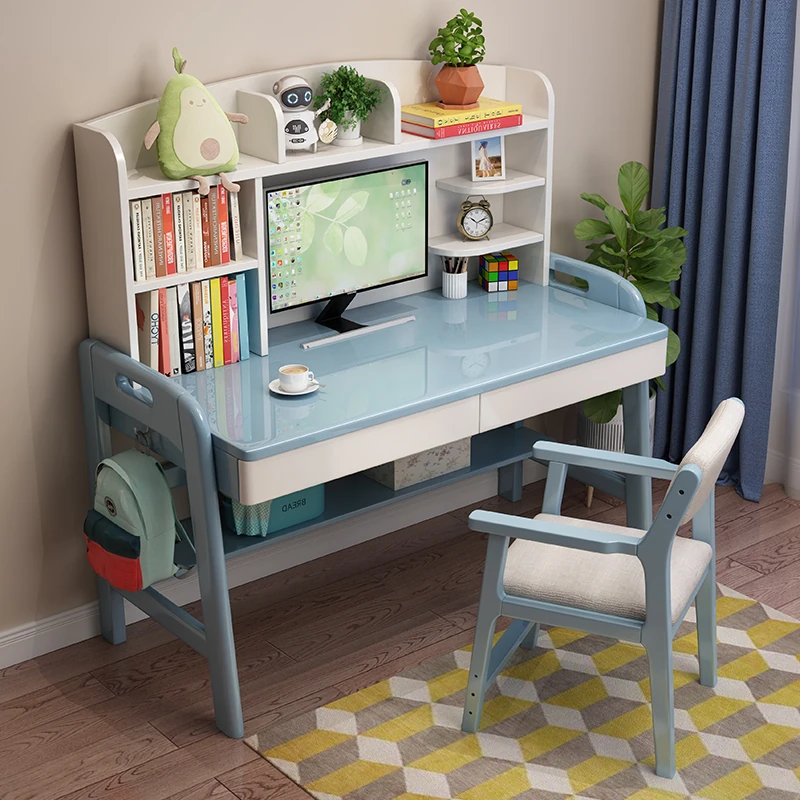 家庭用の天然木製デスク - 調整可能な本棚付きで、子供の学習に最適!シンプルなデザインで小学生にもぴったりなライティングテーブル、コンピューターデスクとしても活躍します。