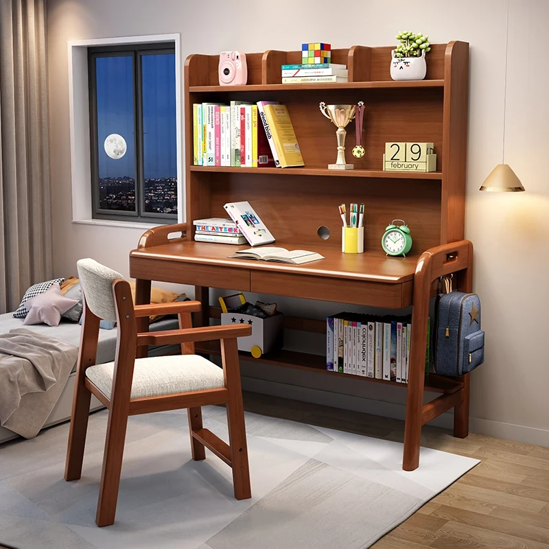 天然木製のデスク&本棚一体型!おしゃれで実用的な書斎用デスク。リビングや寝室にぴったり!簡単に組み立て可能で、中学生や高校生、小学生にも最適な学習デスク。快適な学びをサポートします!