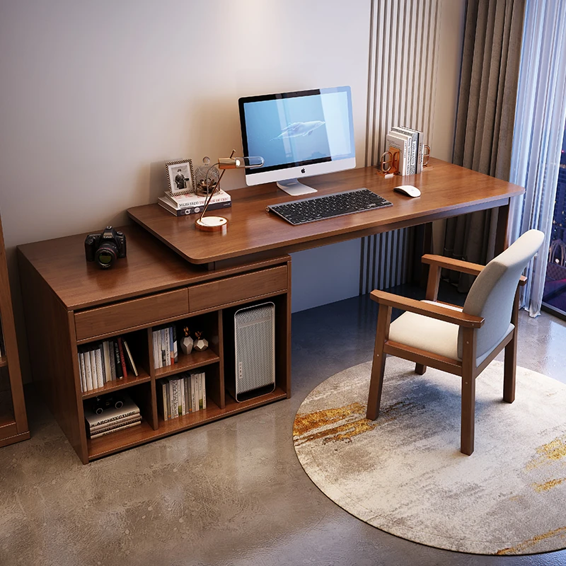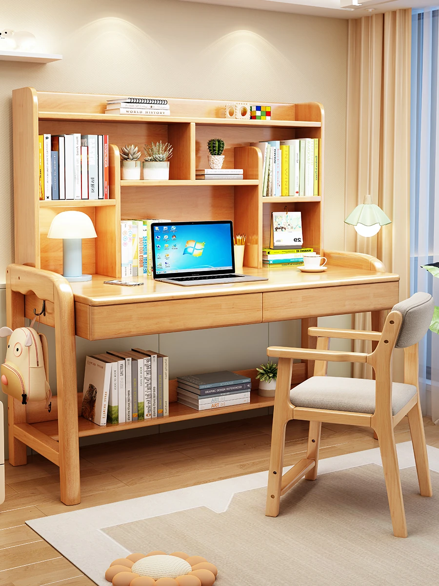 天然木製の書斎デスク&本棚一体型!昇降可能なコンピューターデスクで、子供の勉強にも最適!シンプルでスタイリッシュなデザイン、家庭用オフィスにぴったりの原木製品。あなたの作業環境を一新!