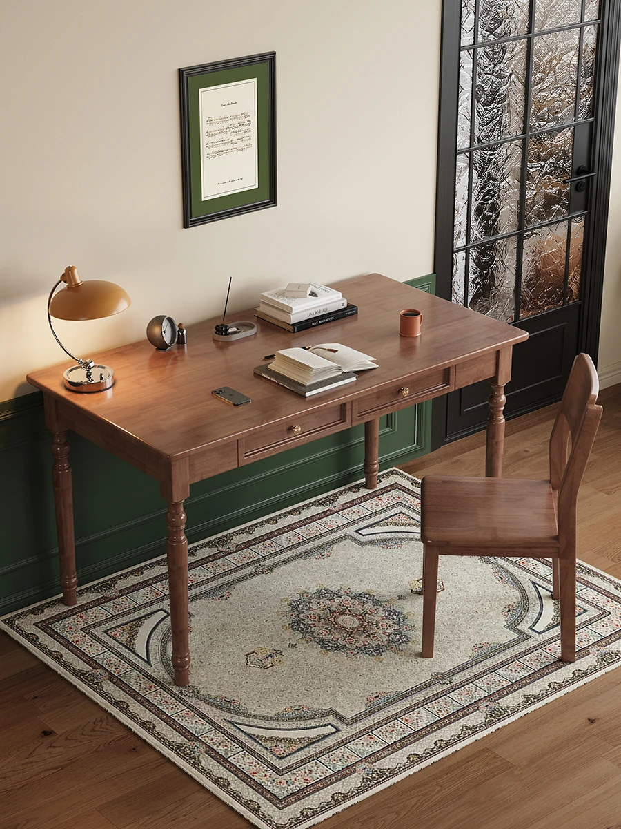 アメリカンスタイルの無垢材デスク|学生向け学習机|書斎や寝室に最適なモダンシンプルなオフィスデスク|自宅での快適な作業をサポート!