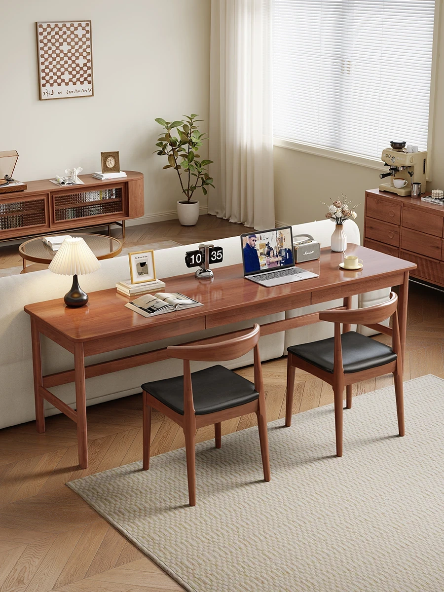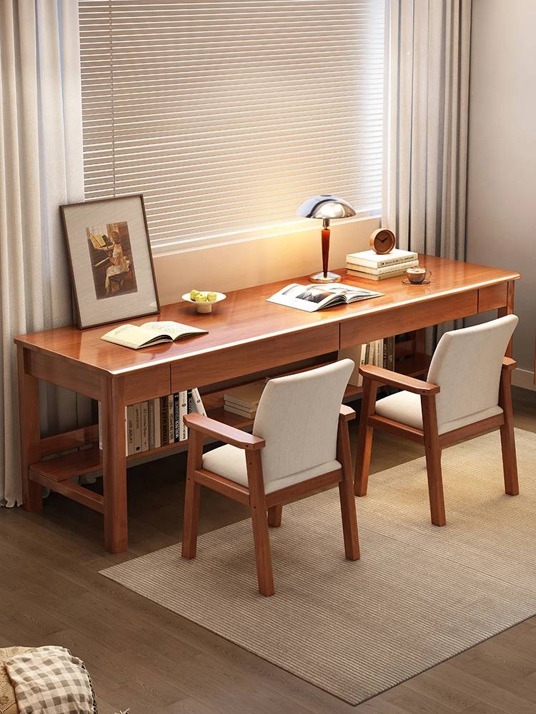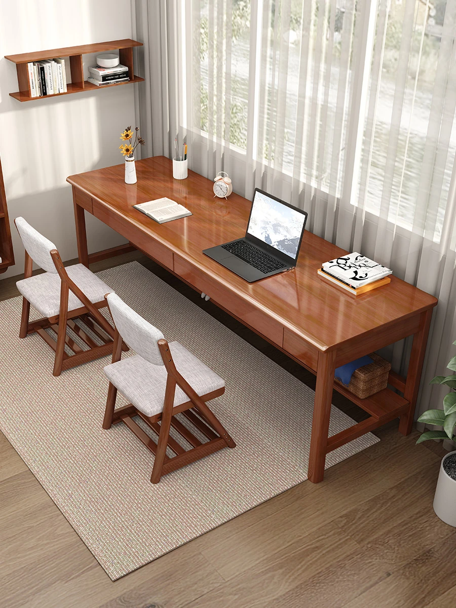 ダブルサイズの無垢材デスク | ベッドルーム向け・子供用・高校生のためのスタイリッシュな学習デスク | シンプルで長めのオフィスデスク | おしゃれで機能的な書斎用デスク