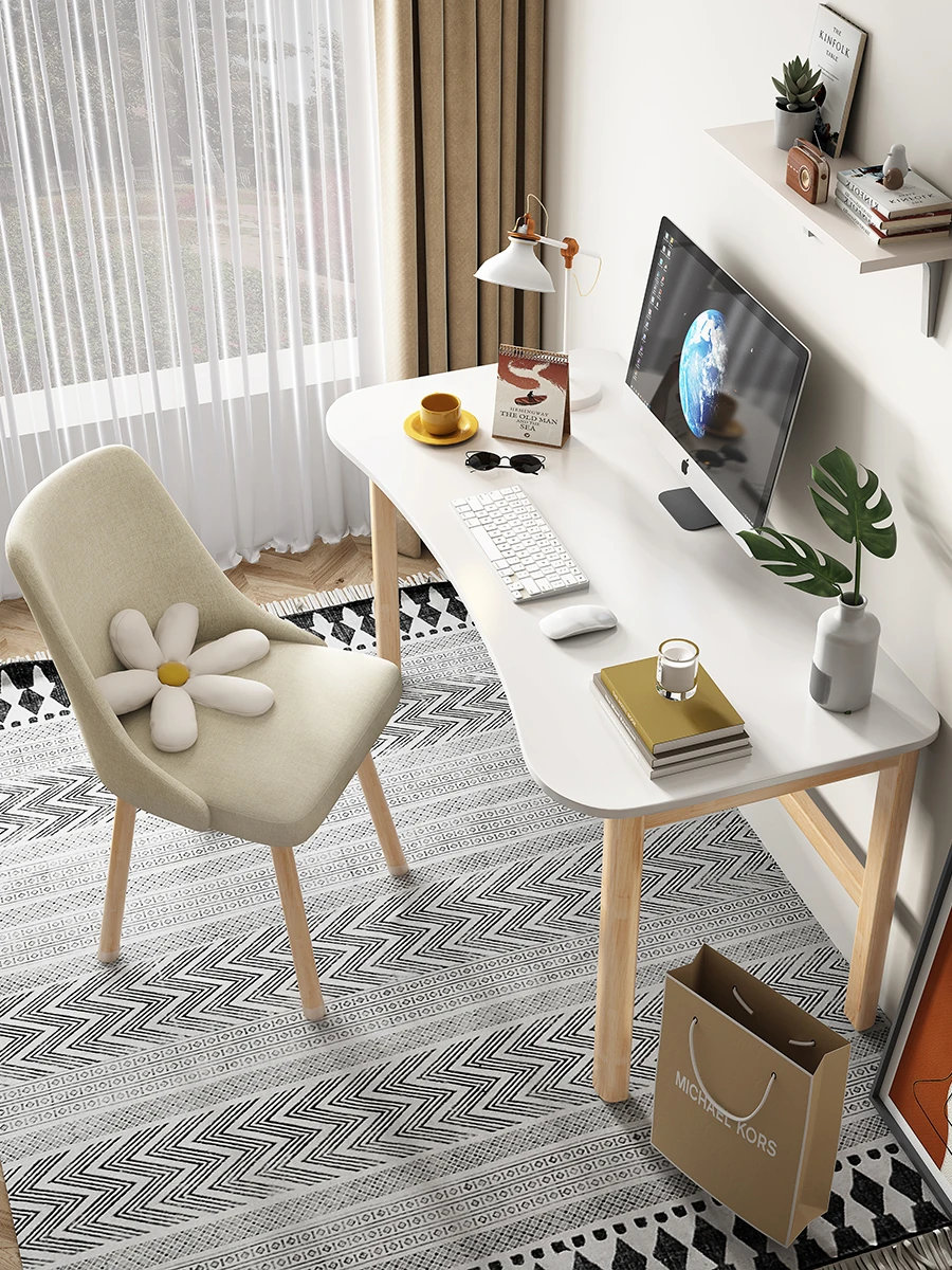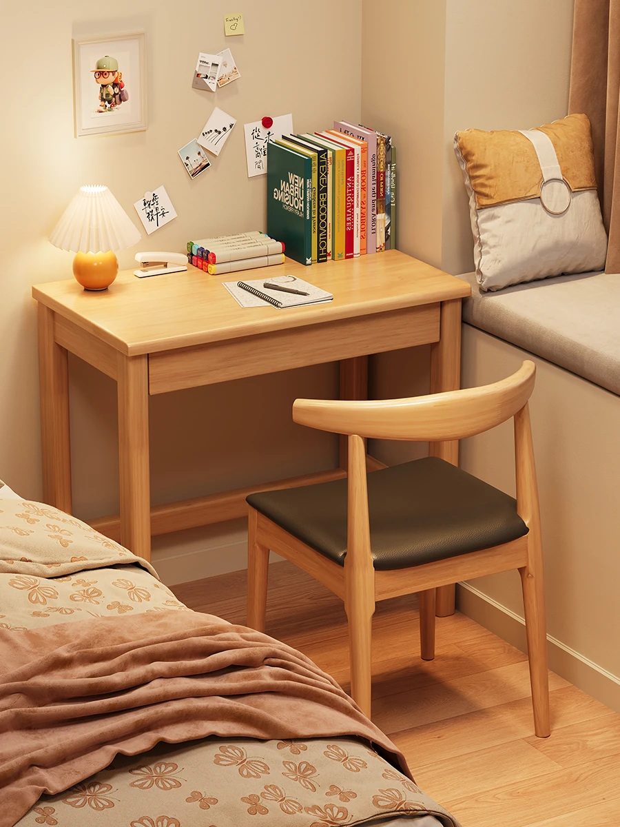 北欧スタイルの無垢材デスク - シンプルでモダンなデザイン、寝室や学生の学習に最適な書き物デスク。家庭用オフィスや子供の学びの場にもピッタリ!