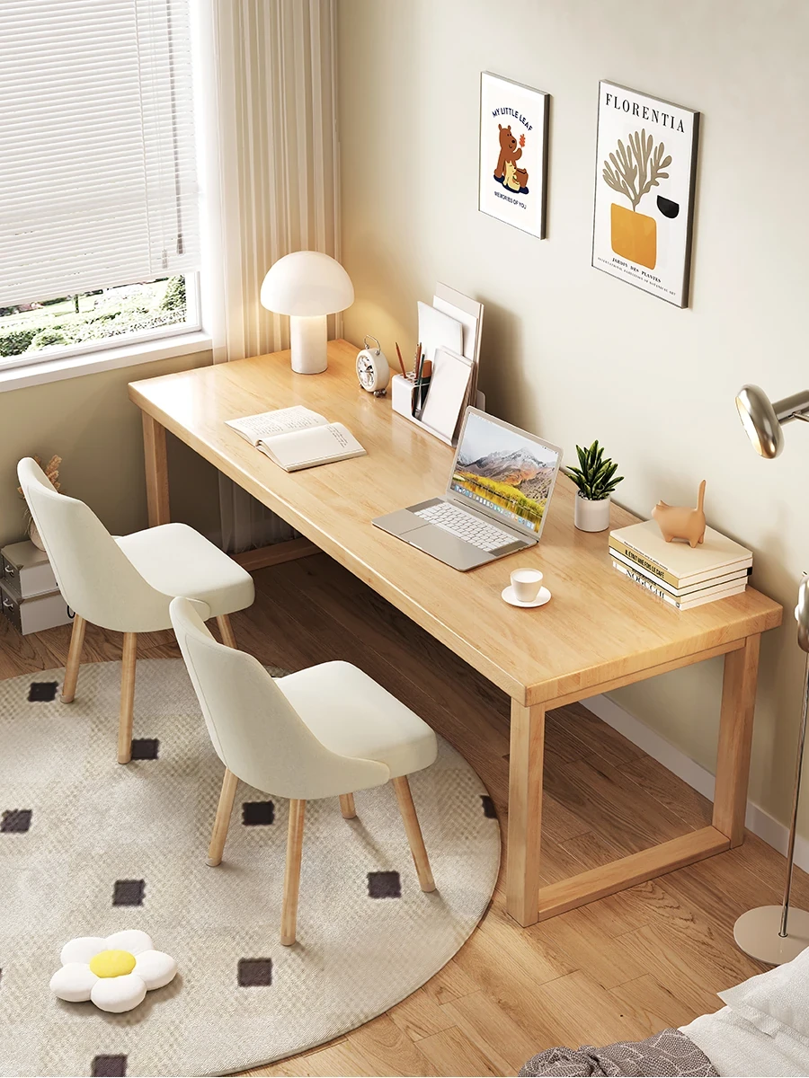 ダブルサイズのシンプルな無垢材デスク|スタイリッシュなパソコンデスク|オフィスや家庭に最適|寝室にもぴったり|学生向け書き仕事用テーブル|おしゃれで使いやすいロングタイプ