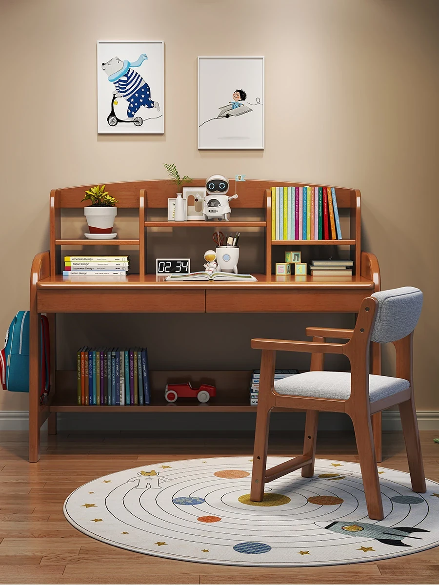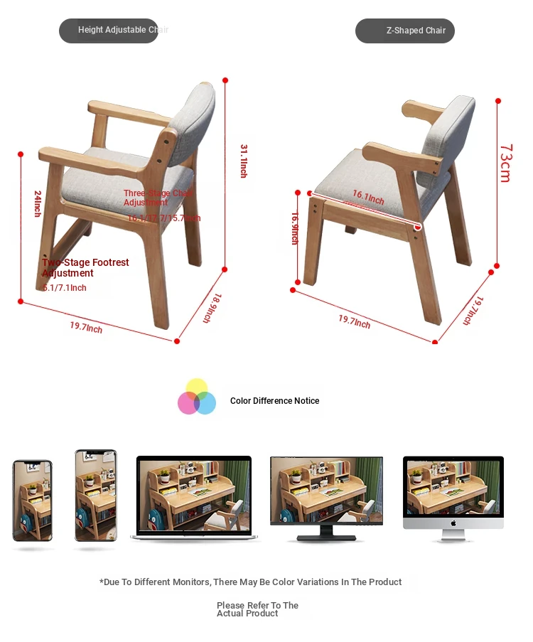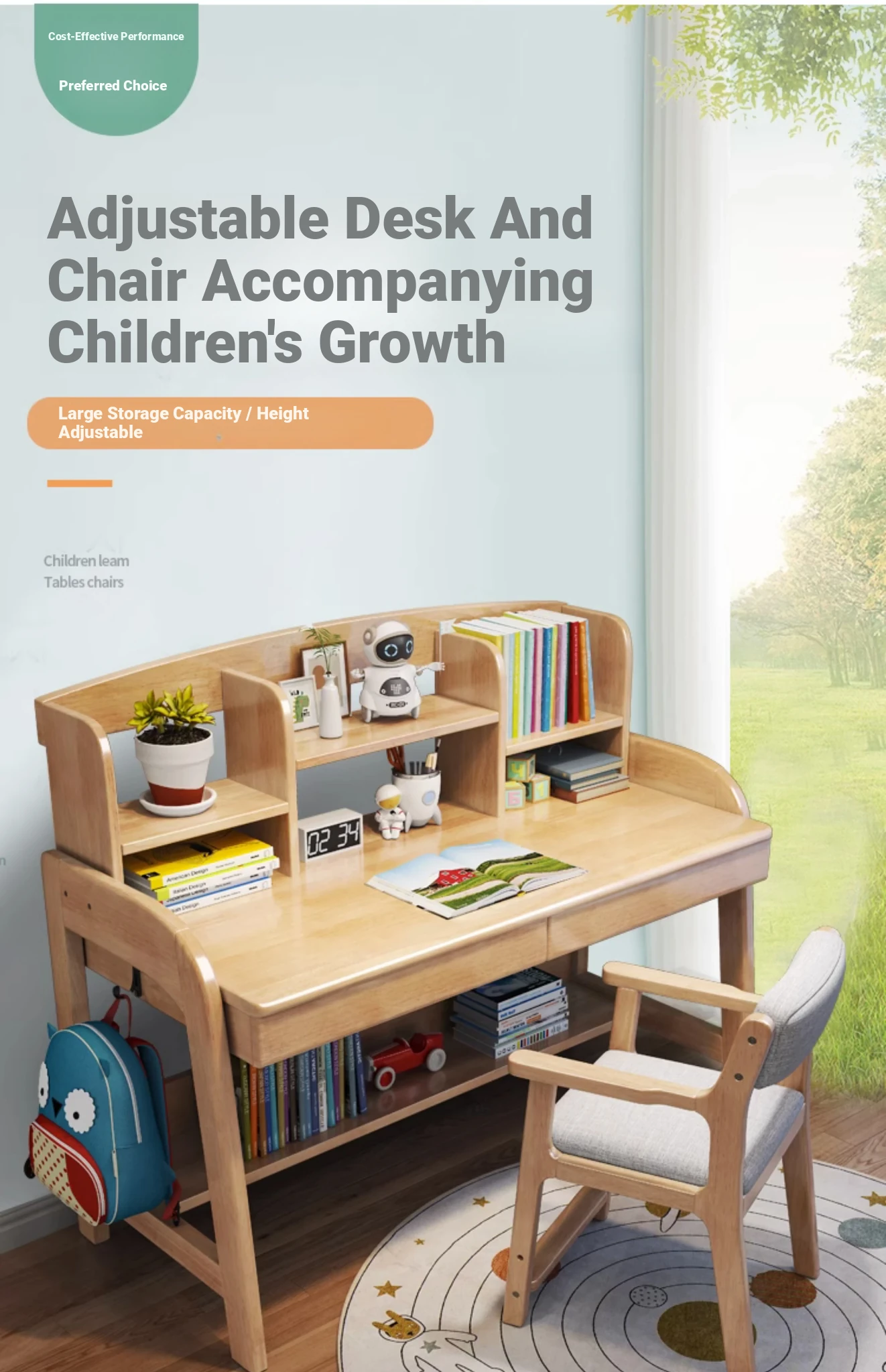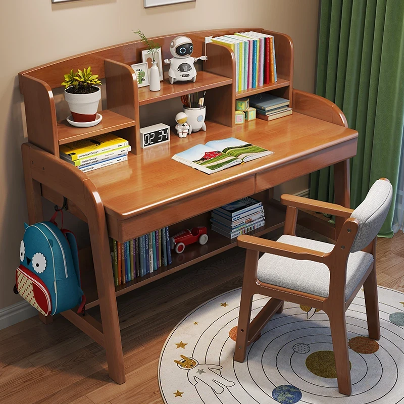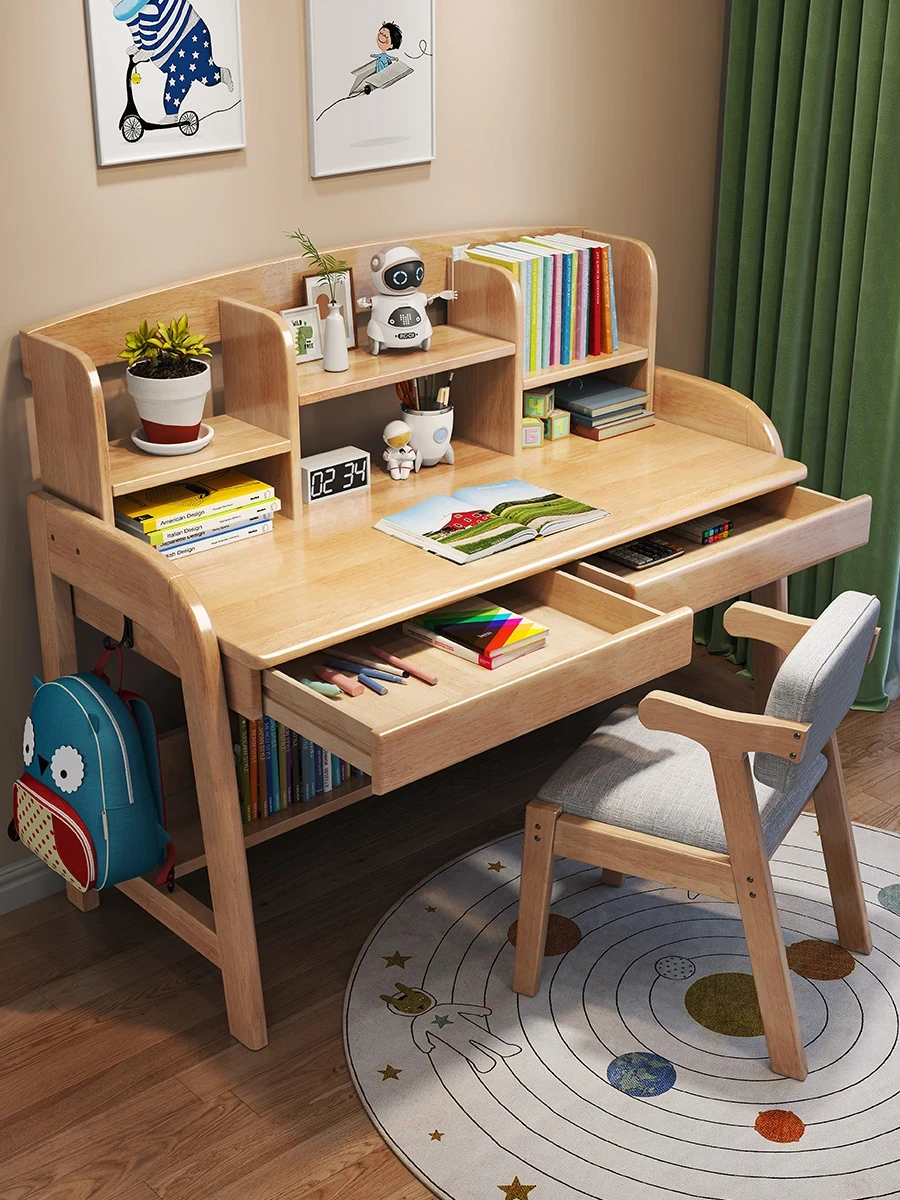 Adjustable Wooden Study Desk and Chair Set for Kids - Perfect for Elementary and Middle School Students, Ideal for Boys and Girls in Bedrooms, Promotes Comfortable Writing and Learning at Home.