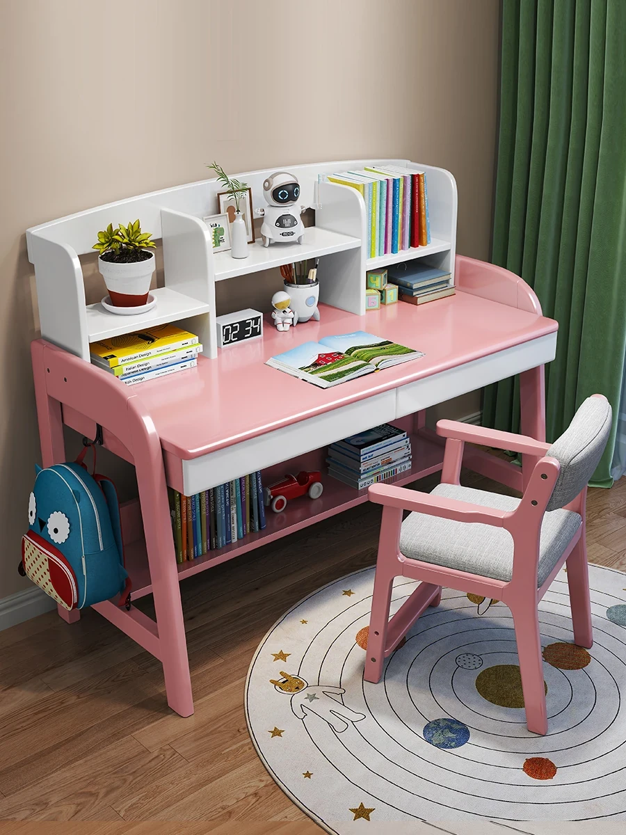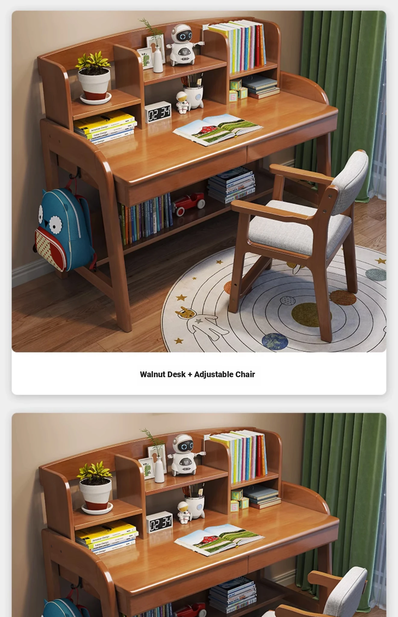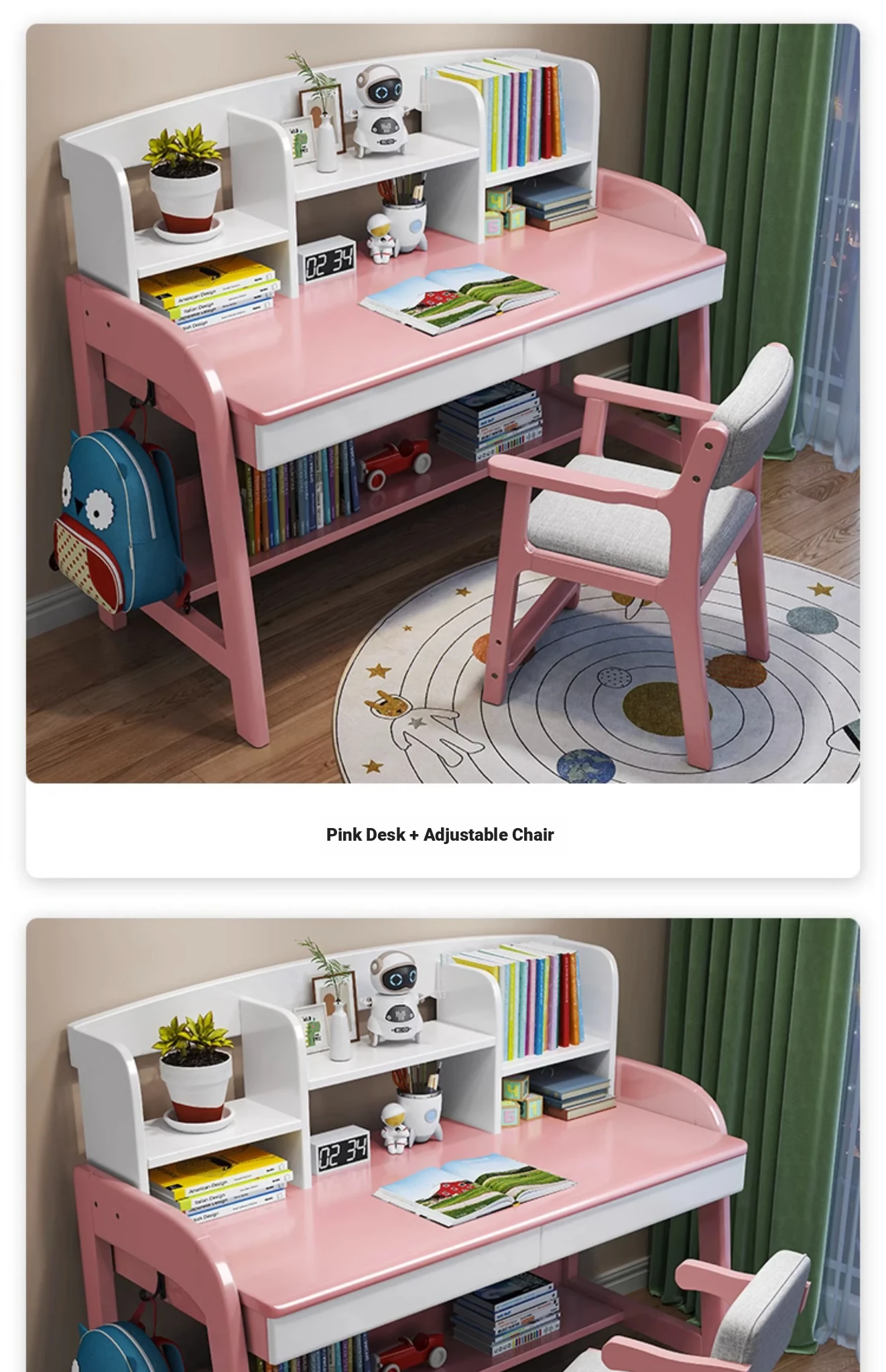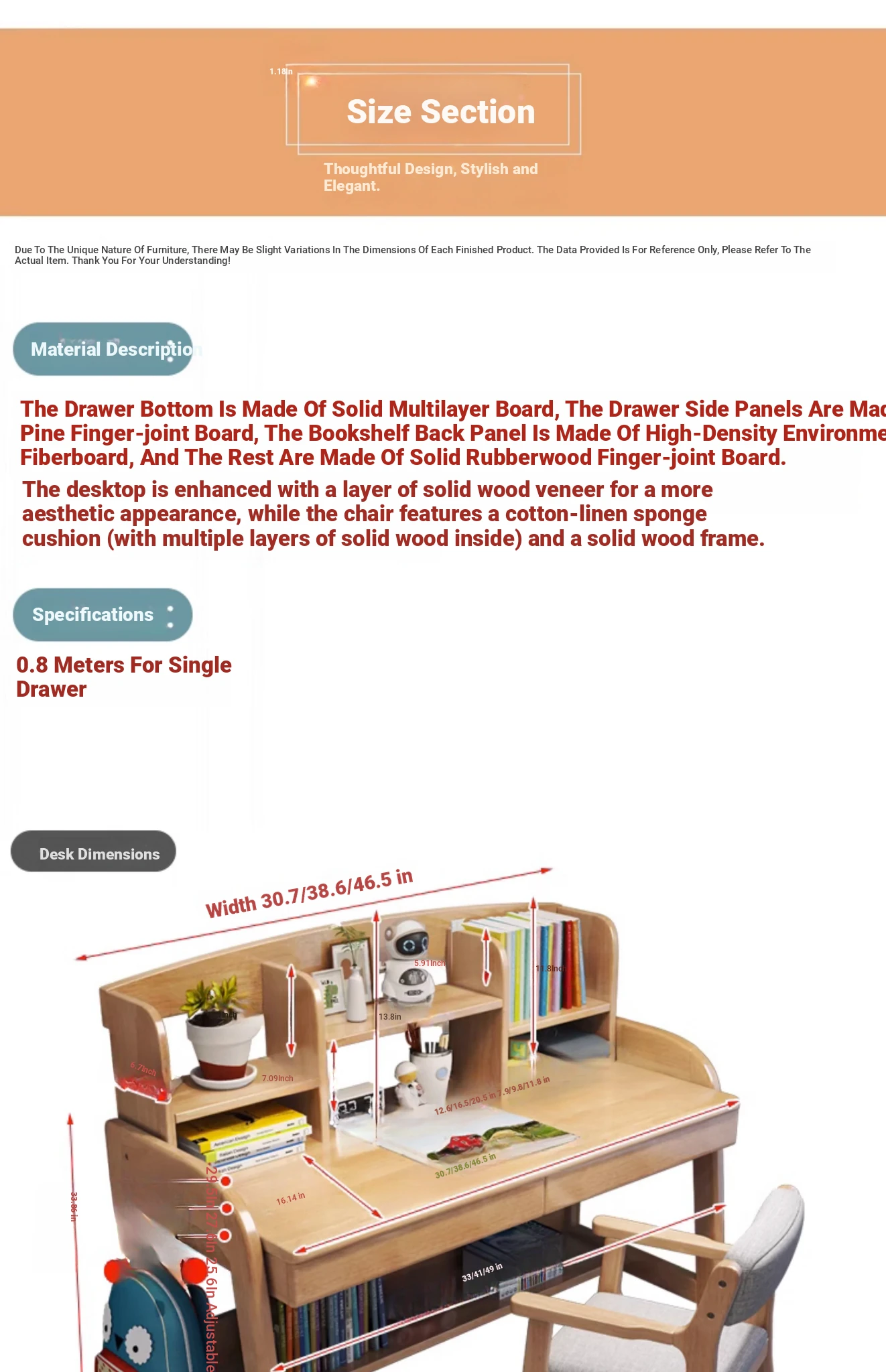 Adjustable Wooden Study Desk and Chair Set for Kids - Perfect for Elementary and Middle School Students, Ideal for Boys and Girls in Bedrooms, Promotes Comfortable Writing and Learning at Home.