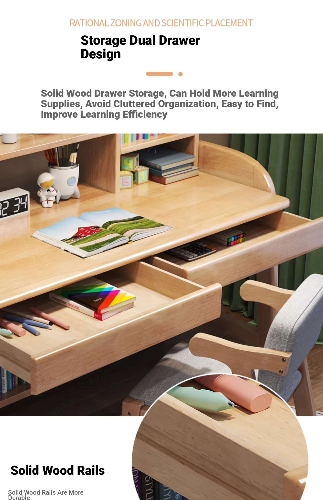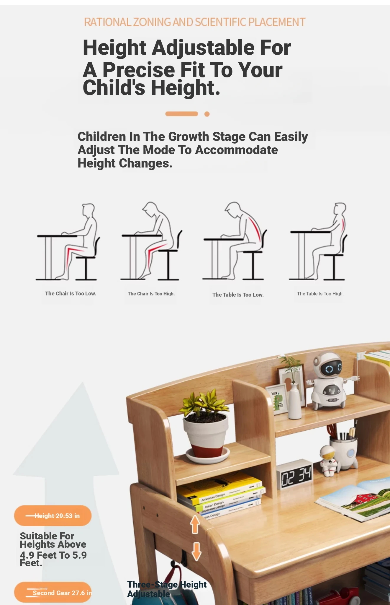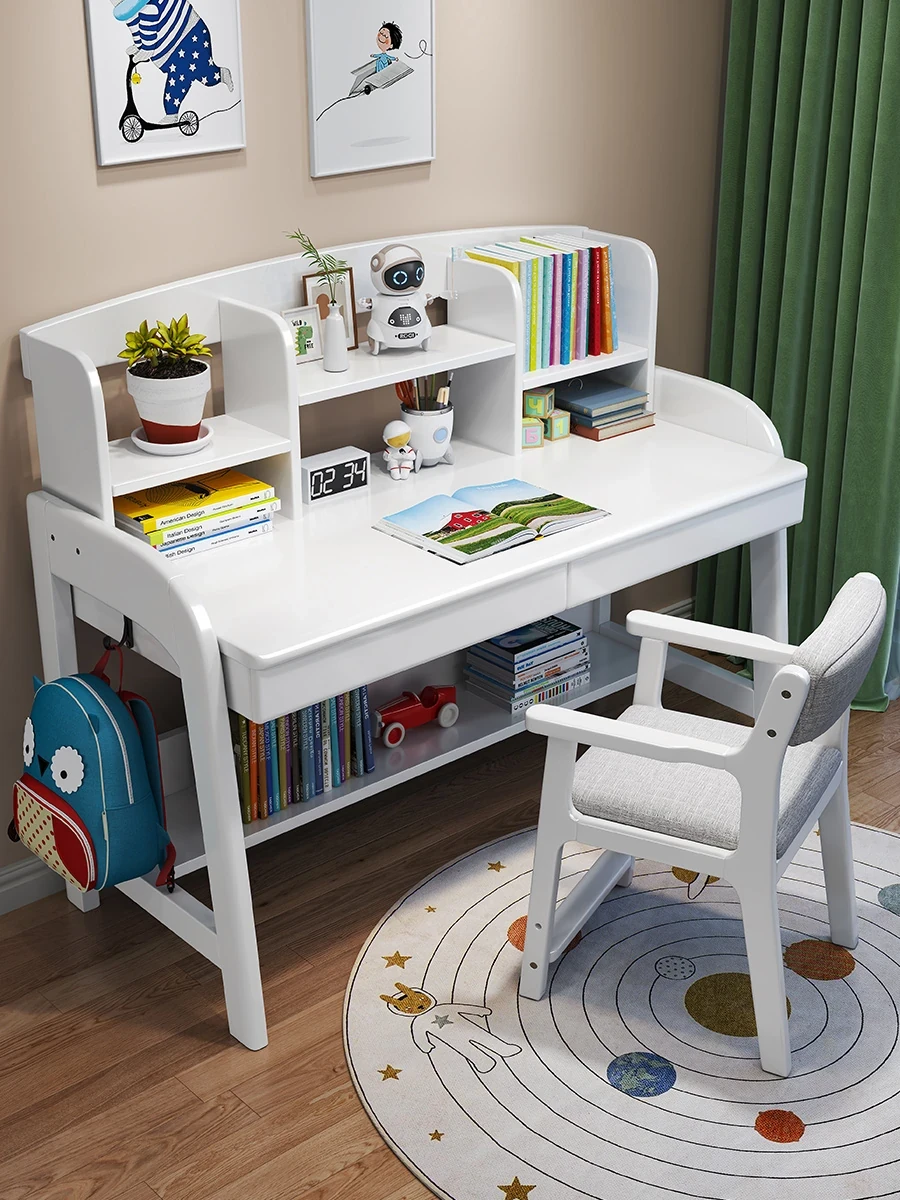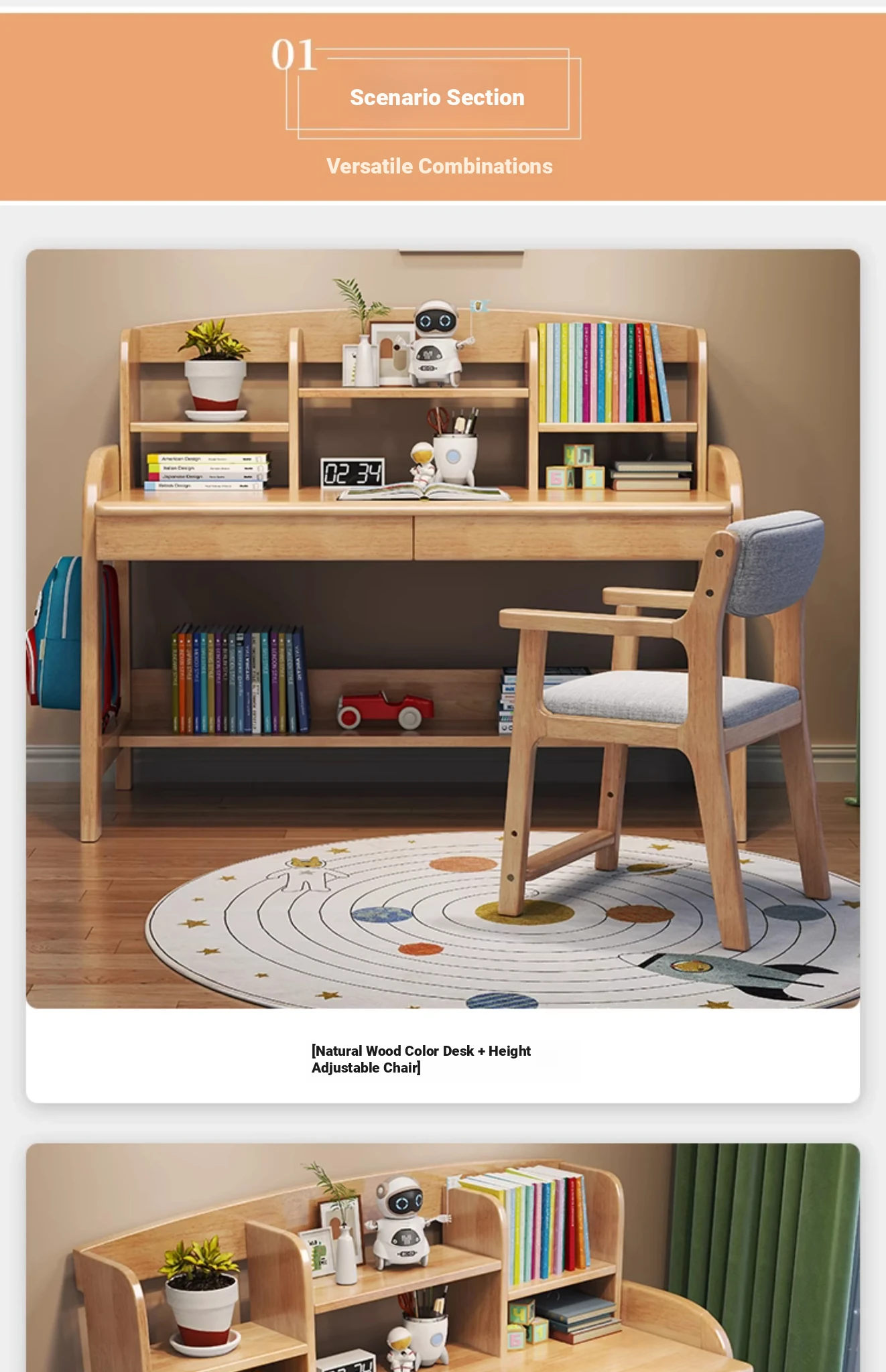 Adjustable Wooden Study Desk and Chair Set for Kids - Perfect for Elementary and Middle School Students, Ideal for Boys and Girls in Bedrooms, Promotes Comfortable Writing and Learning at Home.
