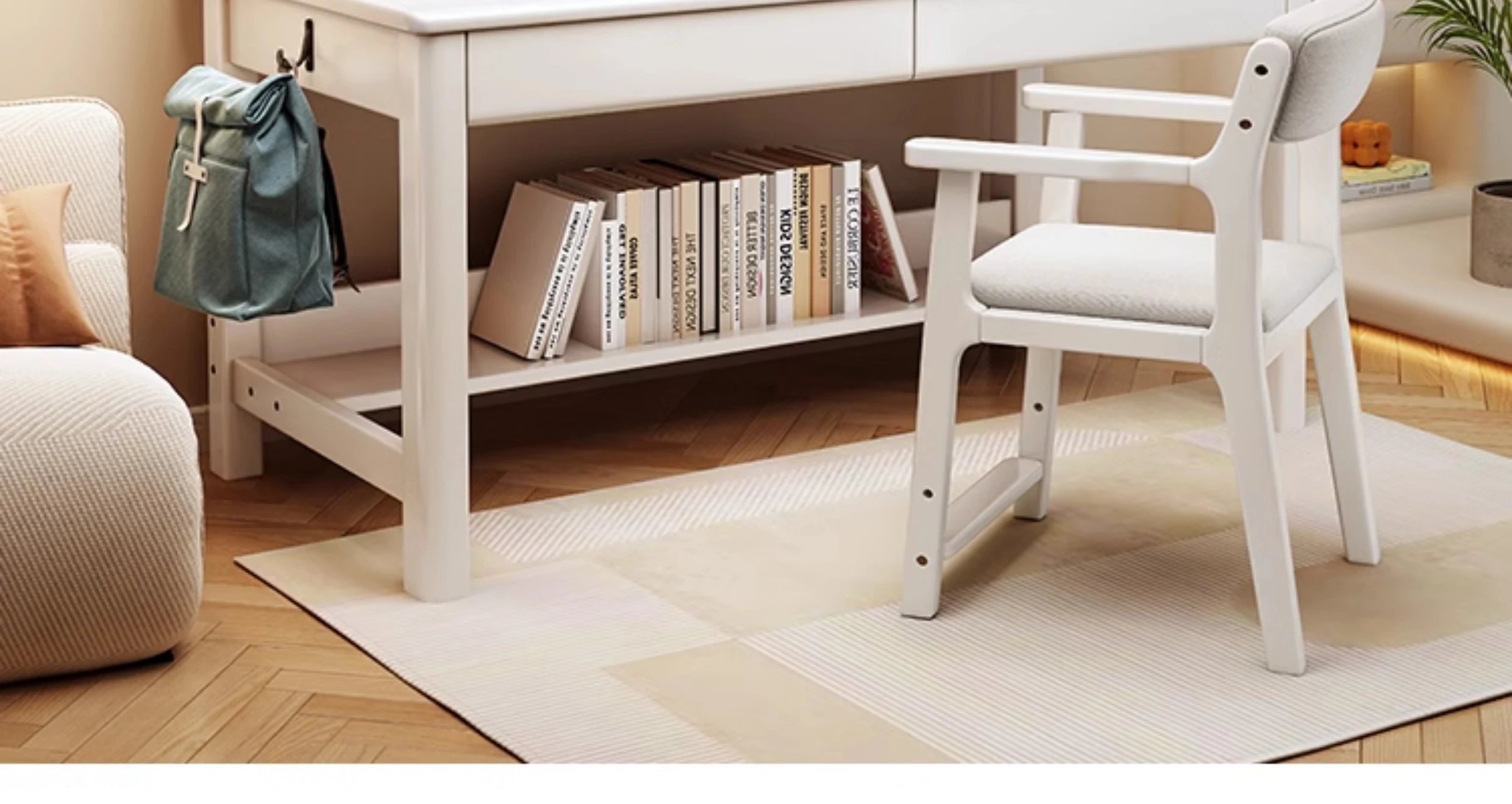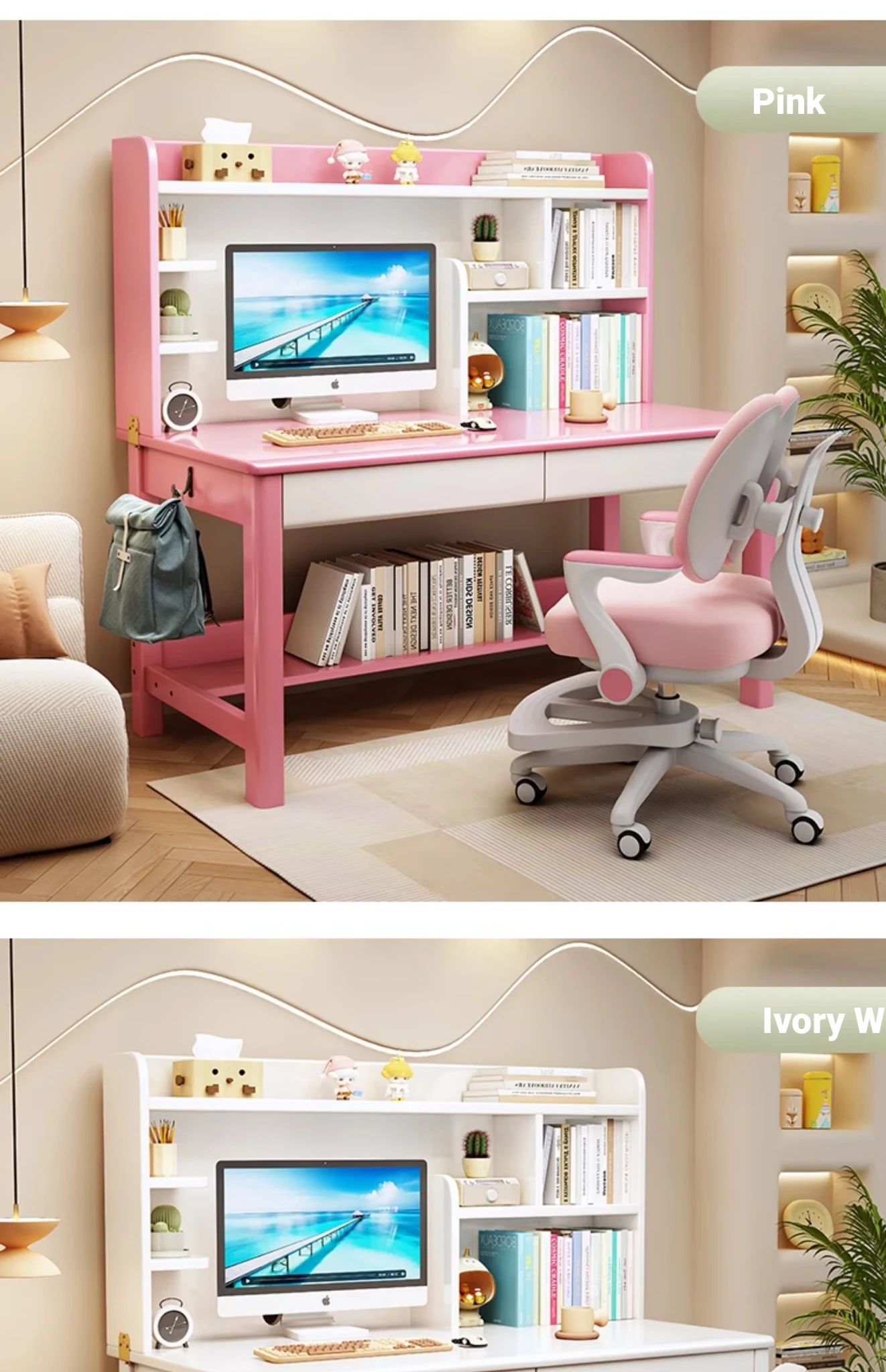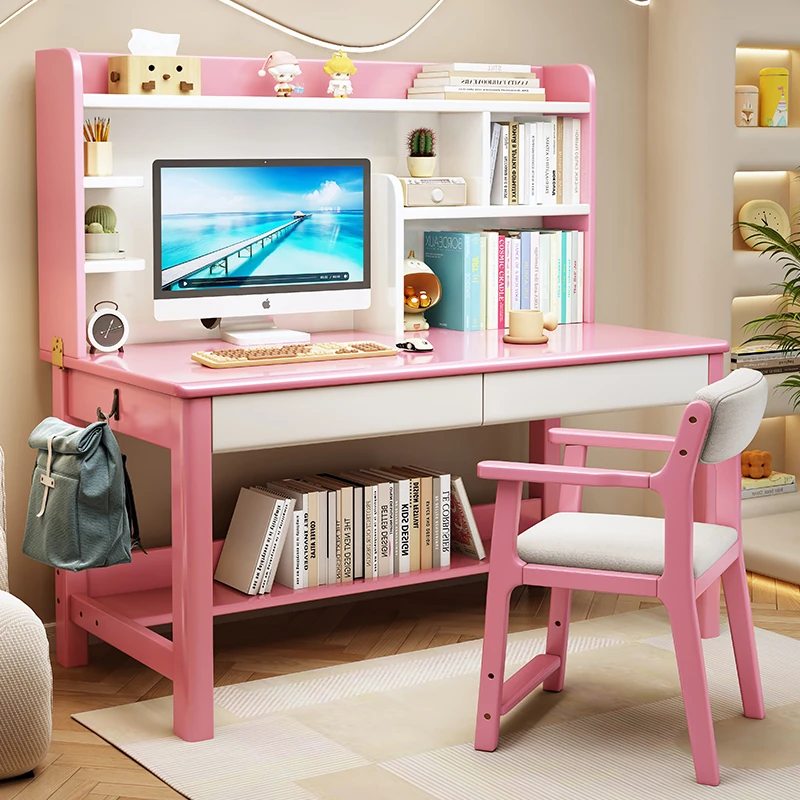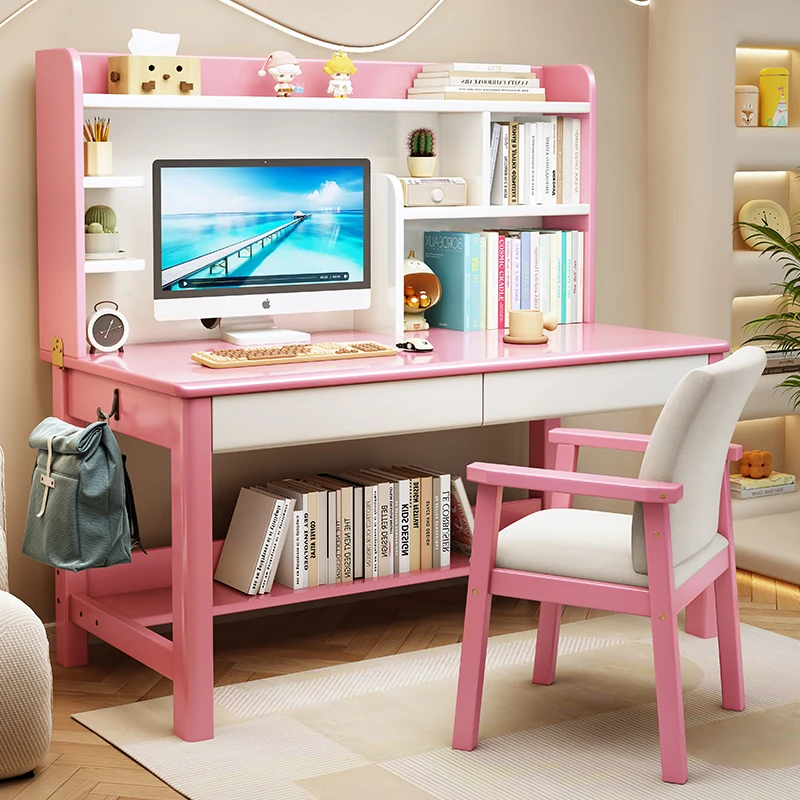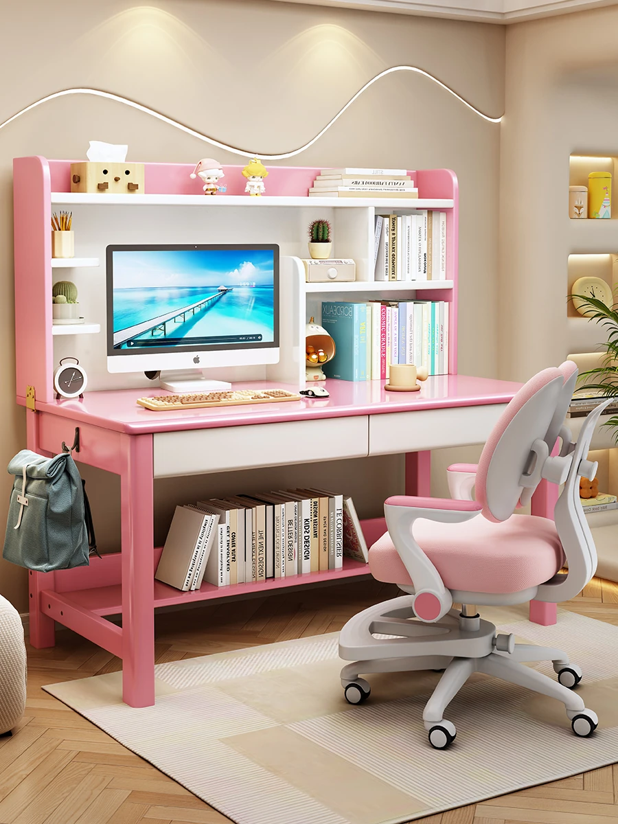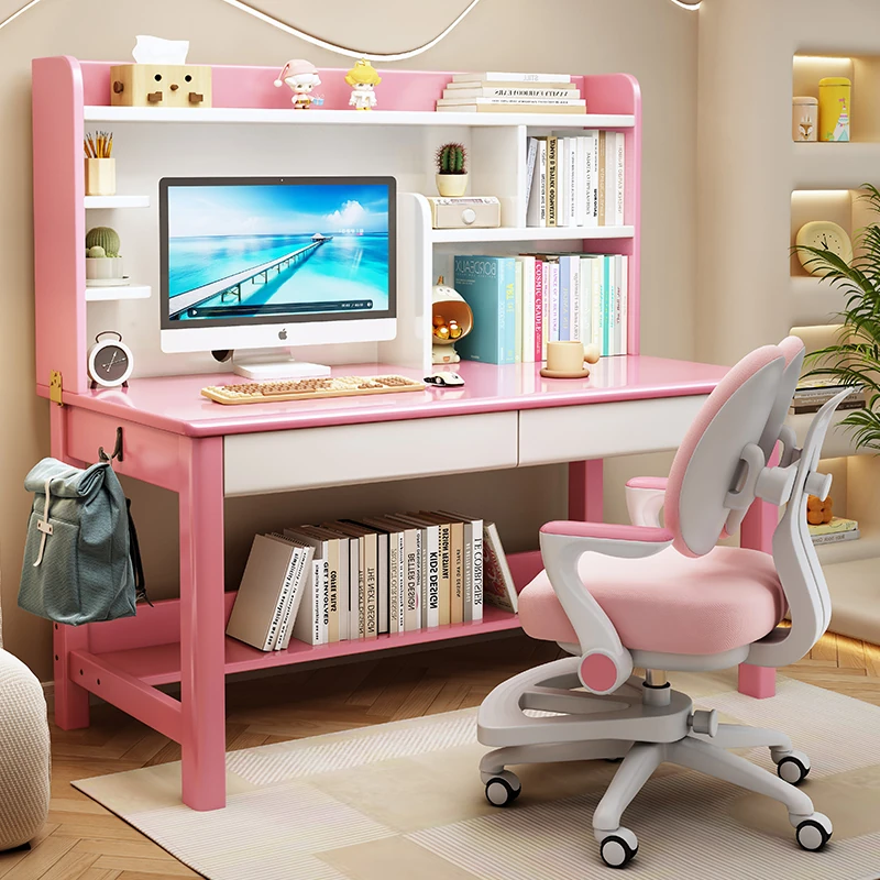 LS1336# pink white table + posture correction chair D([Import rubber wood-no skin board]])