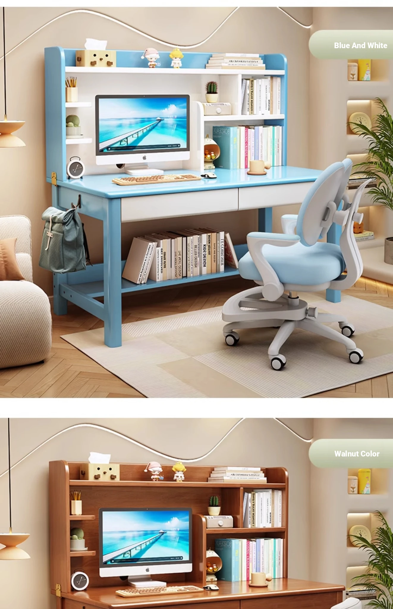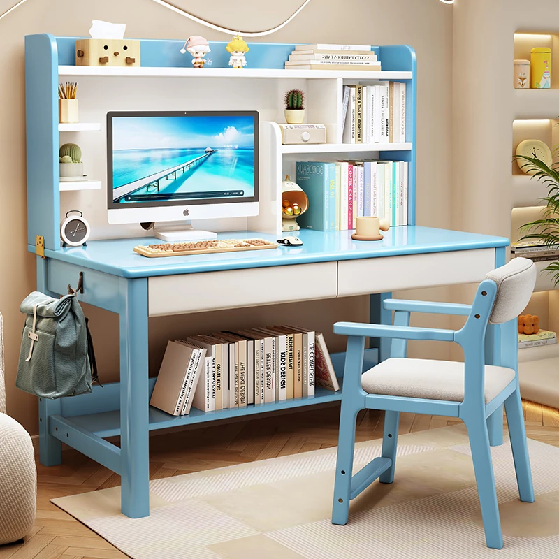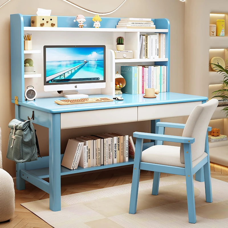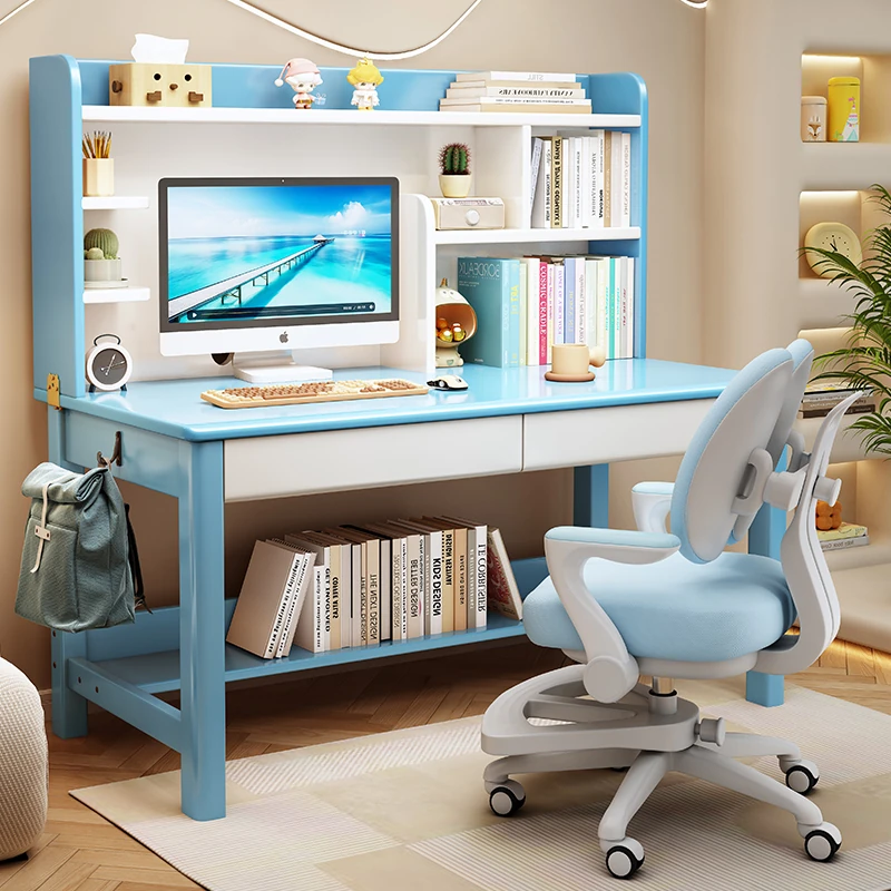 LS1336# blue and white table + posture correction chair D([Import rubber wood-no skin board]])