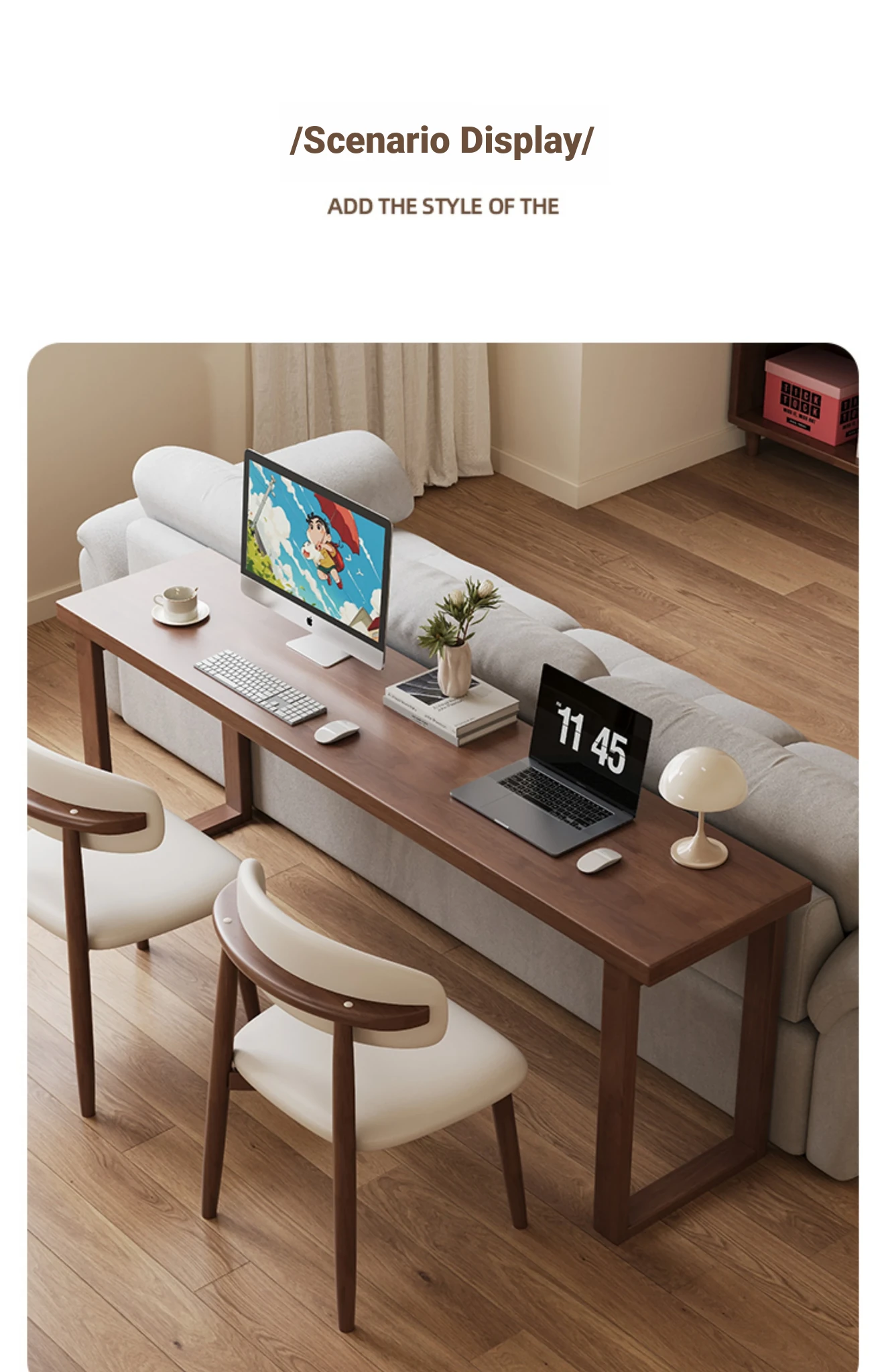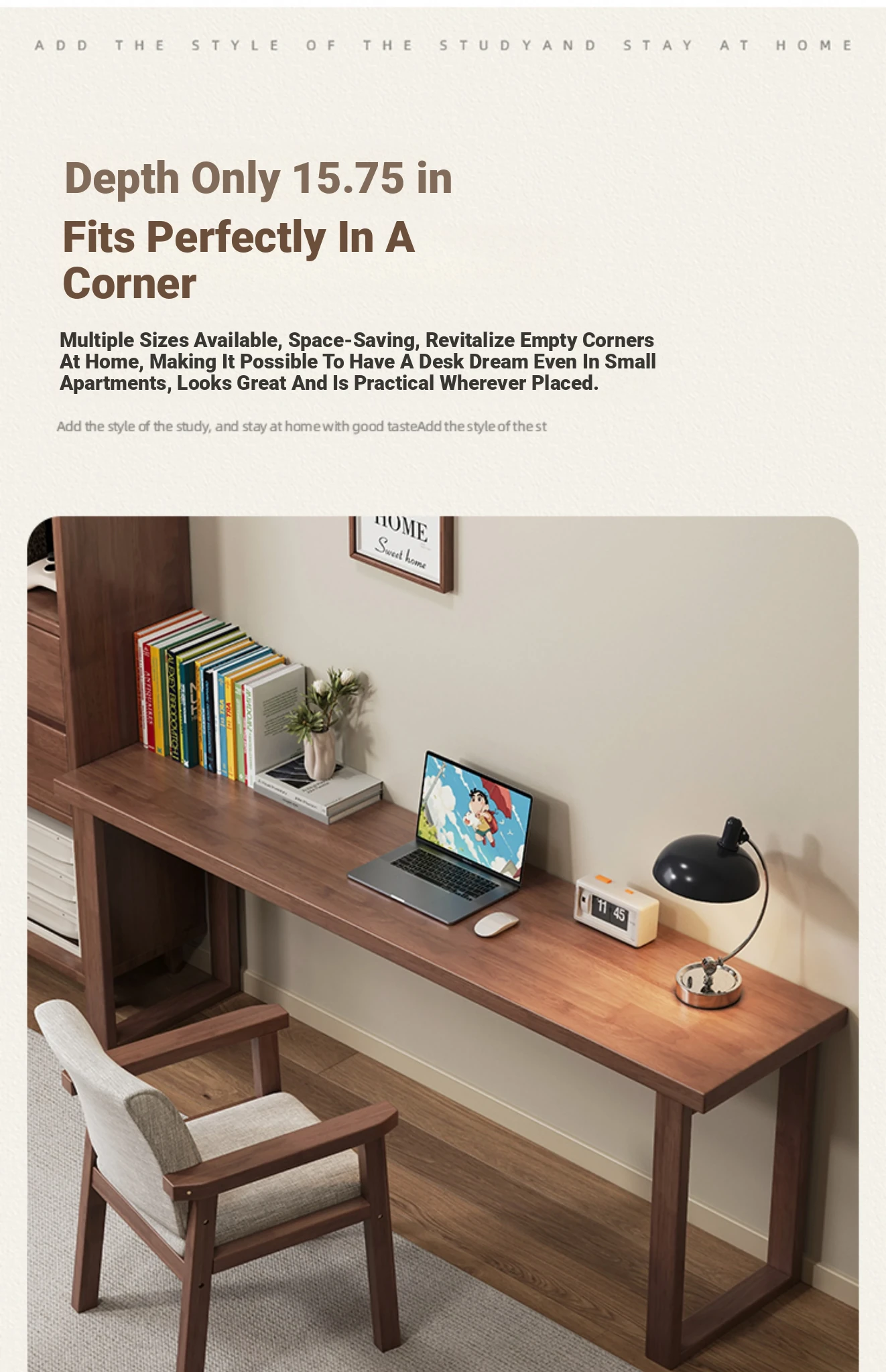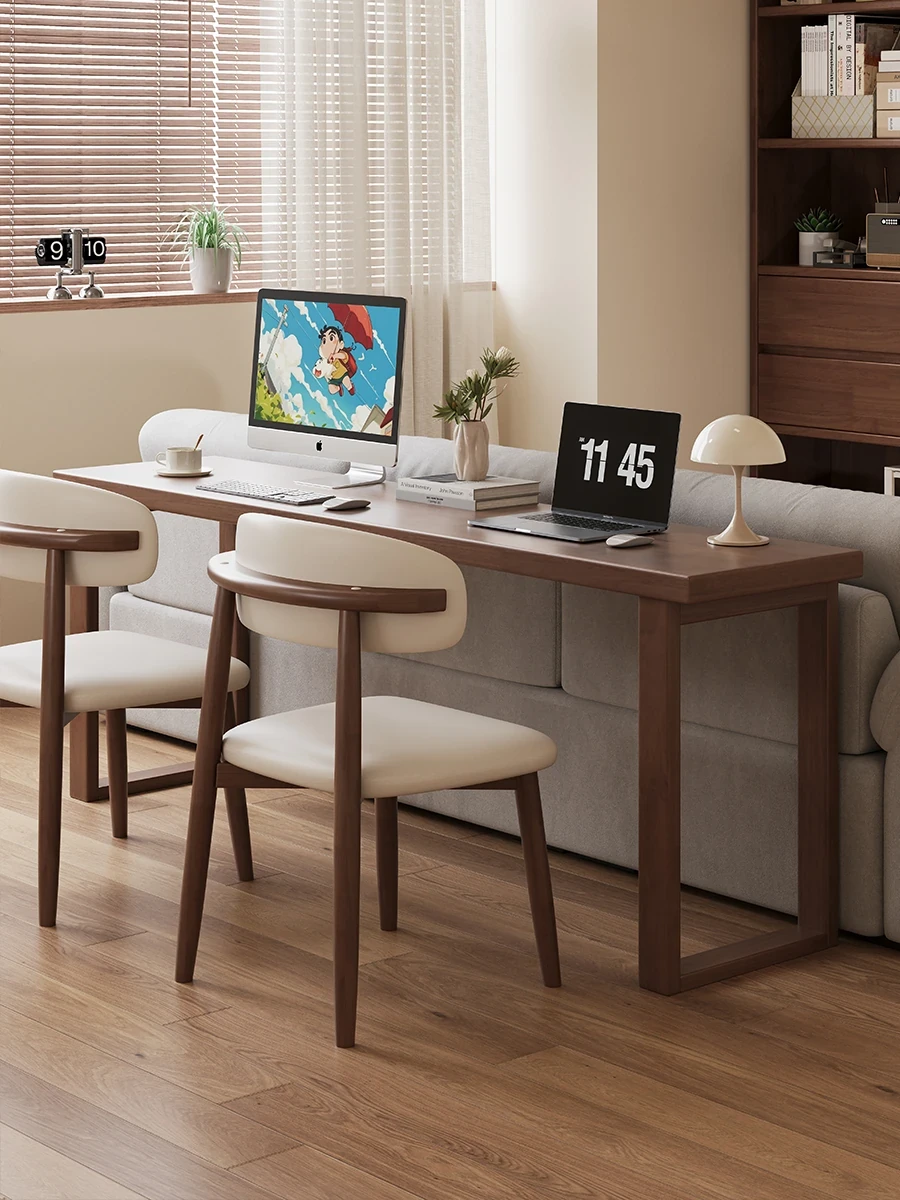 "Elegant Solid Wood Narrow Desk - 40cm Wide Bedside Table for Bedroom, Wall-Mounted, Perfect for Double Study or Laptop Use in Living Room"