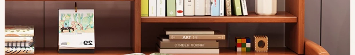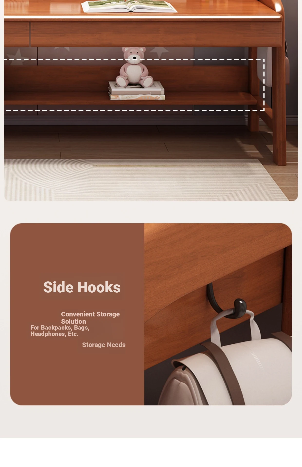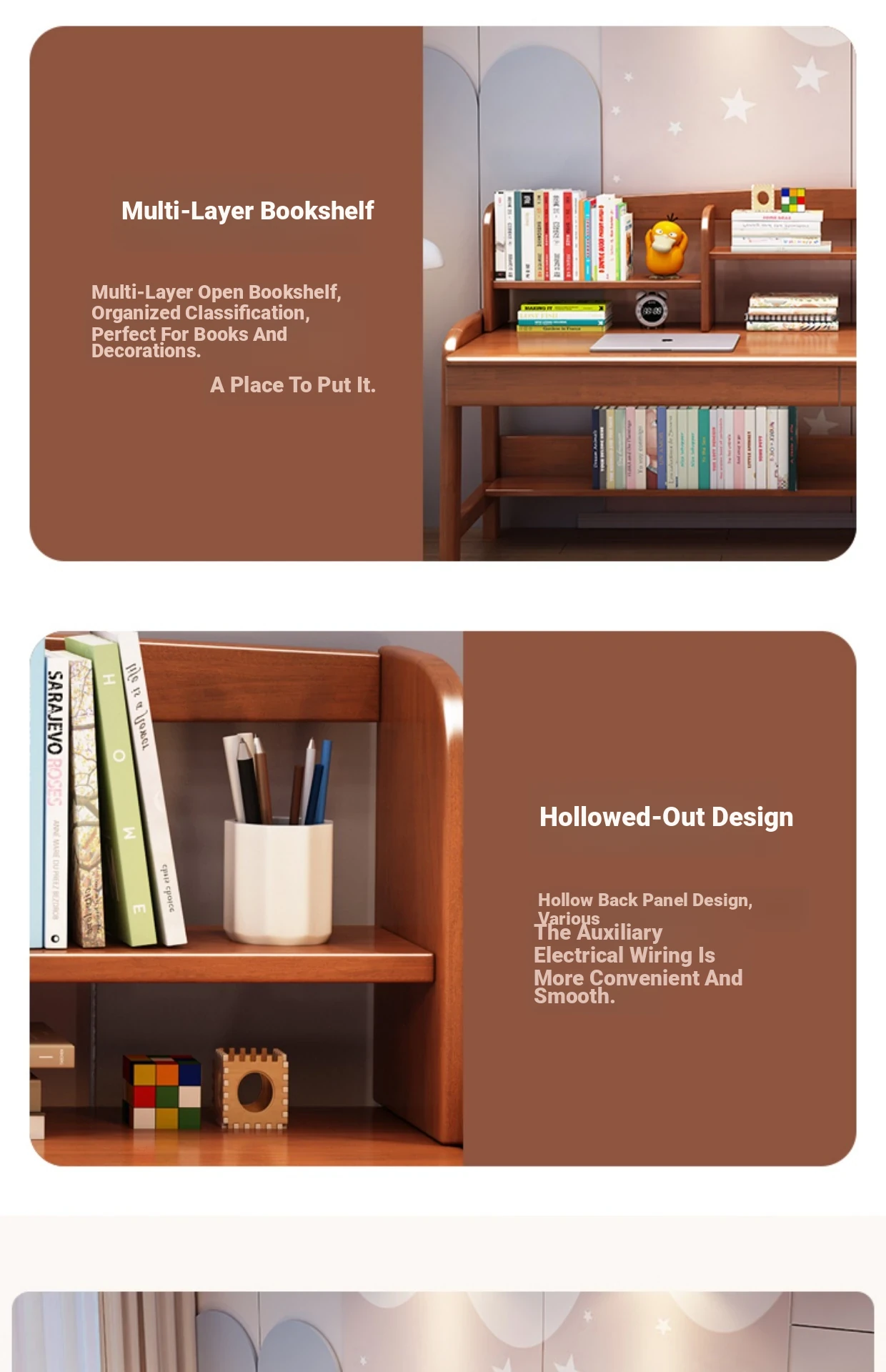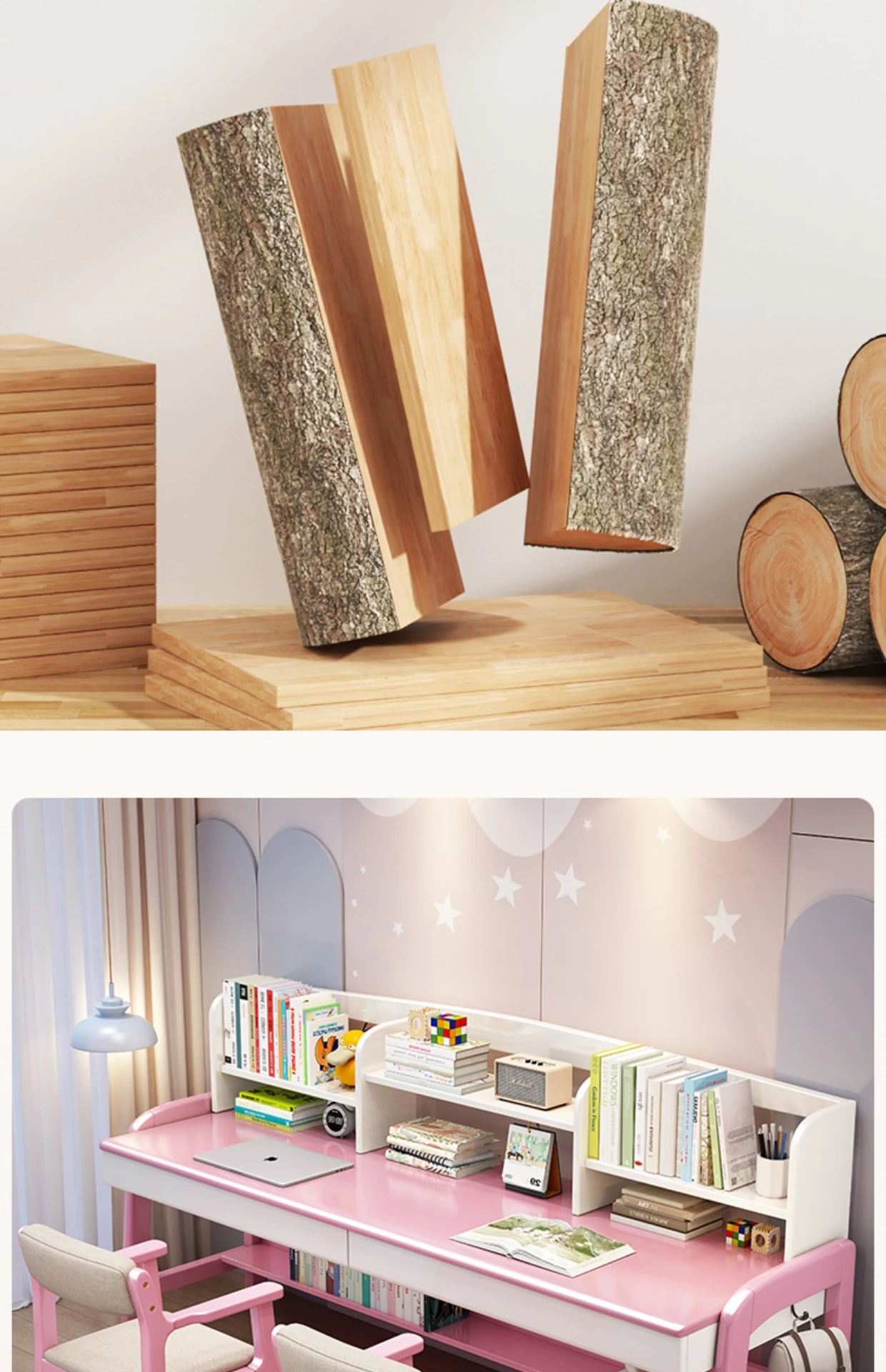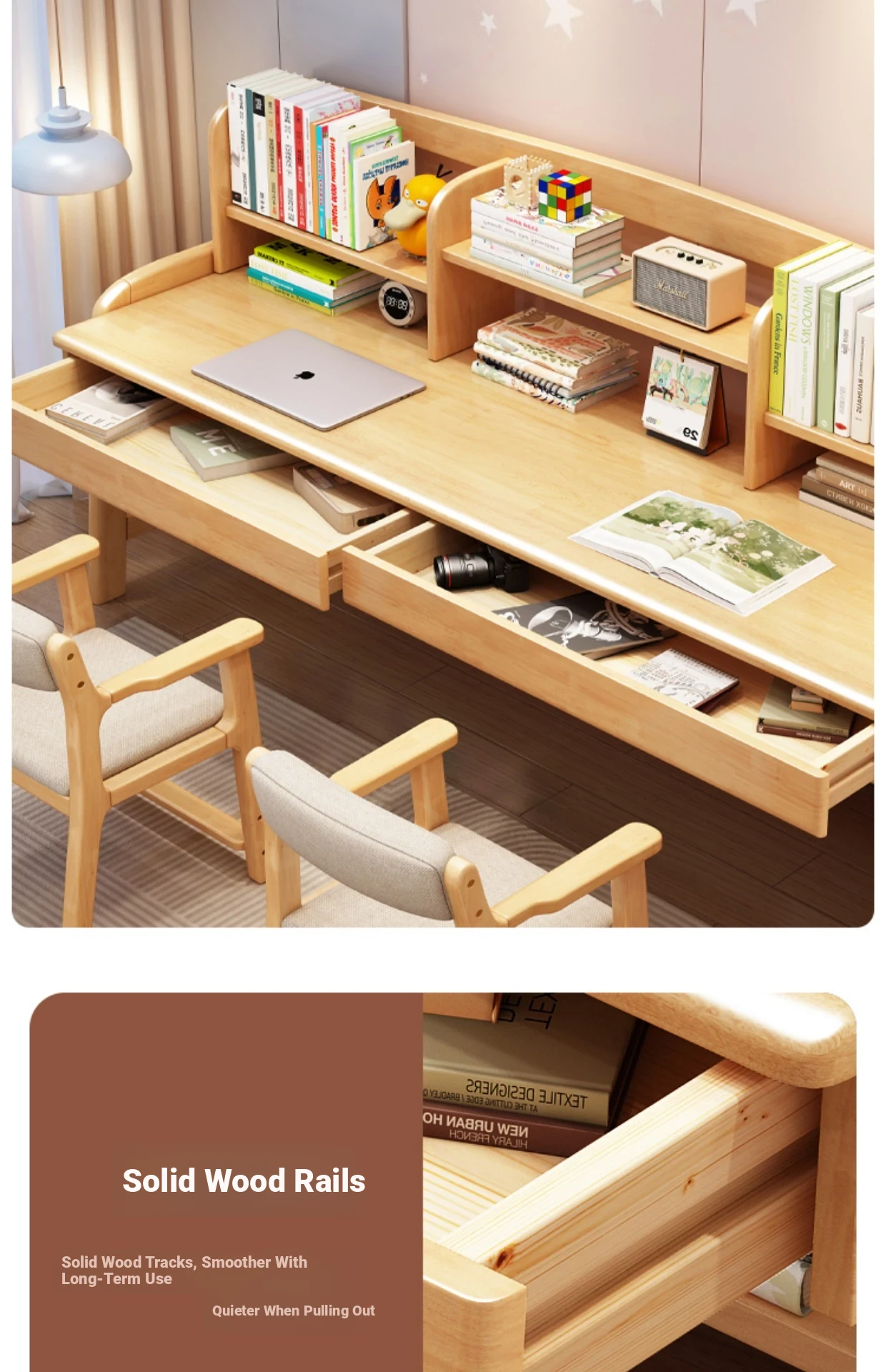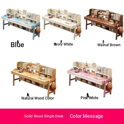 Extended Solid Wood Double Desk with Bookshelf - Ideal Learning Table for Kids and Teens, Perfect for Home or Living Room Use, Suitable for Writing and Study Sessions.