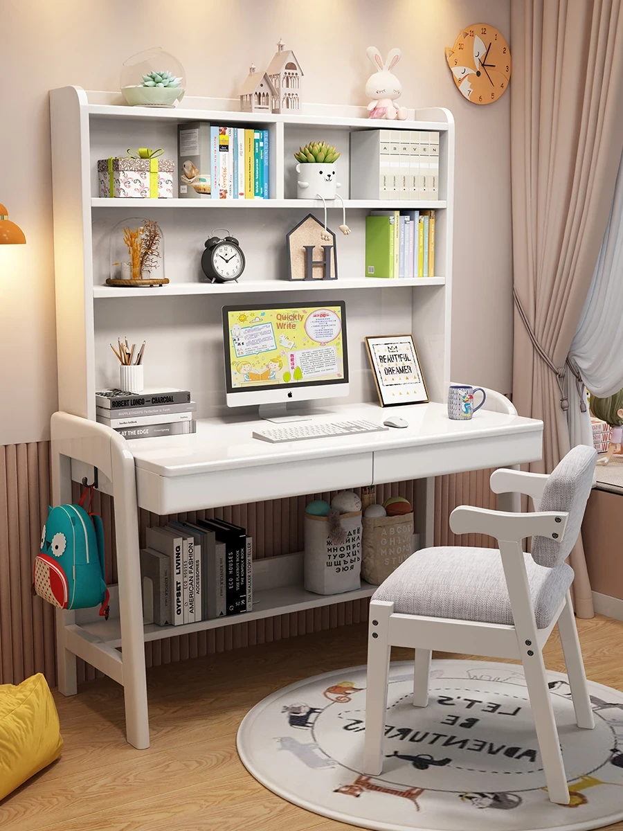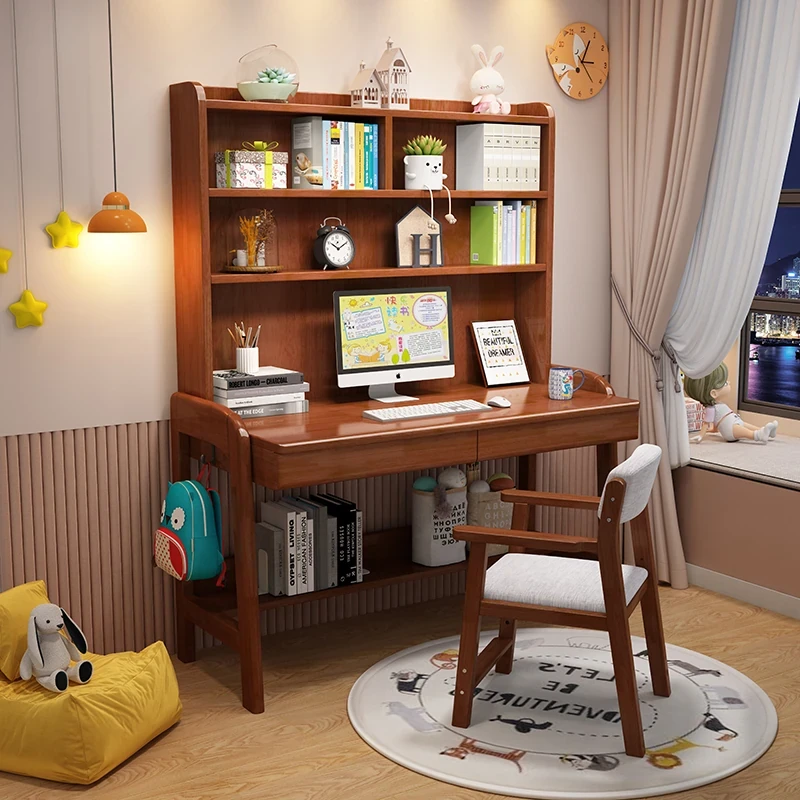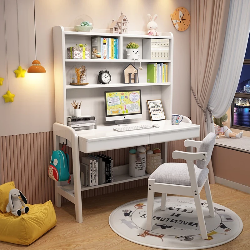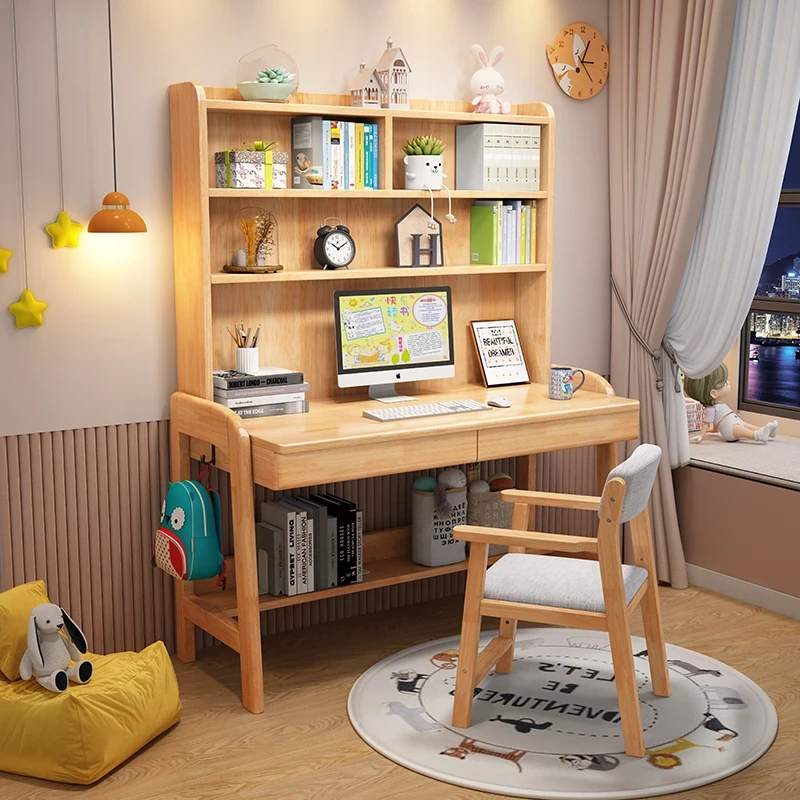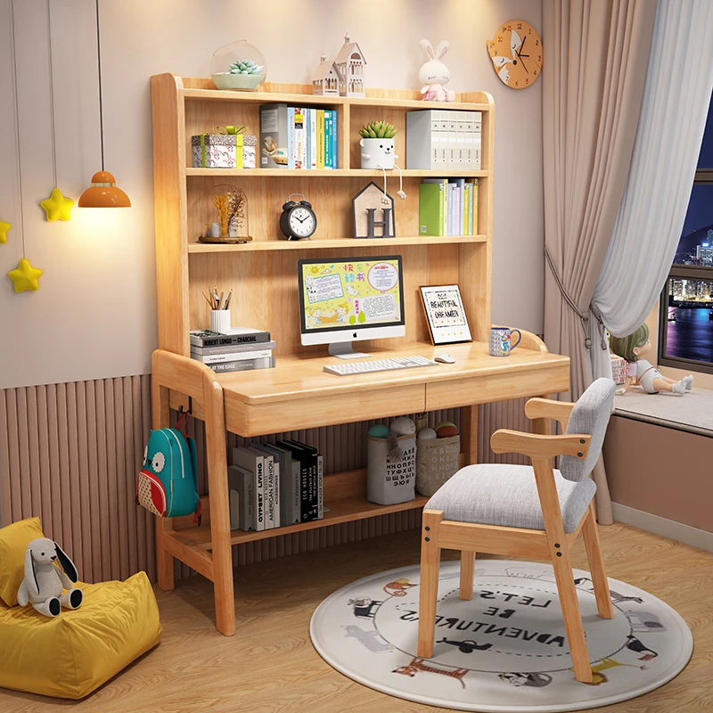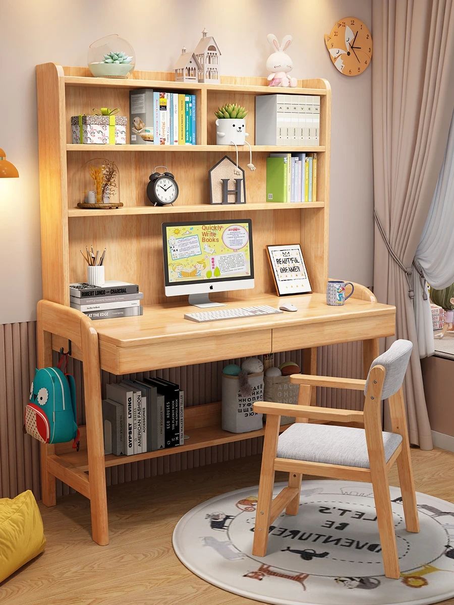 Kids' Study Desk & Computer Table - Modern Minimalist Design for Students, Multi-functional Solid Wood Writing Desk with Integrated Bookshelf - Perfect for Home Learning Environment!