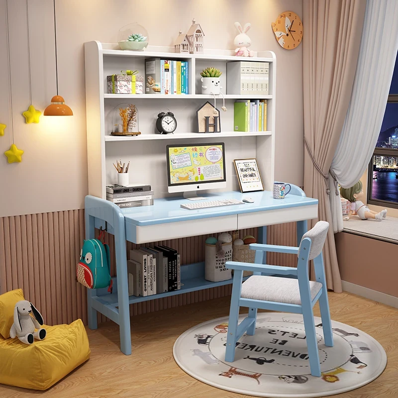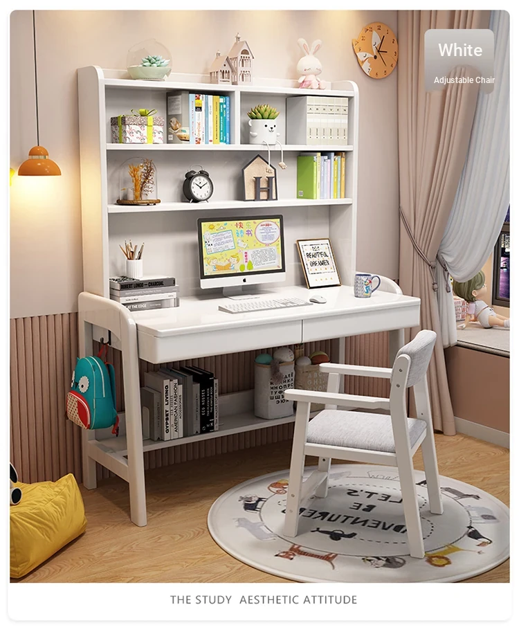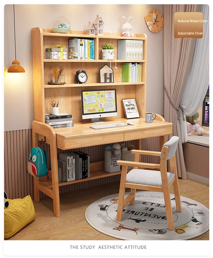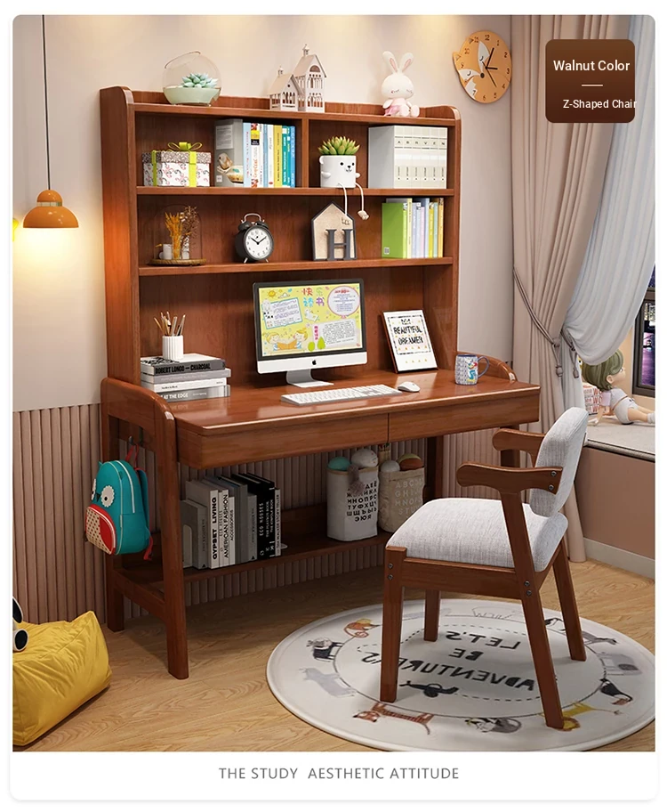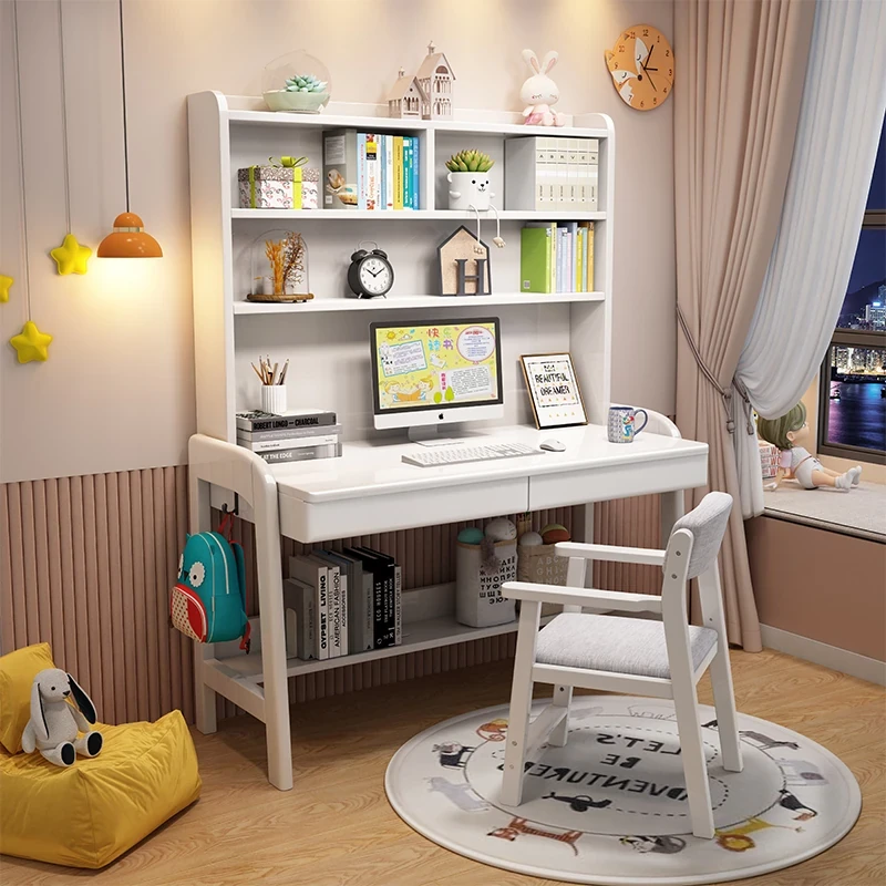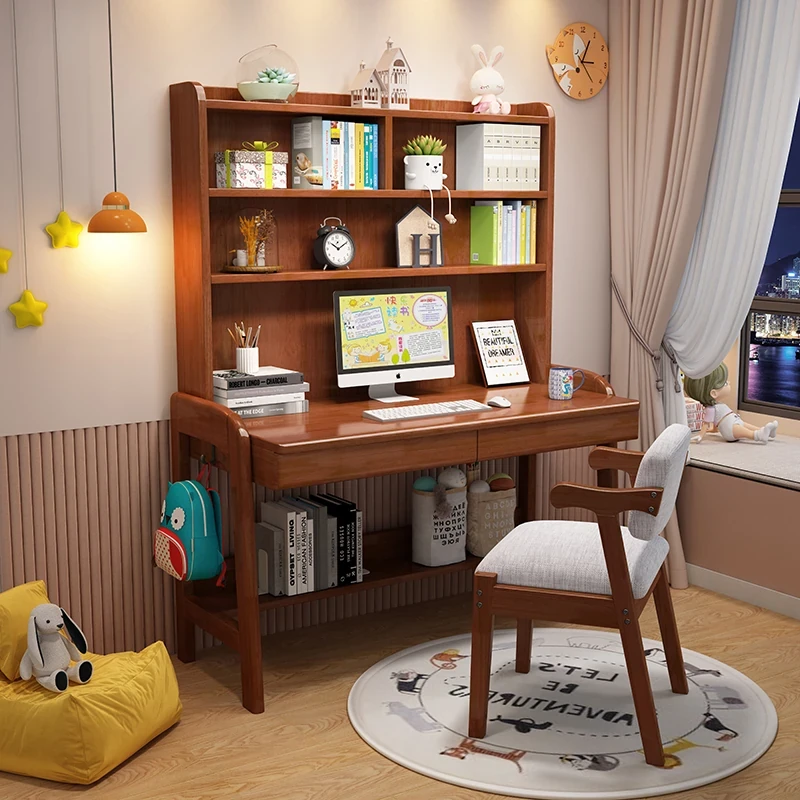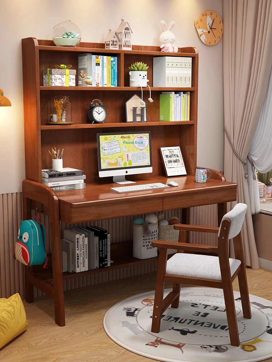 Kids' Study Desk & Computer Table - Modern Minimalist Design for Students, Multi-functional Solid Wood Writing Desk with Integrated Bookshelf - Perfect for Home Learning Environment!