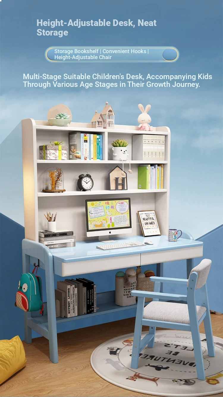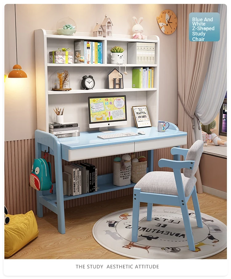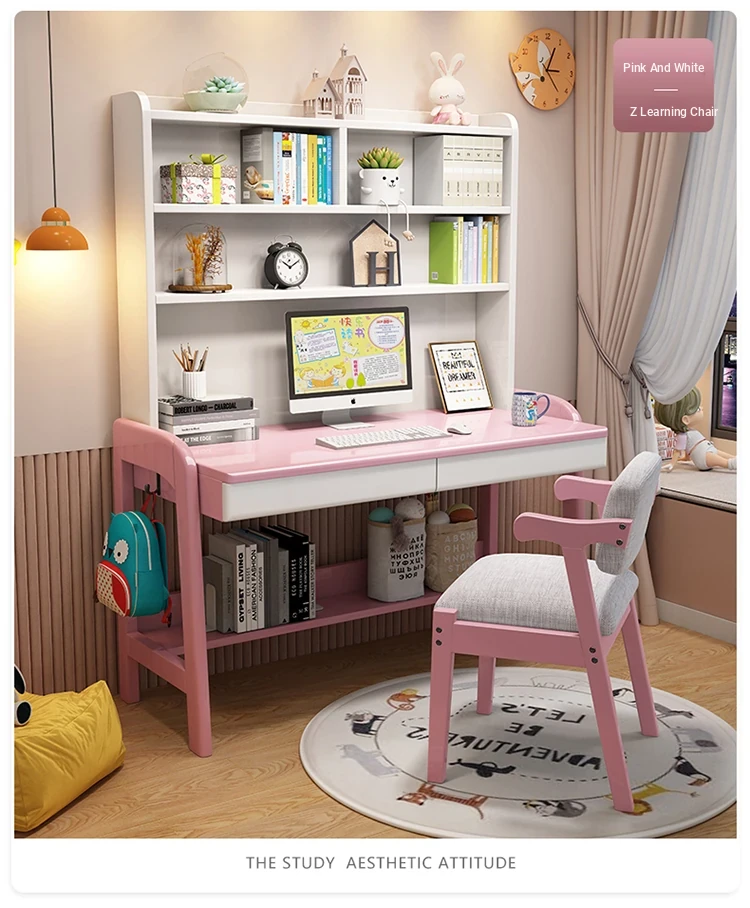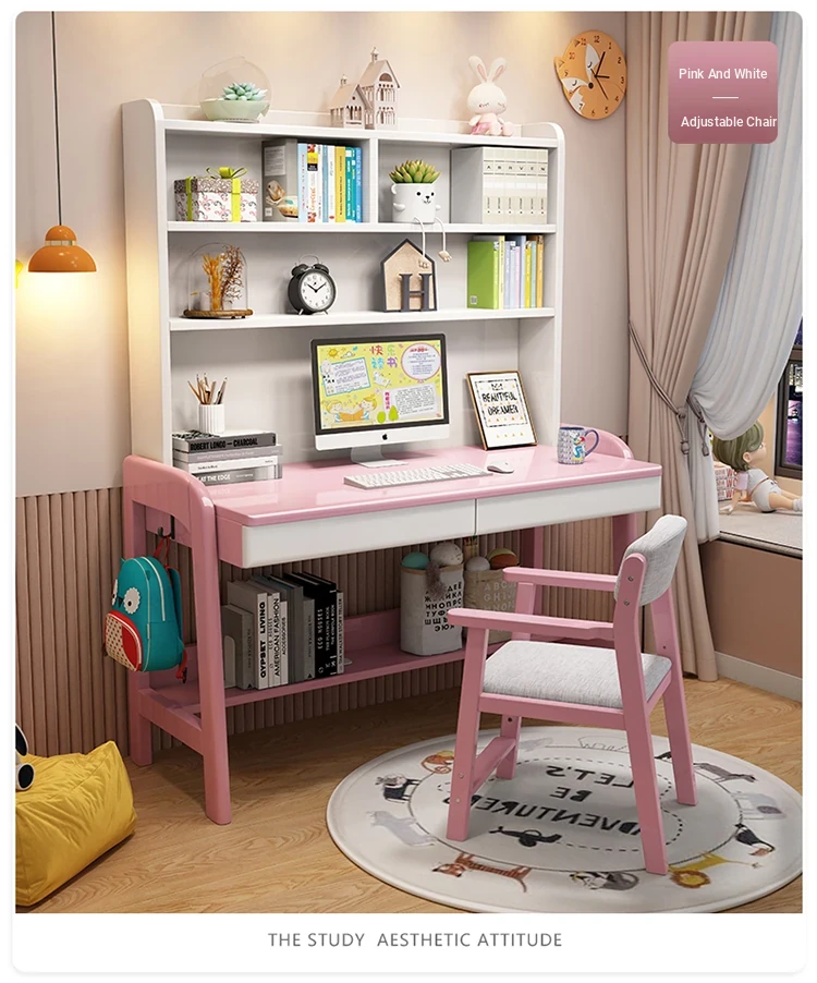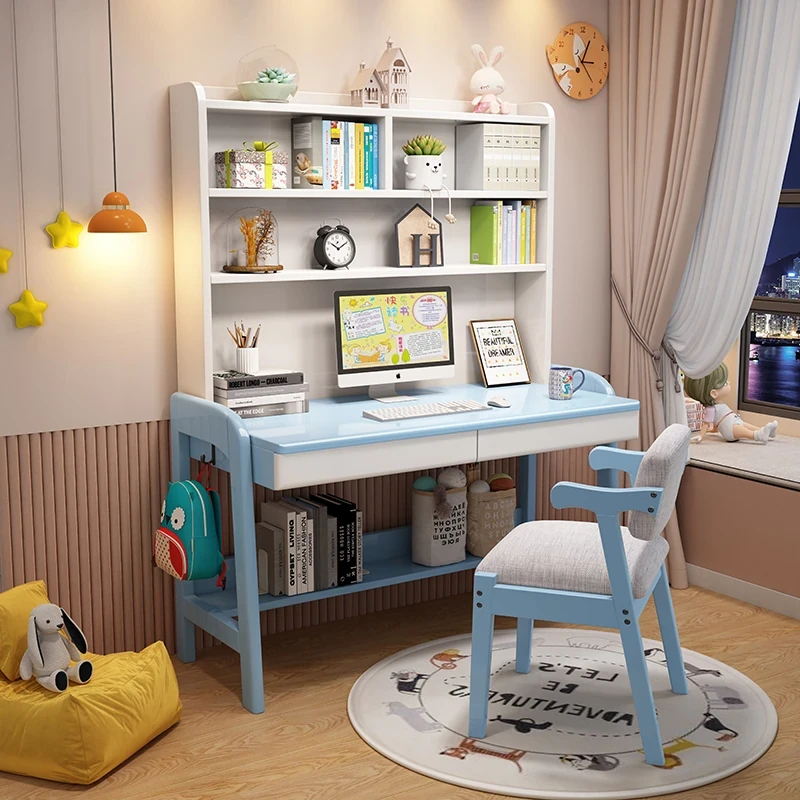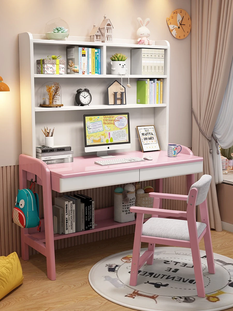 Kids' Study Desk & Computer Table - Modern Minimalist Design for Students, Multi-functional Solid Wood Writing Desk with Integrated Bookshelf - Perfect for Home Learning Environment!