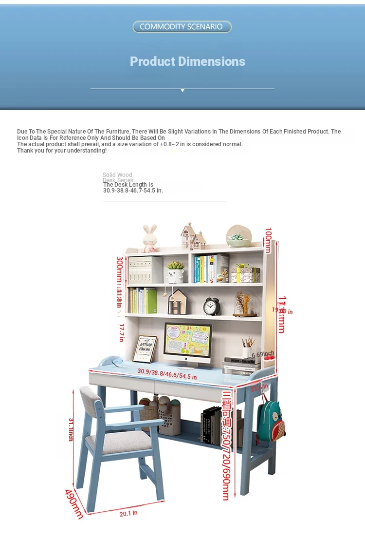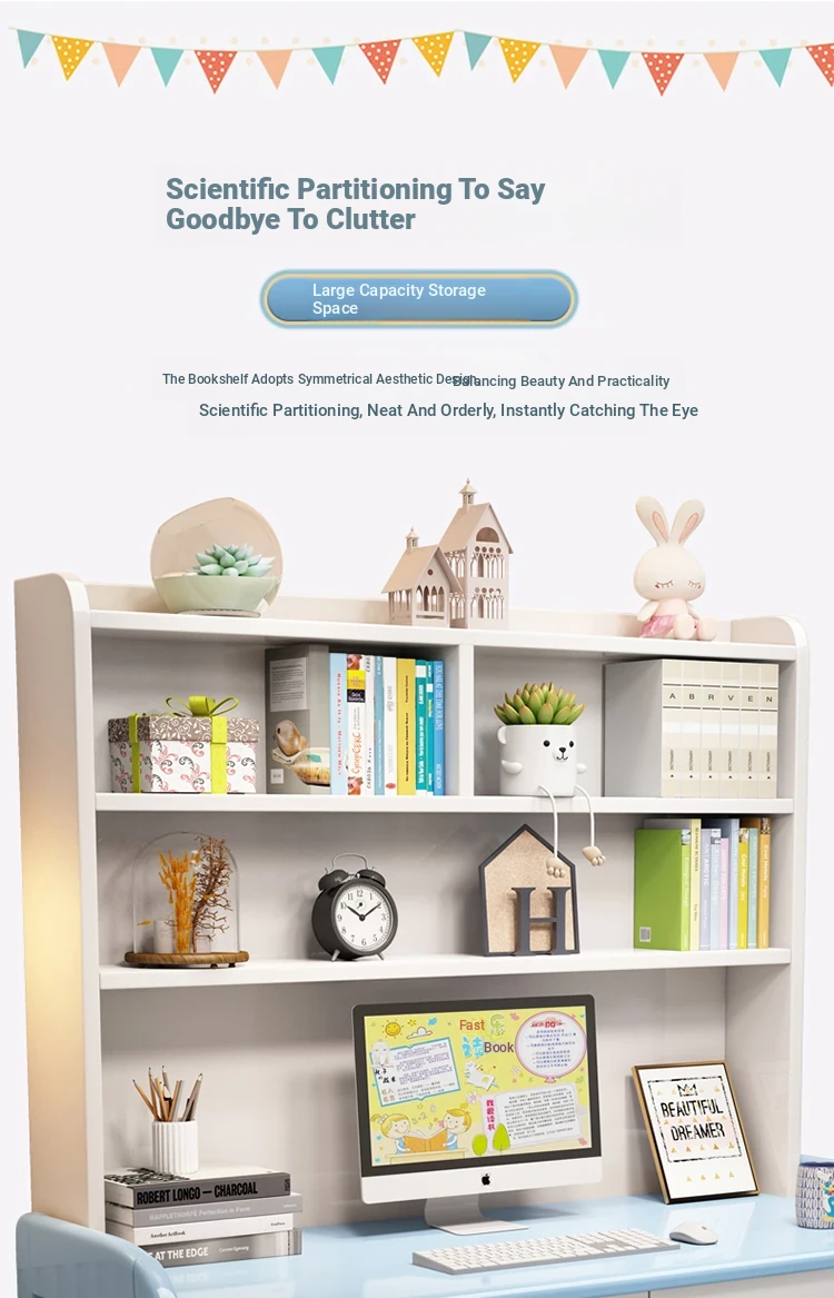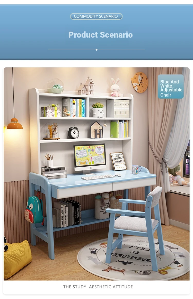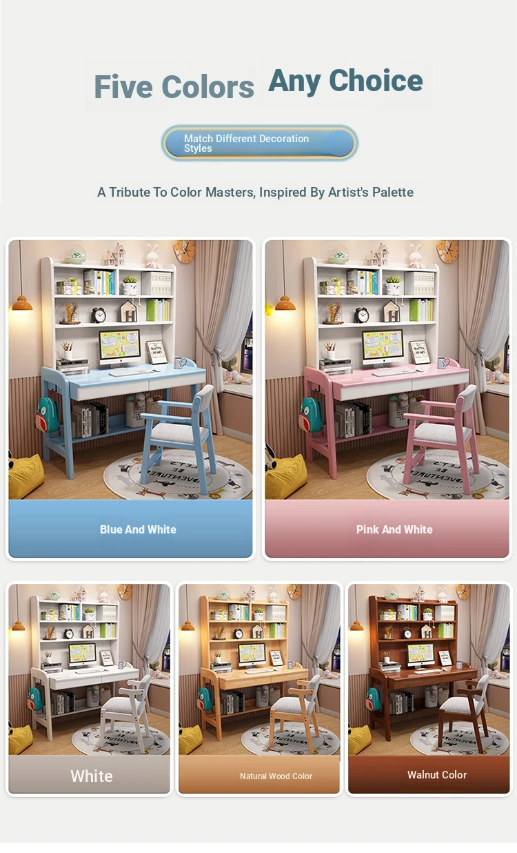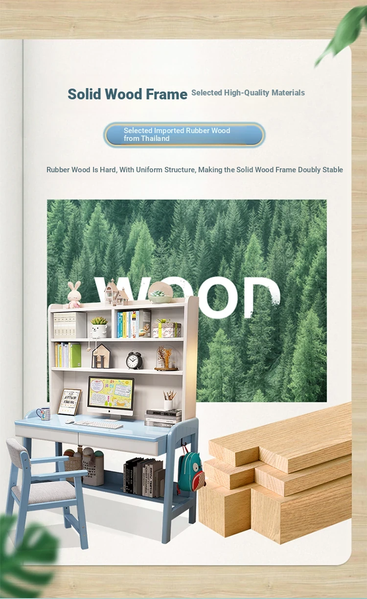 Kids' Study Desk & Computer Table - Modern Minimalist Design for Students, Multi-functional Solid Wood Writing Desk with Integrated Bookshelf - Perfect for Home Learning Environment!