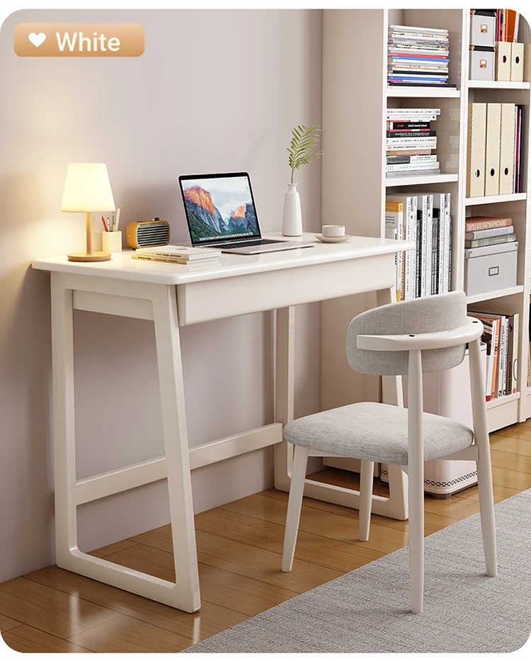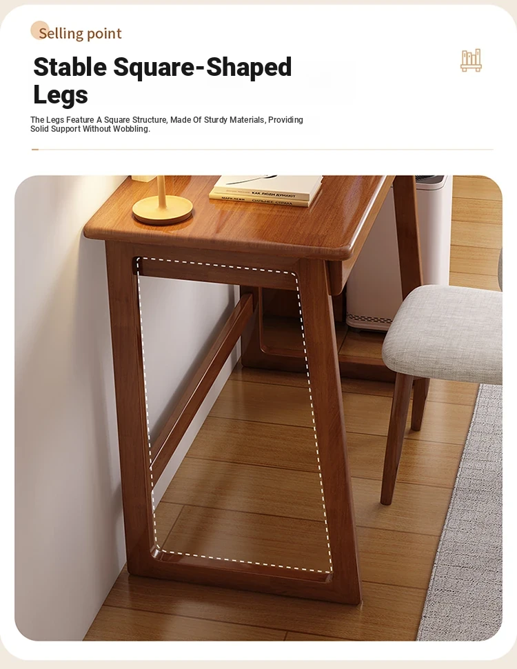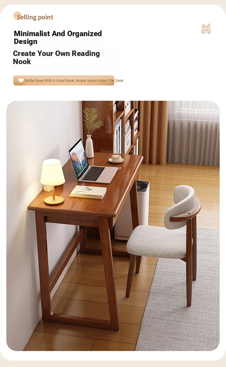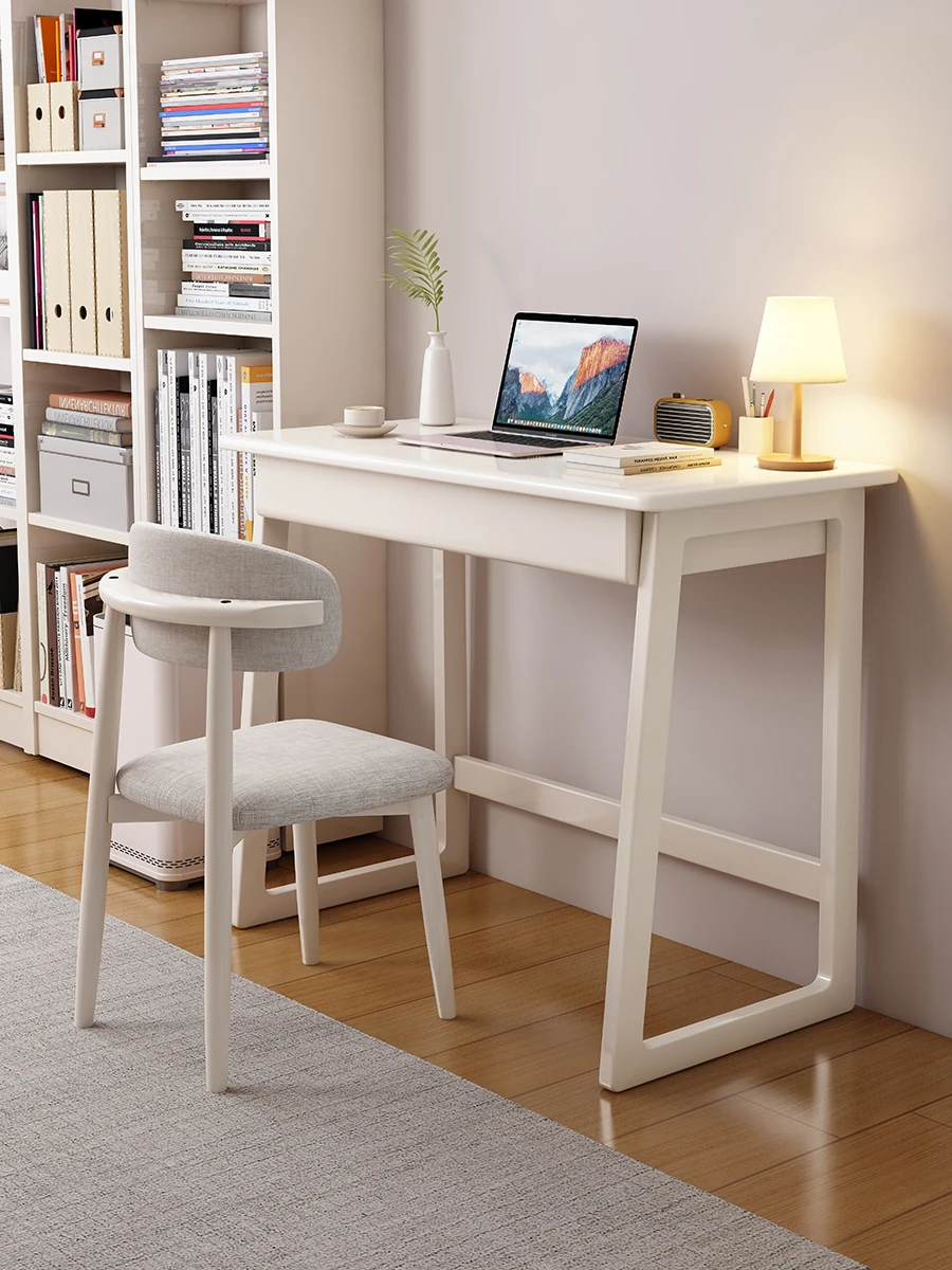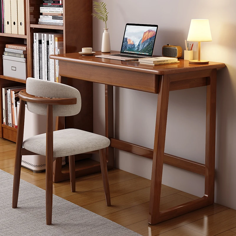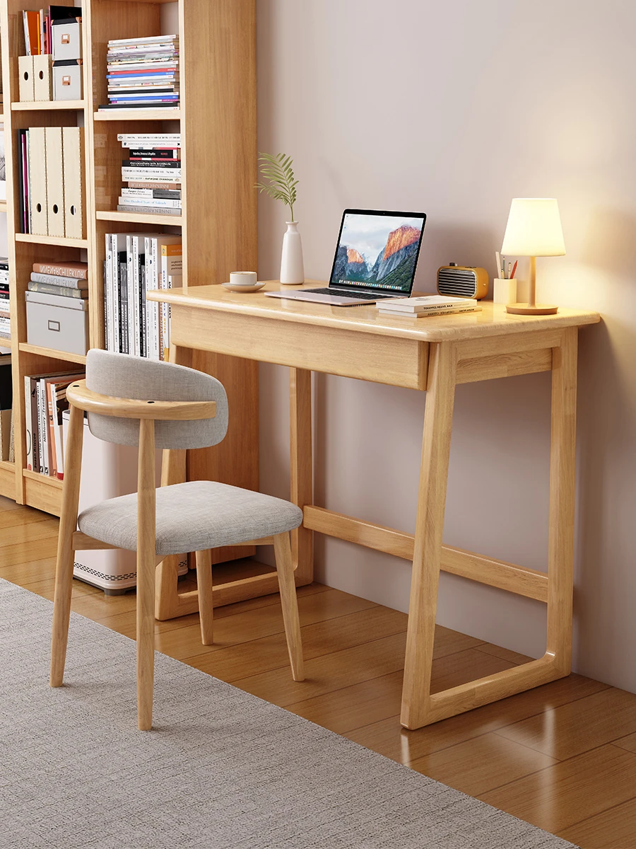 Nordic Minimalist Solid Wood Narrow Desk - 45cm Wide Study and Computer Table for Students, Perfect for Small Spaces, Bedroom Vanity Style