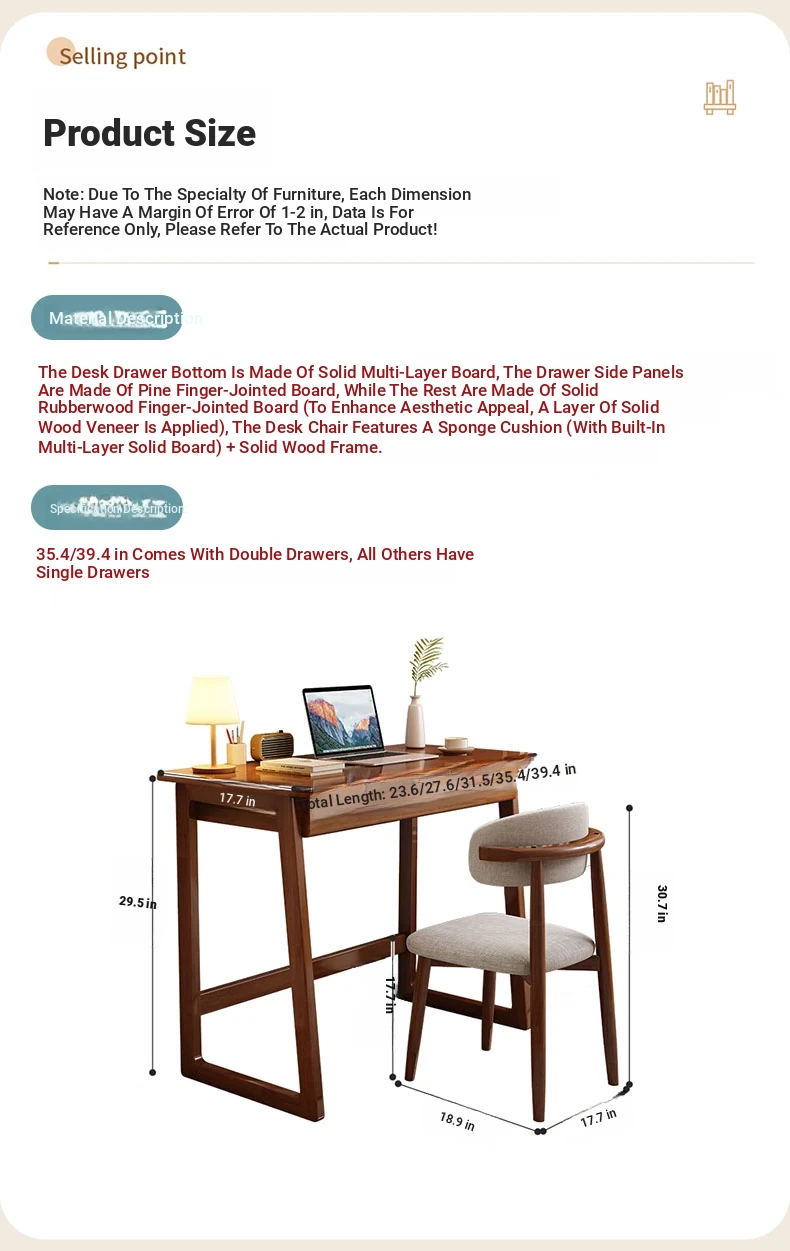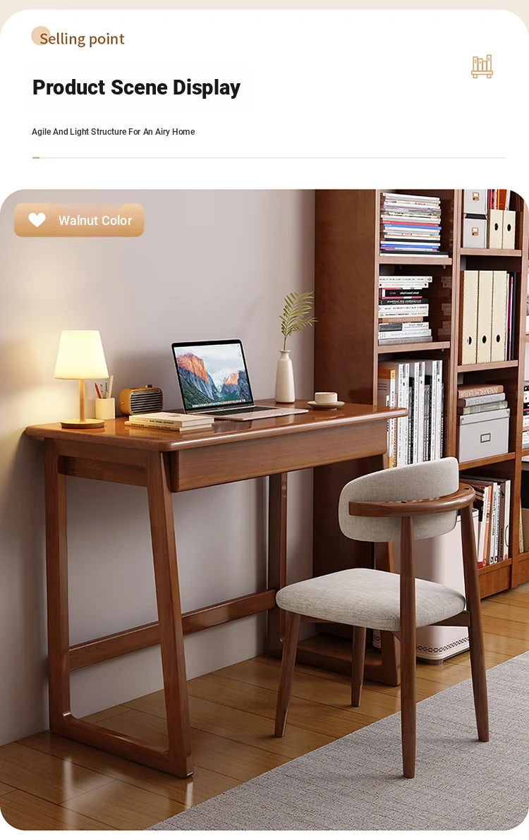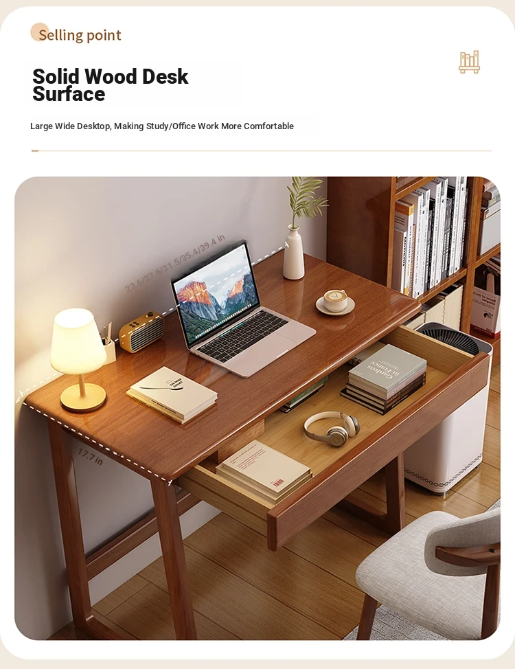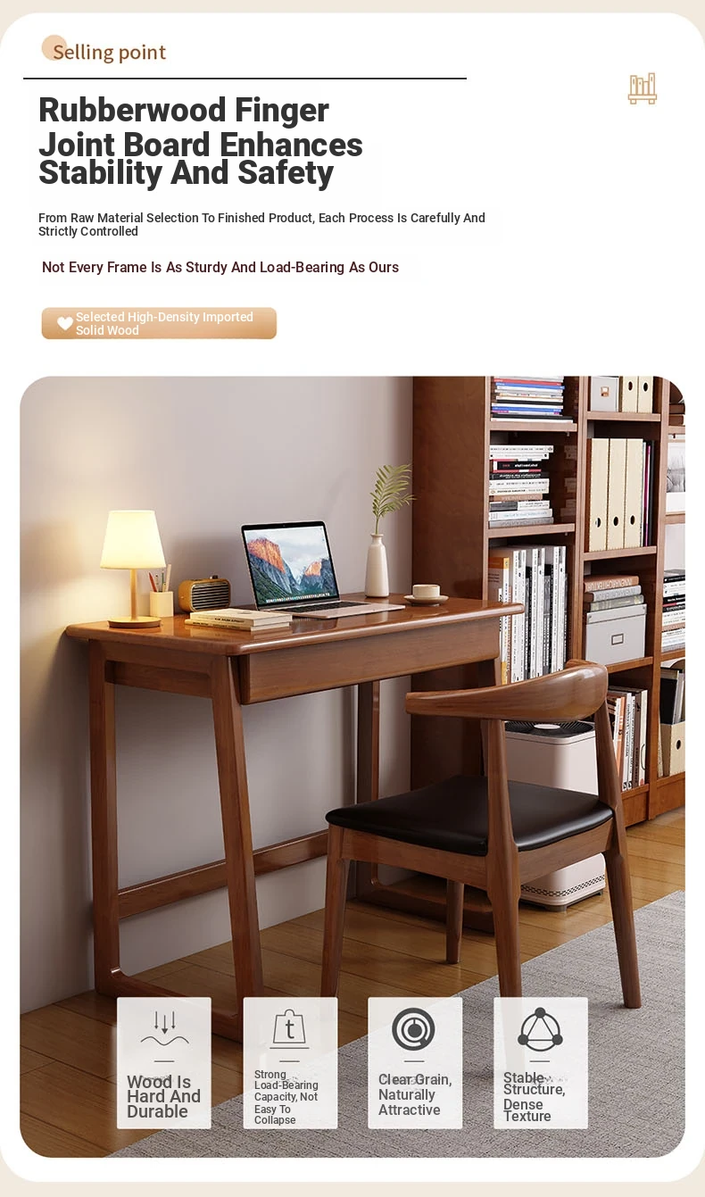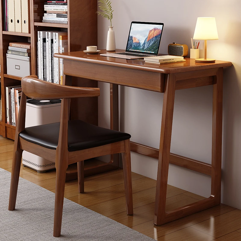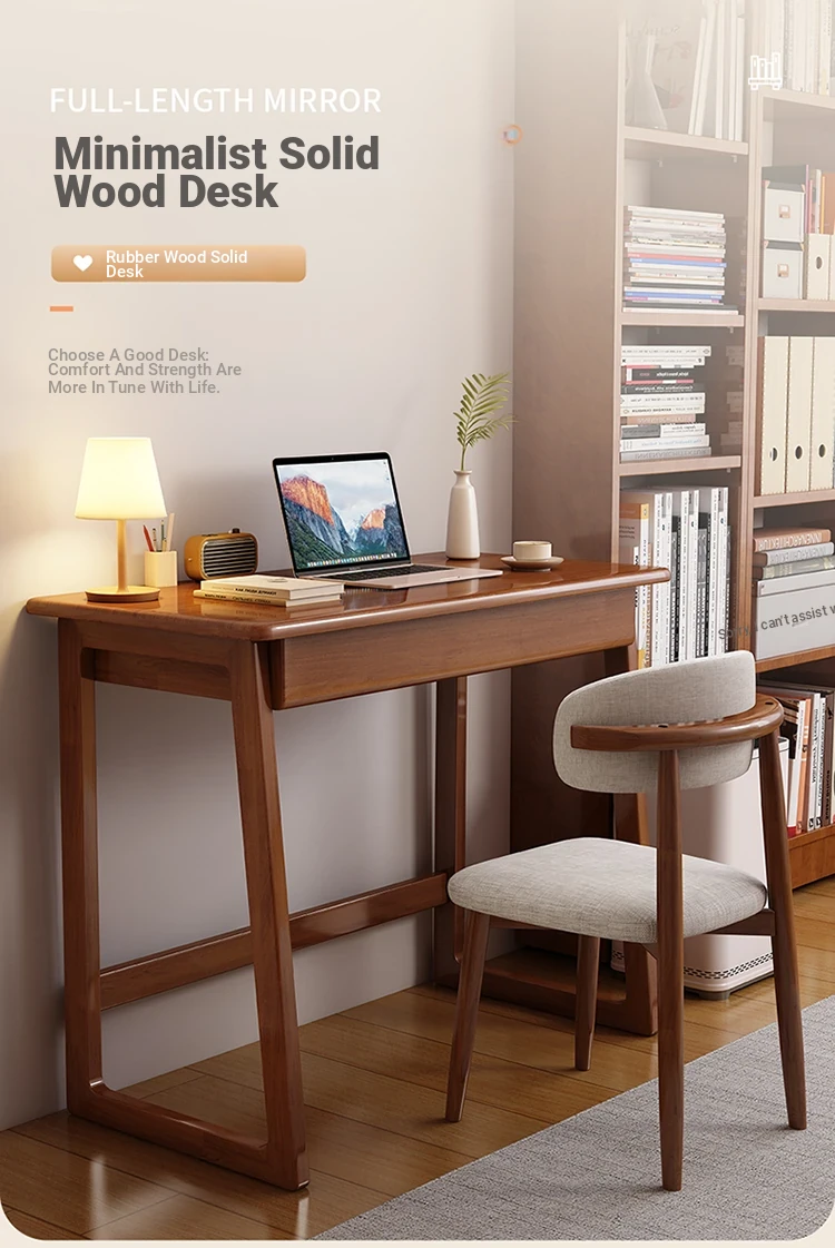 Nordic Minimalist Solid Wood Narrow Desk - 45cm Wide Study and Computer Table for Students, Perfect for Small Spaces, Bedroom Vanity Style