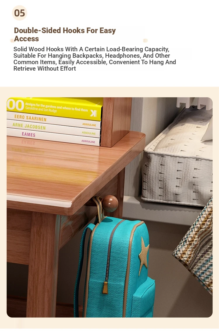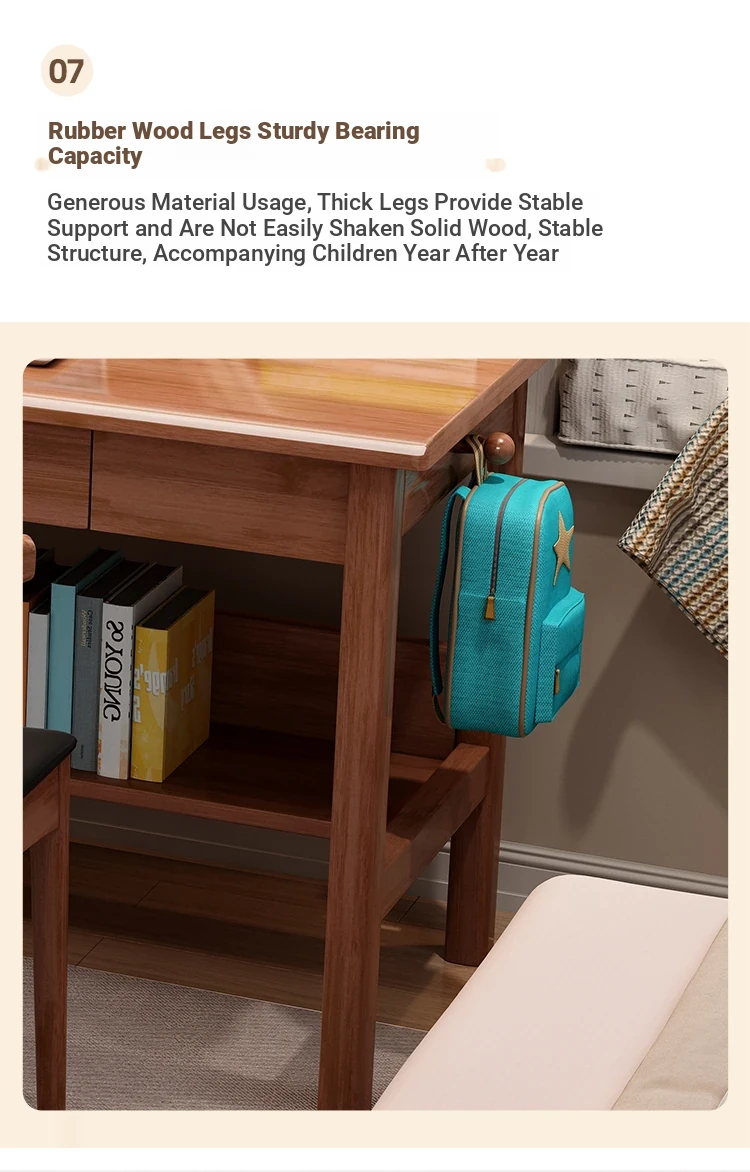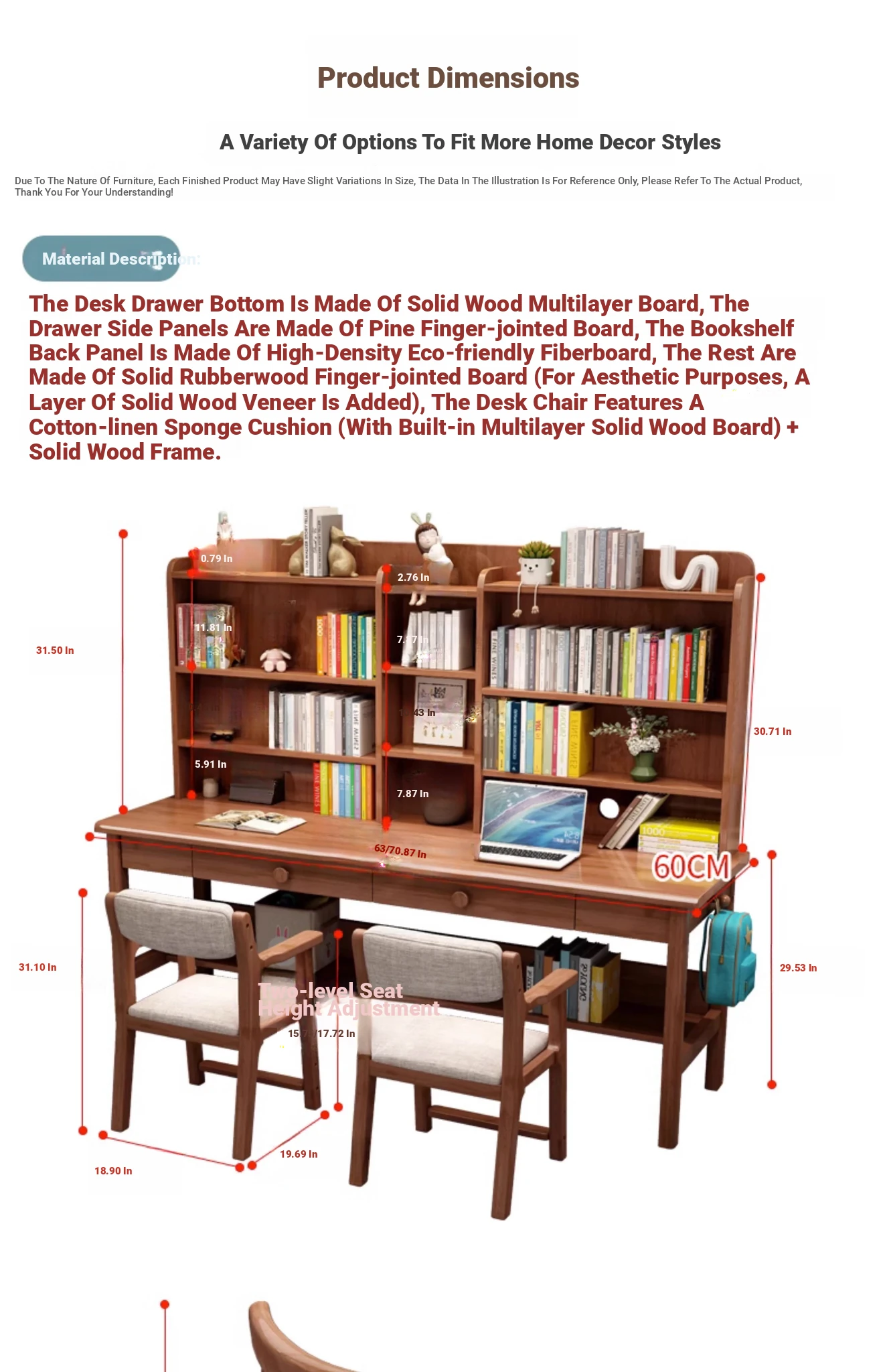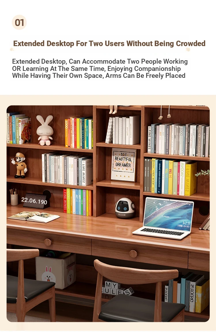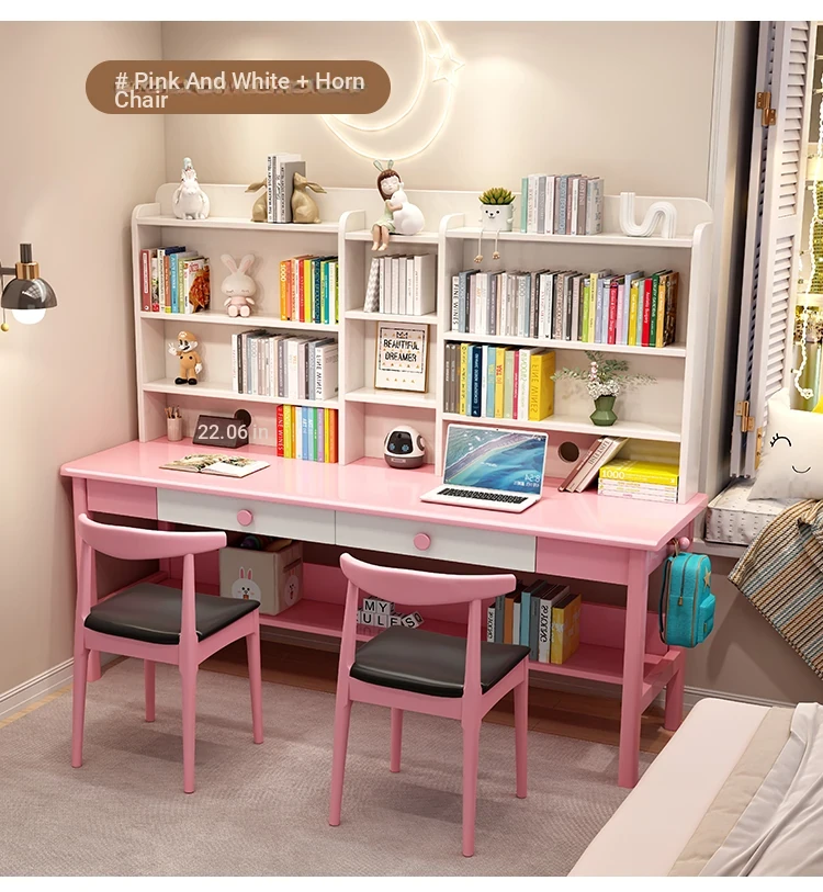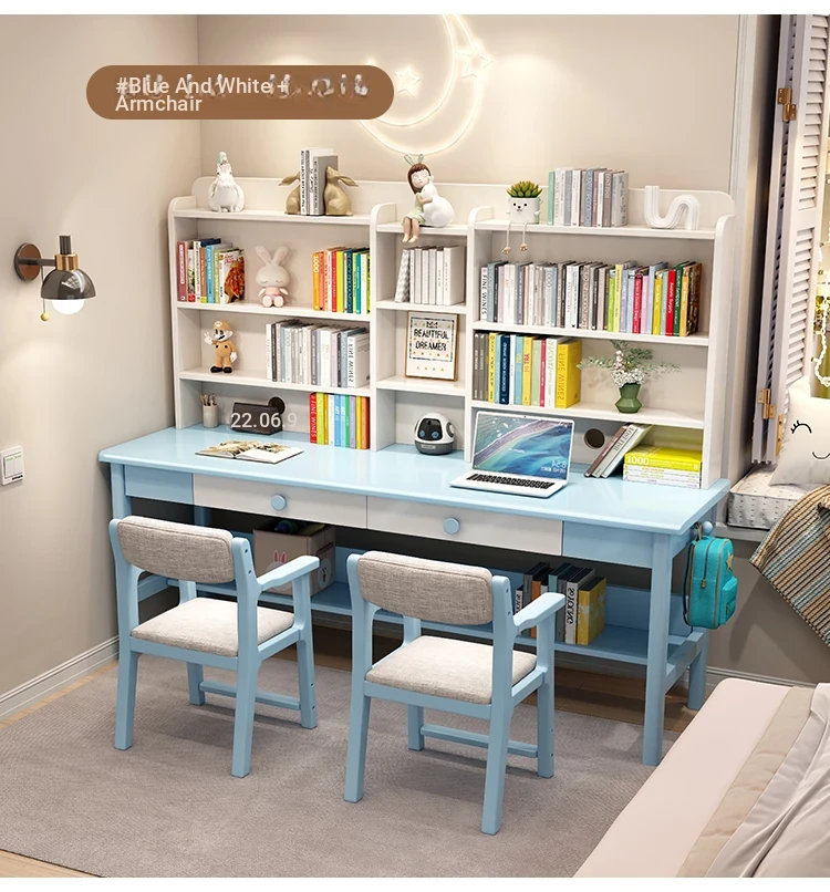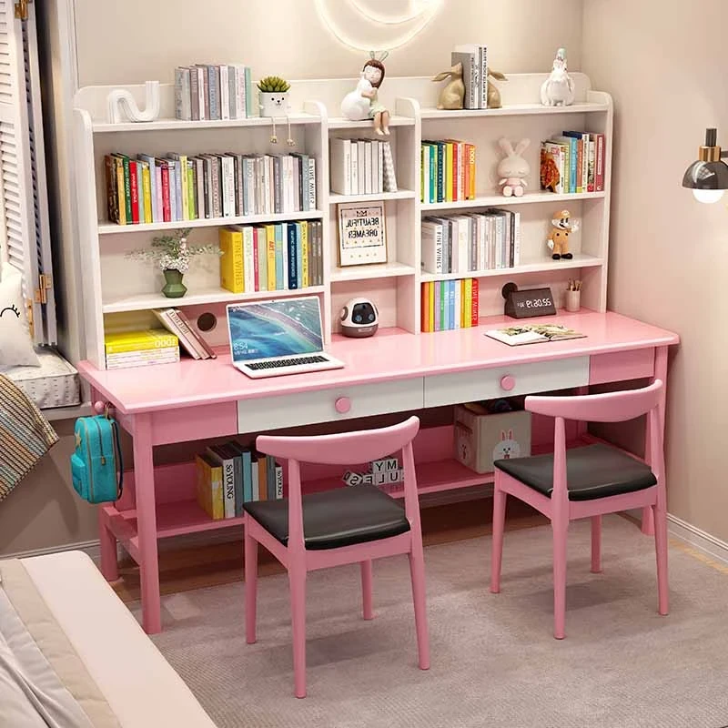 Optimize Solid Wood Double Writing Desk with Bookshelf for Kids - Perfect Study Table for Two Students in Bedrooms, Ideal for Elementary and Middle School Learning