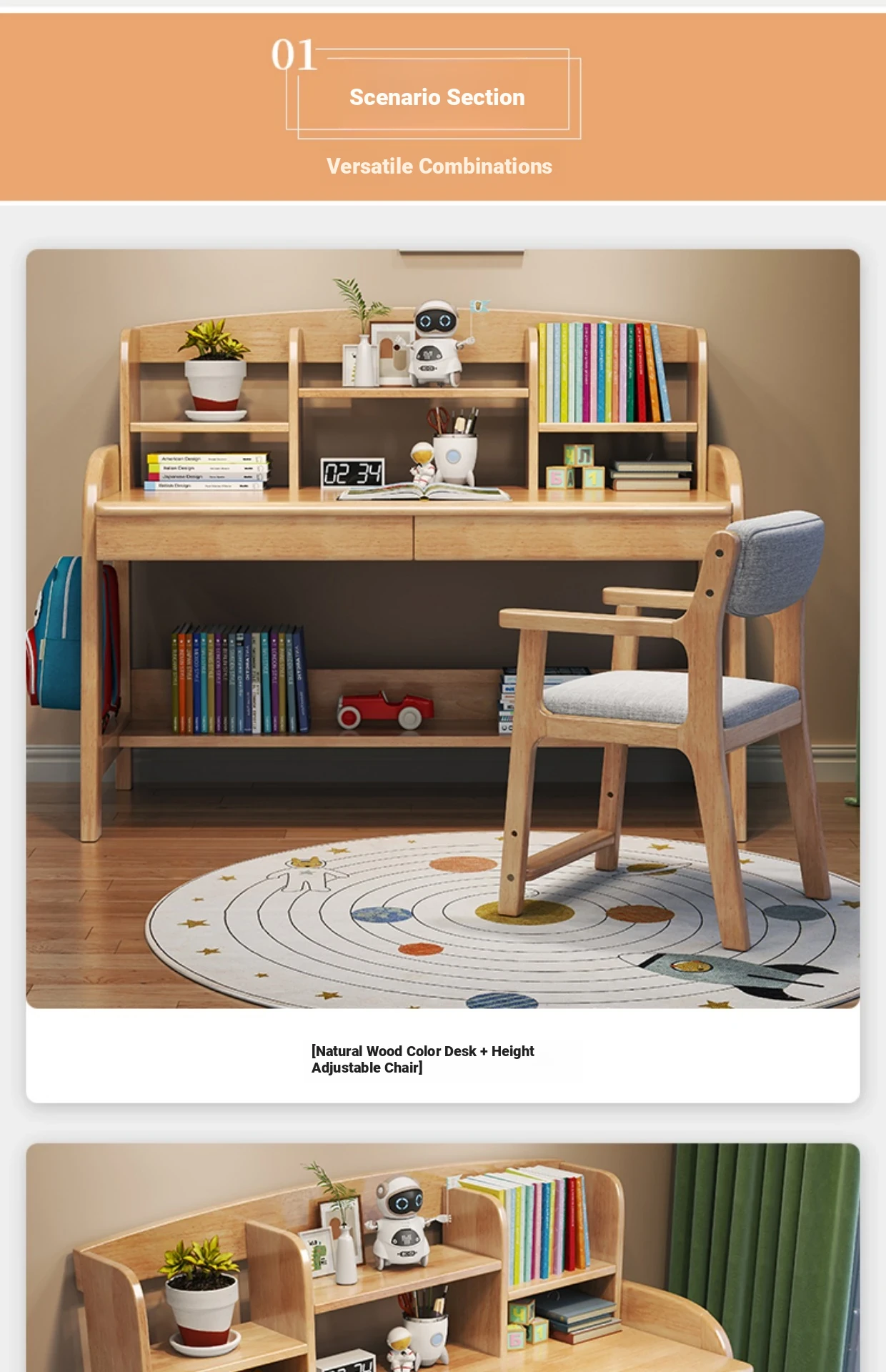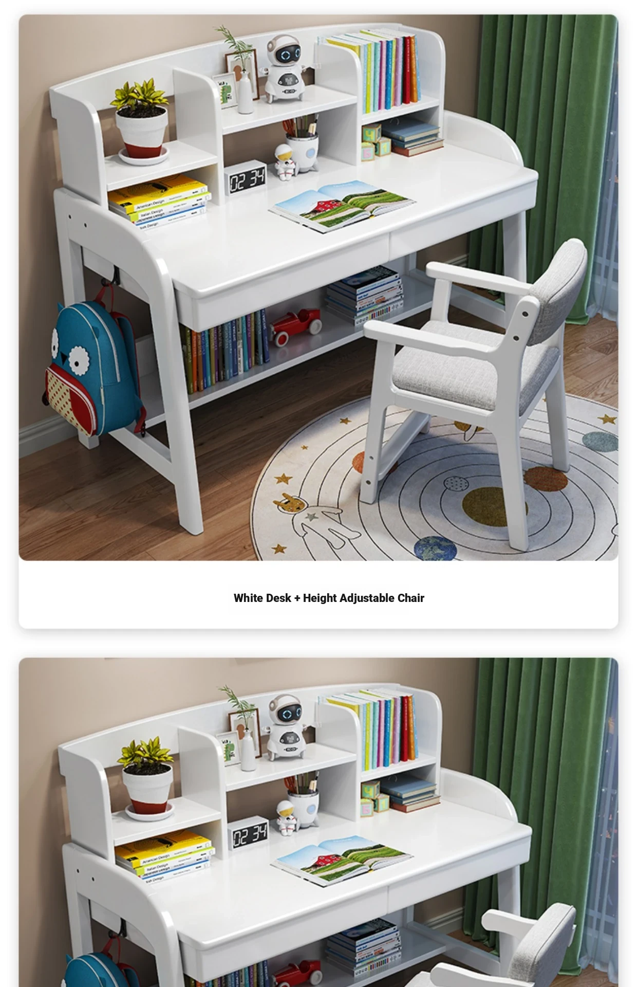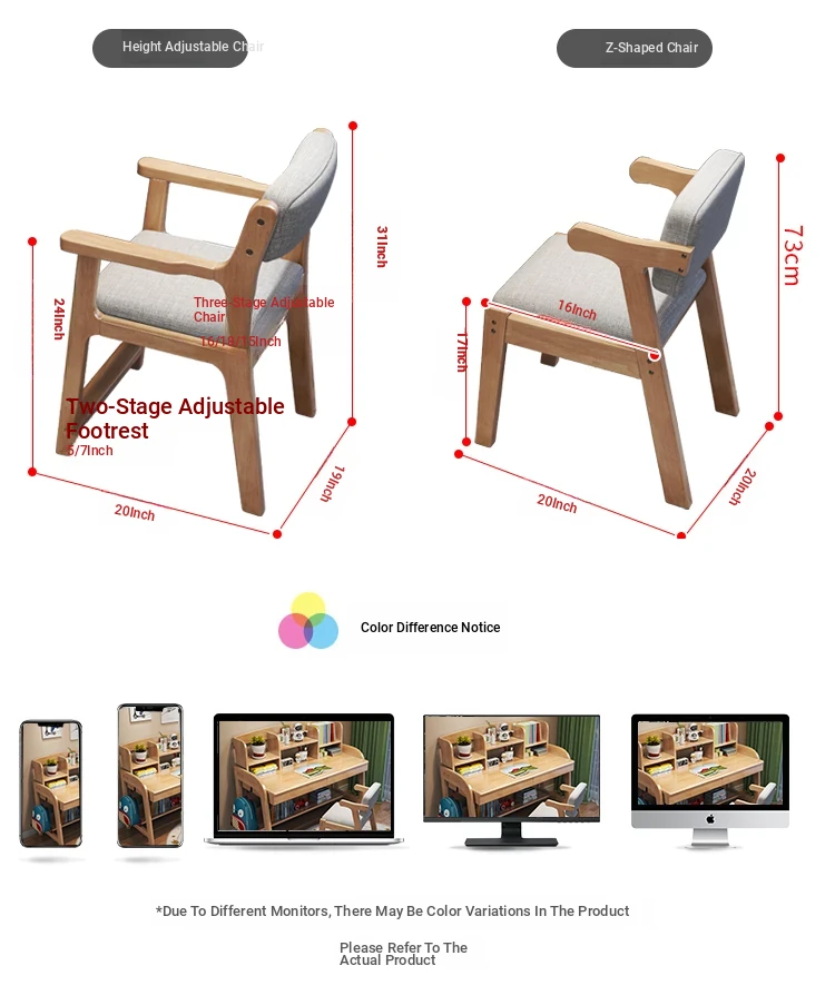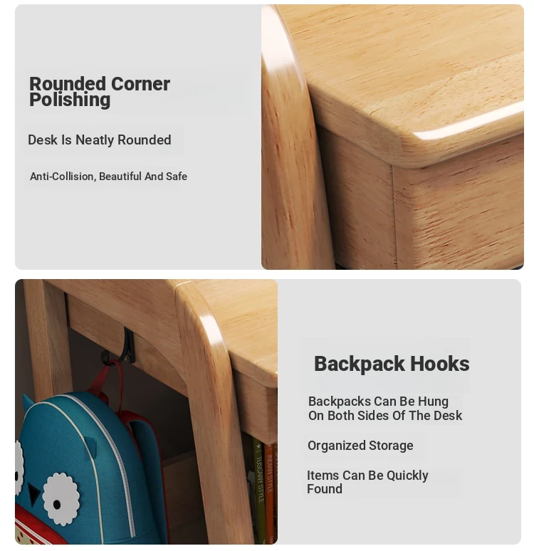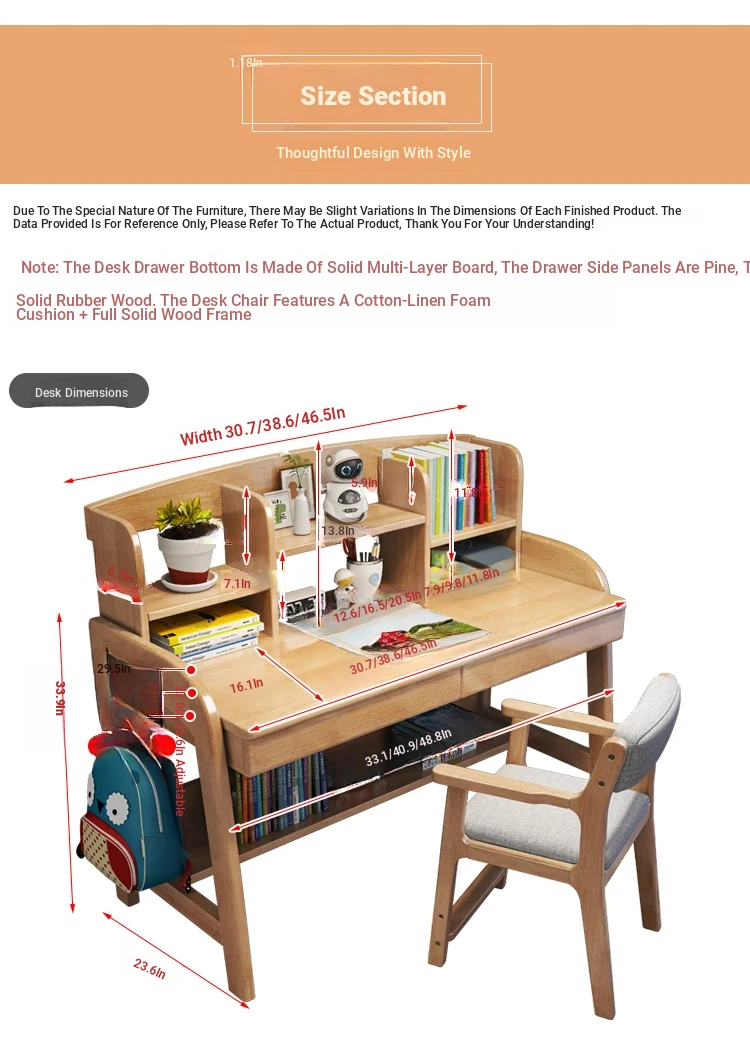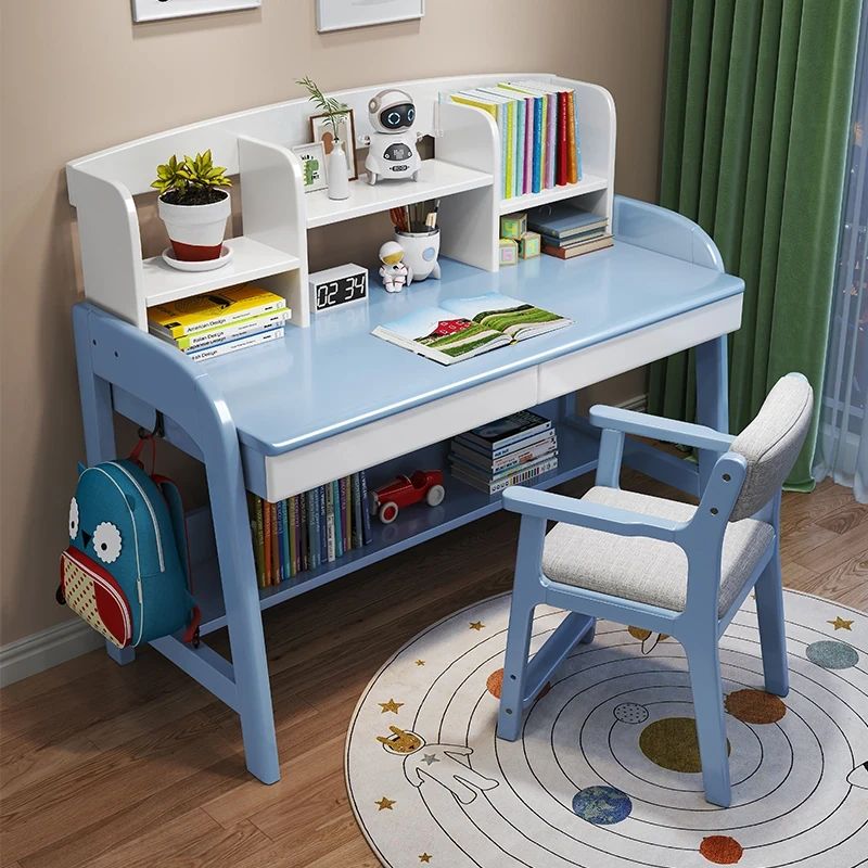 Solid Wood Children's Study Desk with Integrated Bookshelf - Adjustable Home Writing Desk Set for Middle School Students, Perfect for Bedrooms