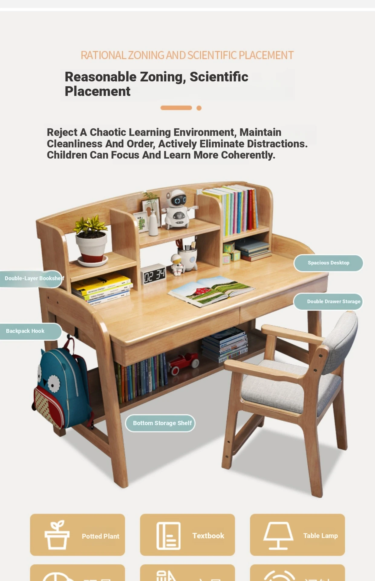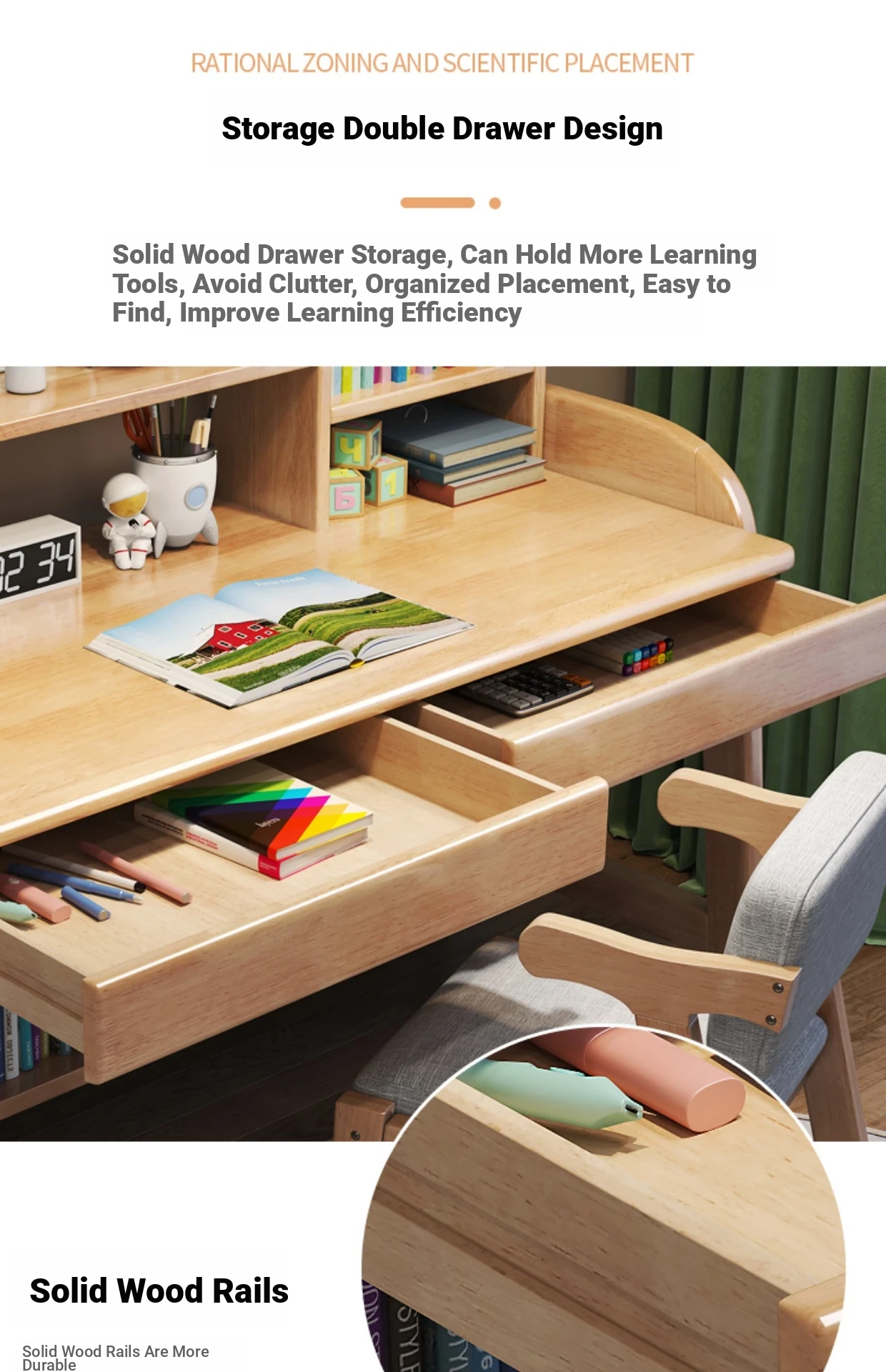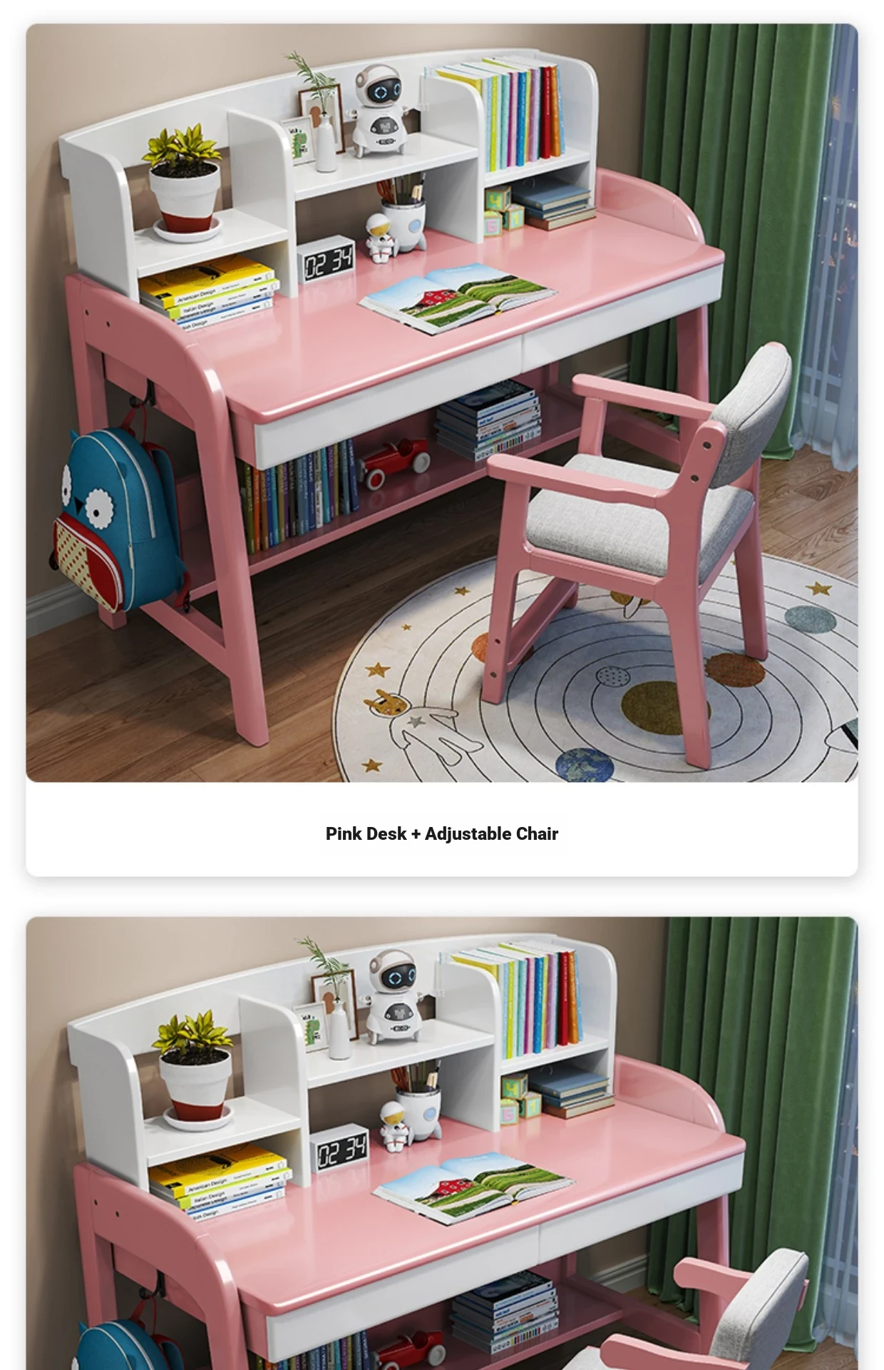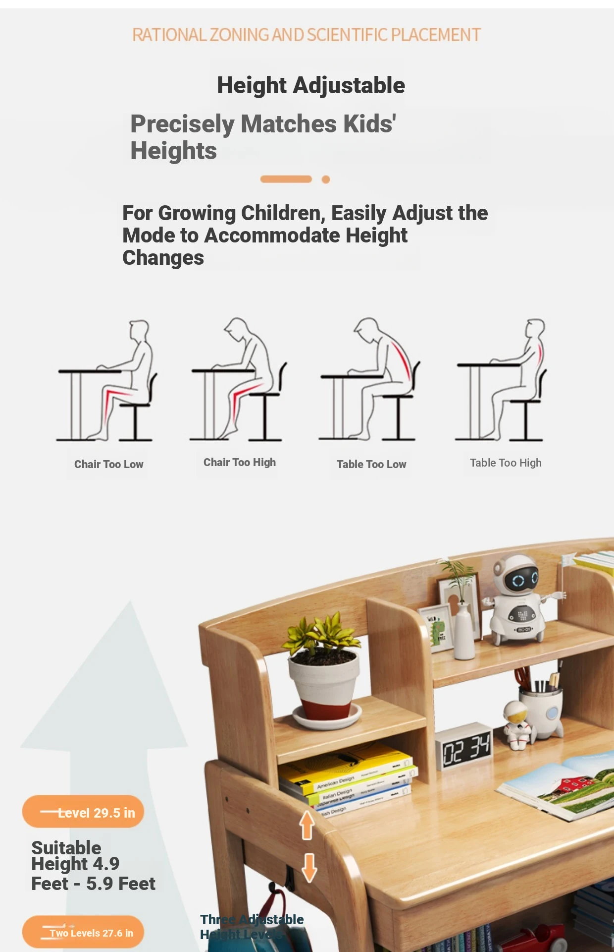 Solid Wood Children's Study Desk with Integrated Bookshelf - Adjustable Home Writing Desk Set for Middle School Students, Perfect for Bedrooms
