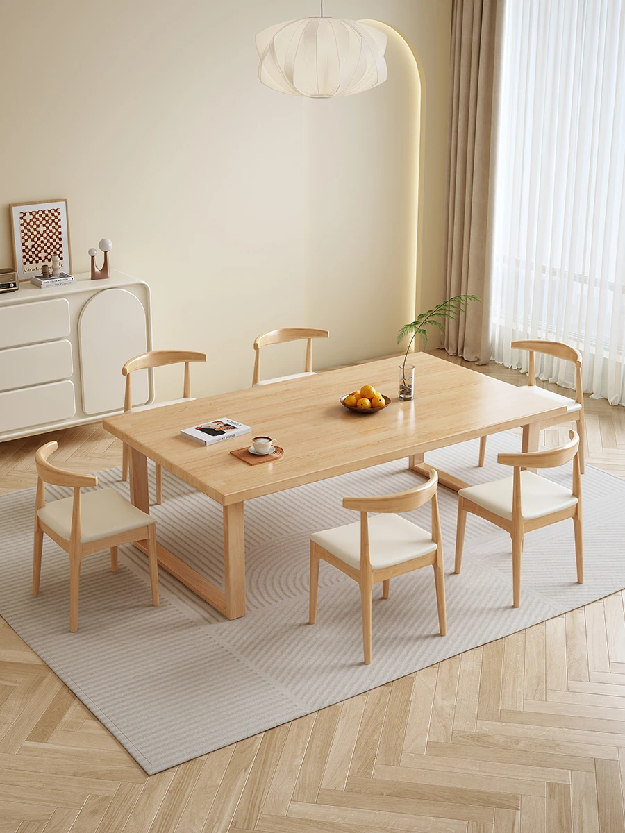 FJXDB02# log color table + horn chair * 6(Desktop wood thickness 1.57in])