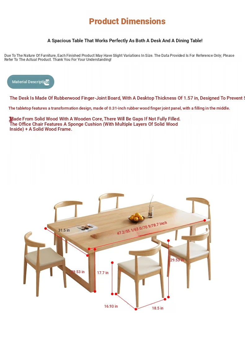Solid Wood Large Desk - Versatile Home Office Table for Work, Reading, Writing, and Calligraphy - Perfect for Living Room Use