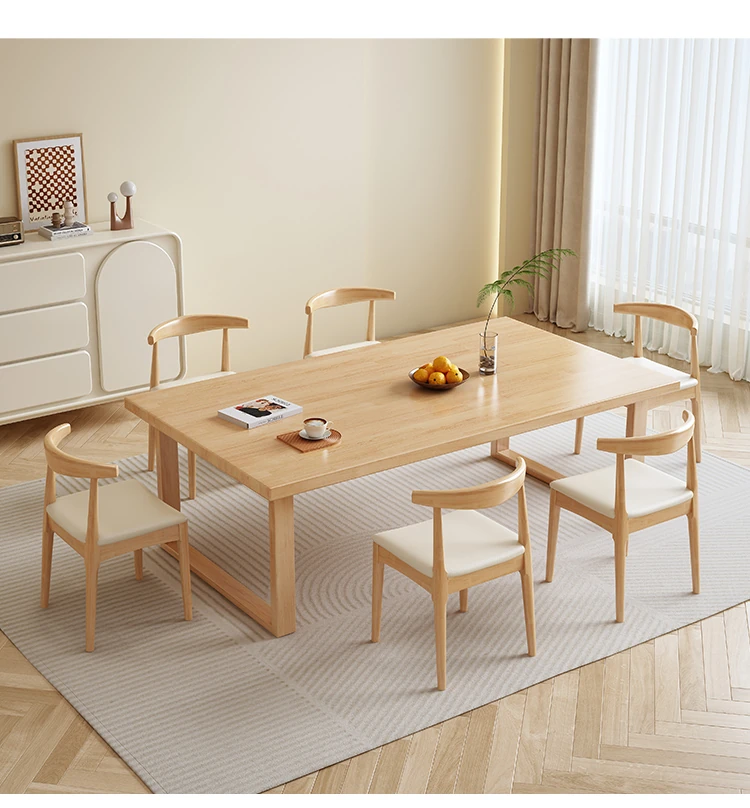 FJXDB02# ivory white table + horn chair * 6(Desktop wood thickness 1.57in])