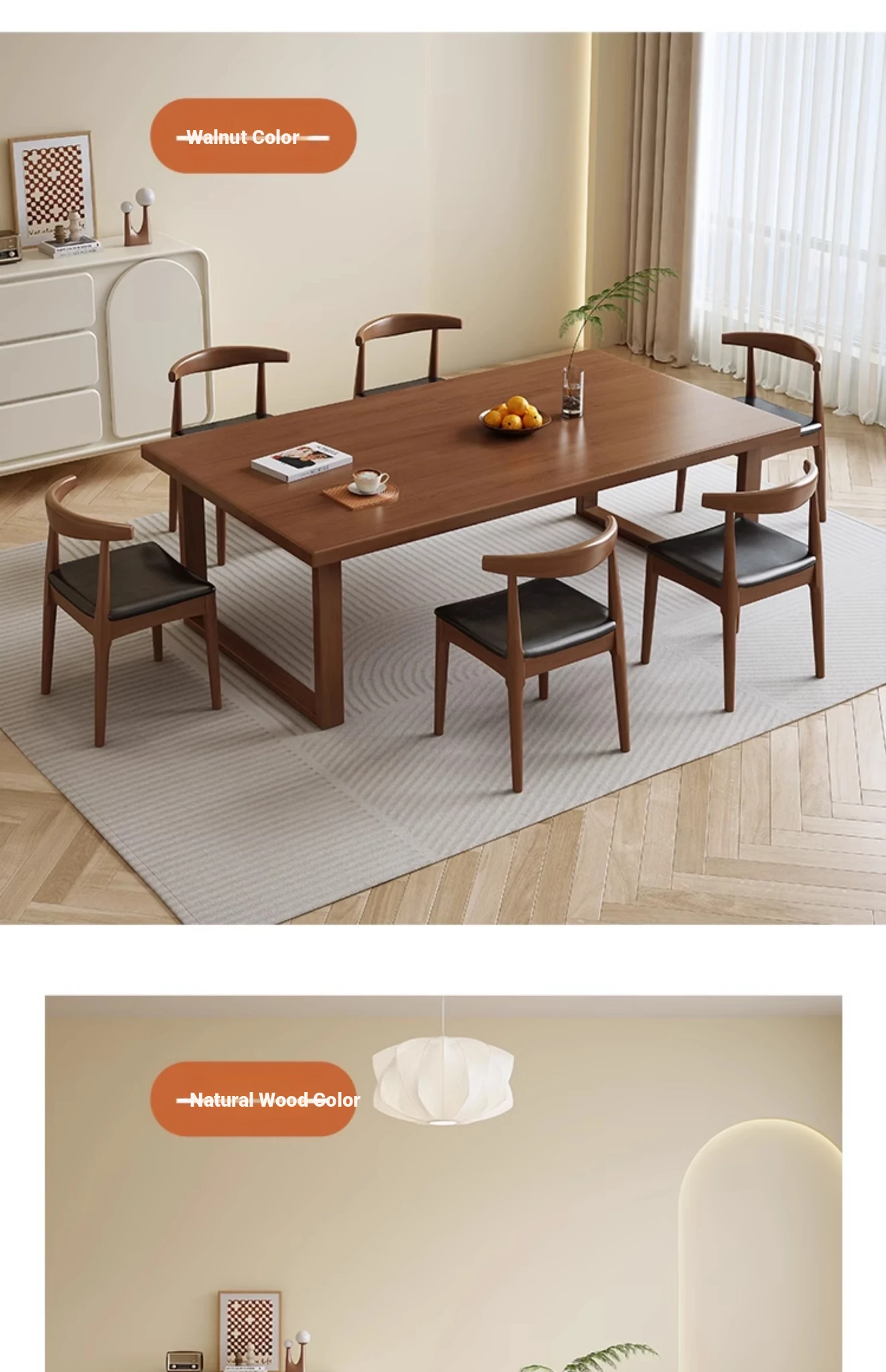 FJXDB02# walnut color table + horn chair * 6(Desktop wood thickness 1.57in])