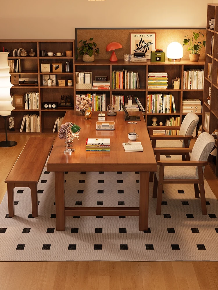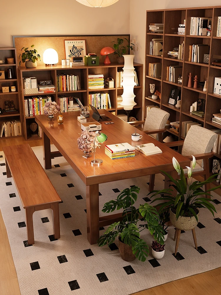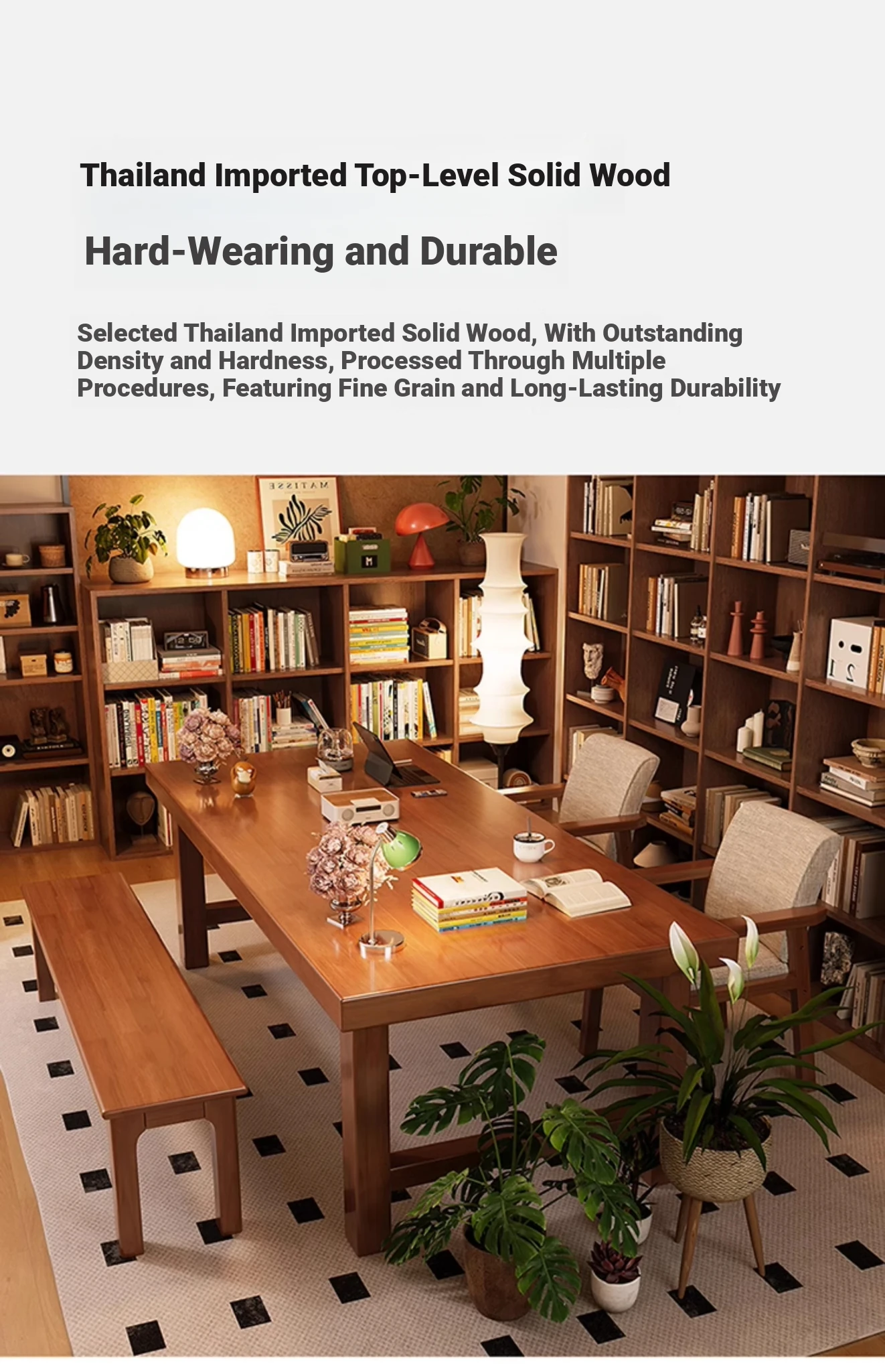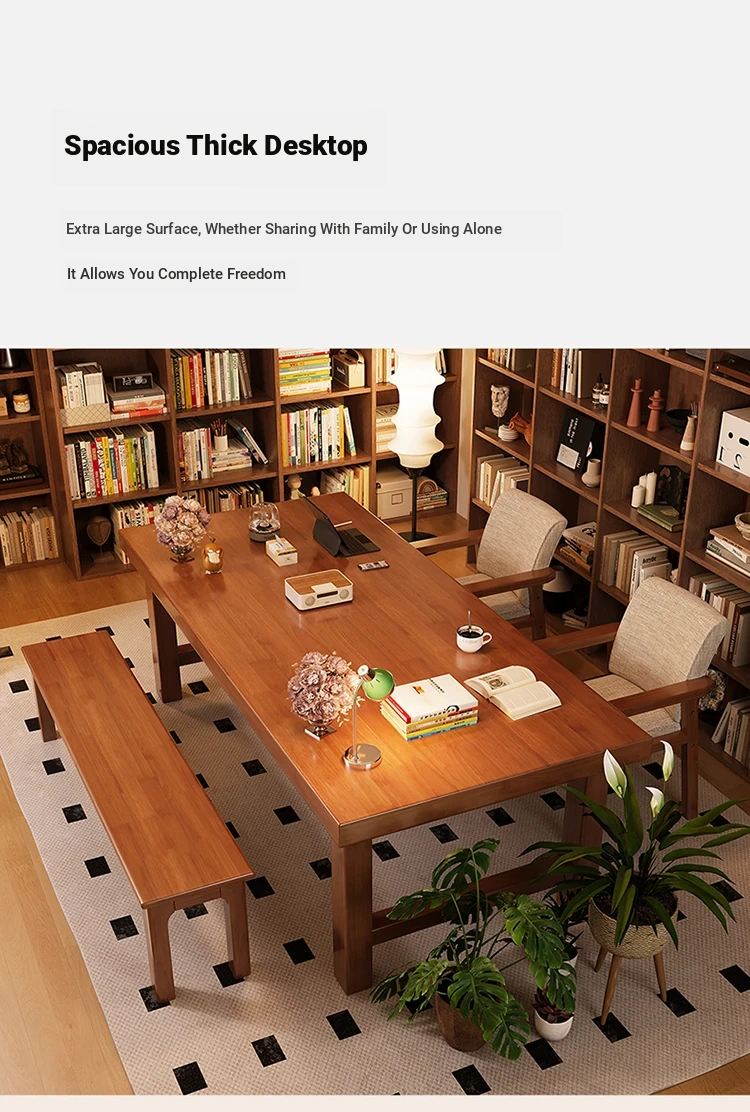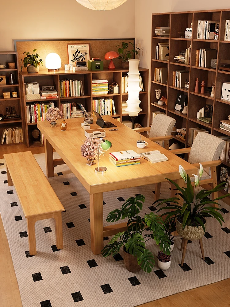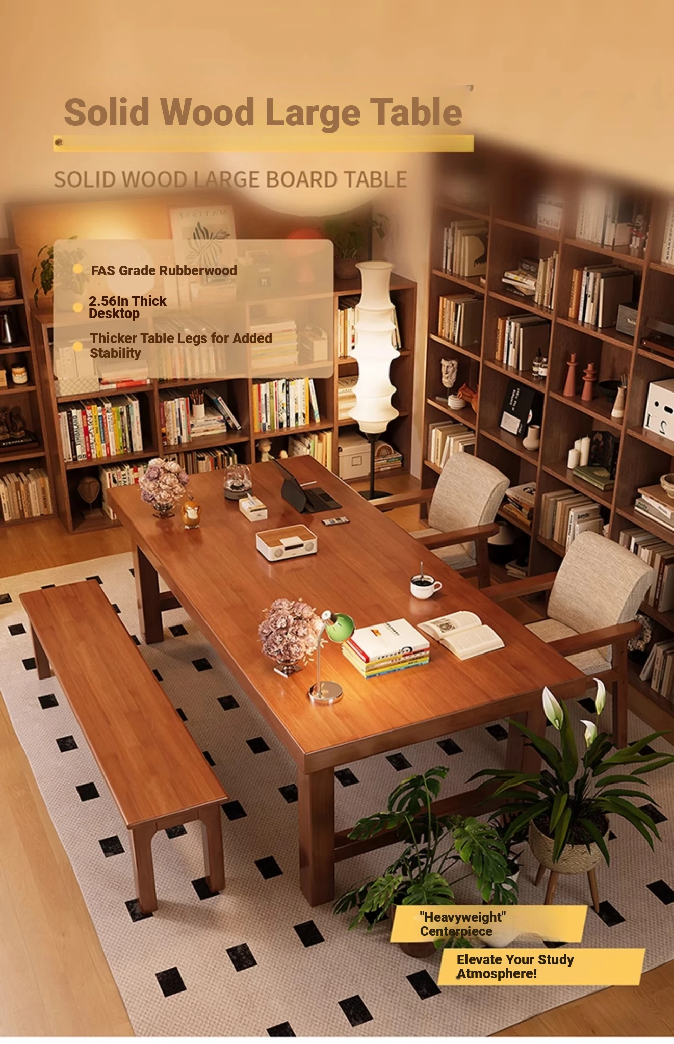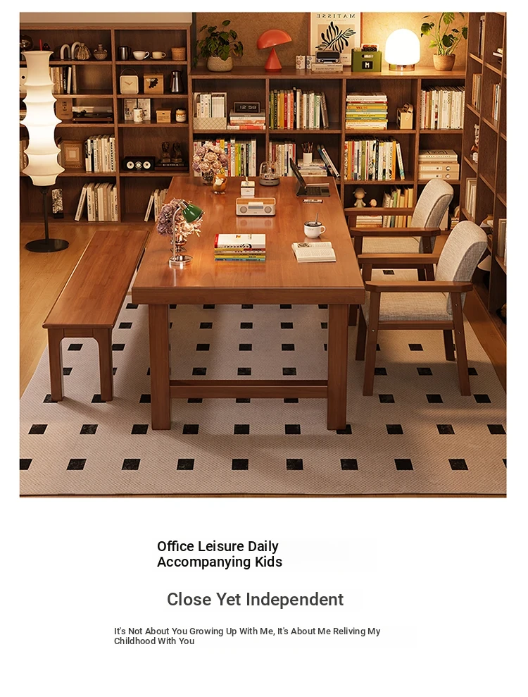 Solid Wood Long Coffee Table - Perfect for Parent-Child Reading and Study Sessions in Your Home Office or Living Room. Spacious Design Ideal for Learning and Working.