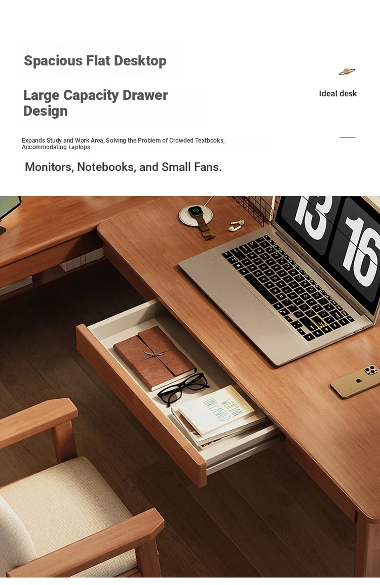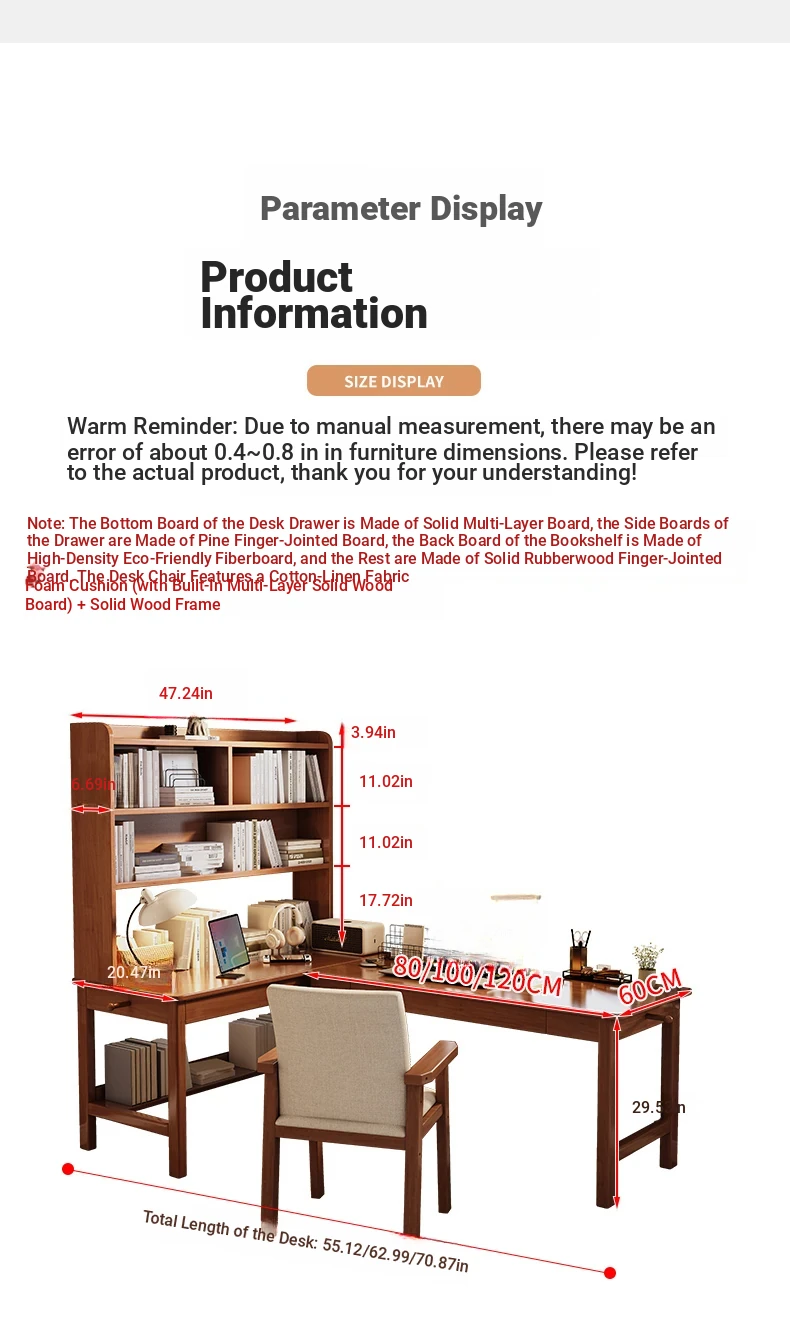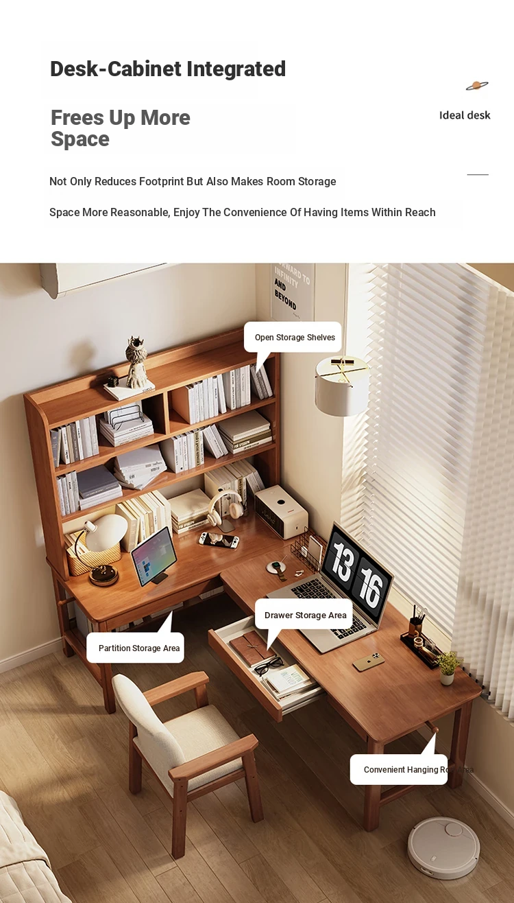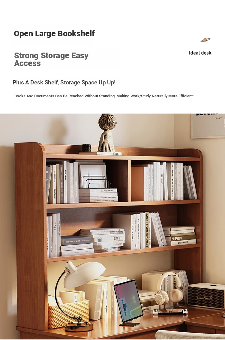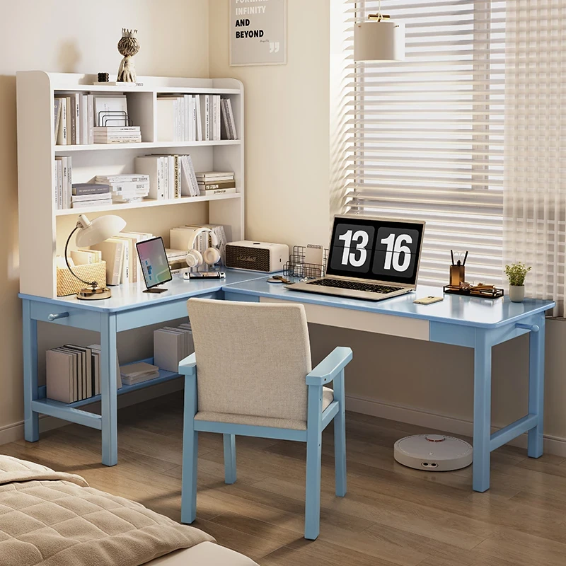 Solid Wood L-Shaped Corner Desk with Bookshelf – Stylish Computer Desk for Home Office, Simplistic Writing Table for Bedrooms and Student Study Sessions