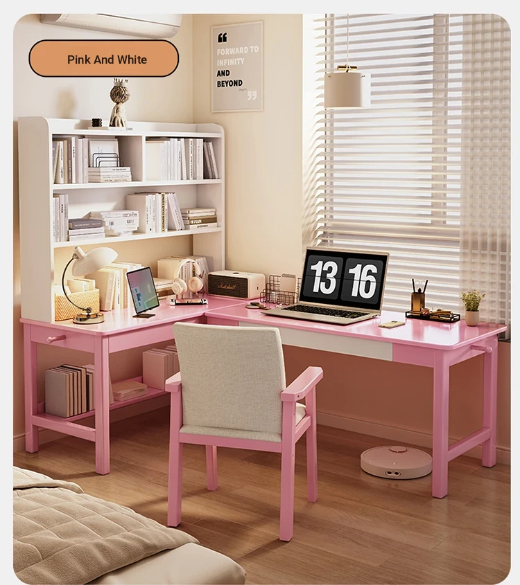 YAYJ633# pink and white single table(Bookshelf can be installed around])