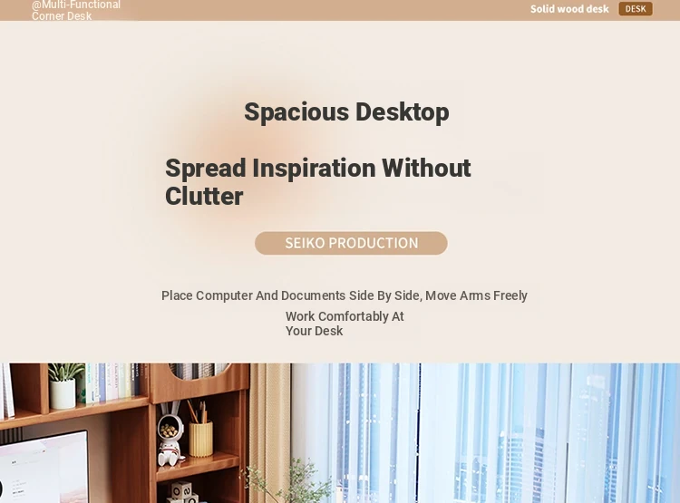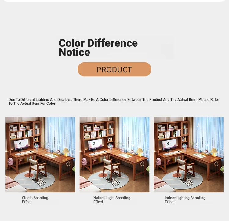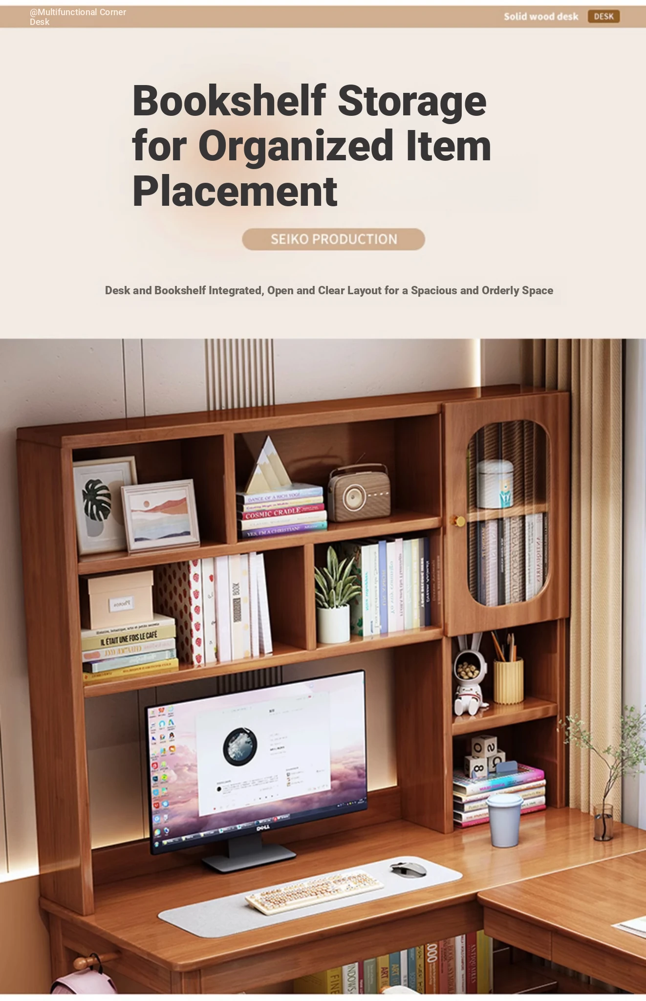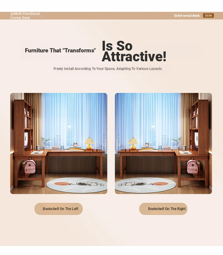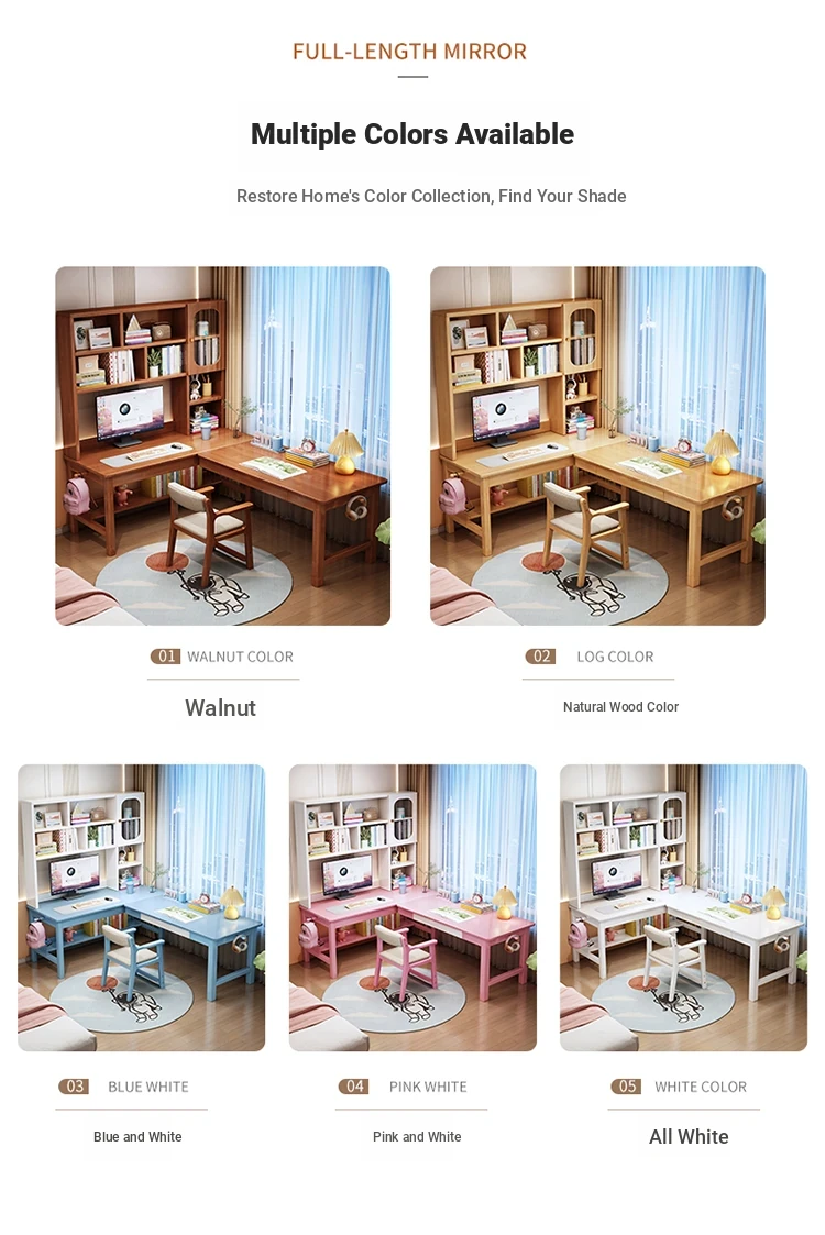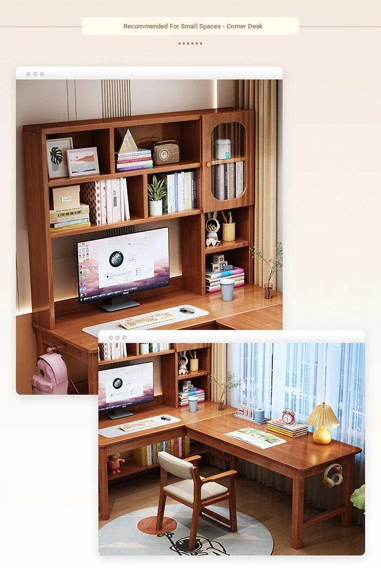 Solid Wood L-Shaped Desk & Bookshelf Set - Kids' Study Table, Home Student Writing Desk, Corner Computer Desk for Home Office & Study Room
