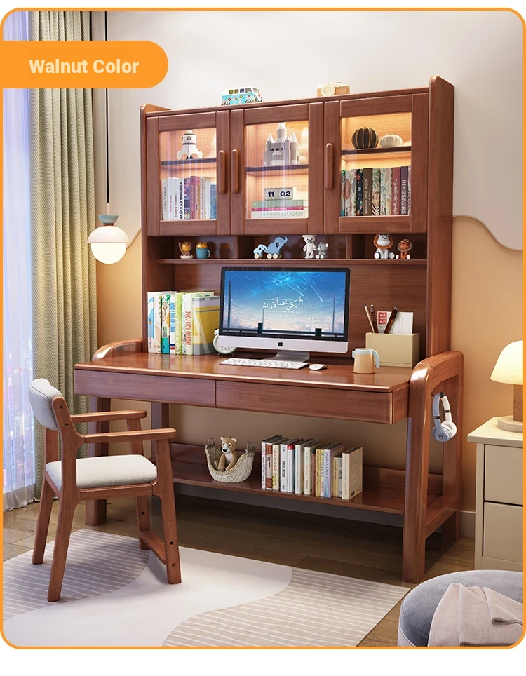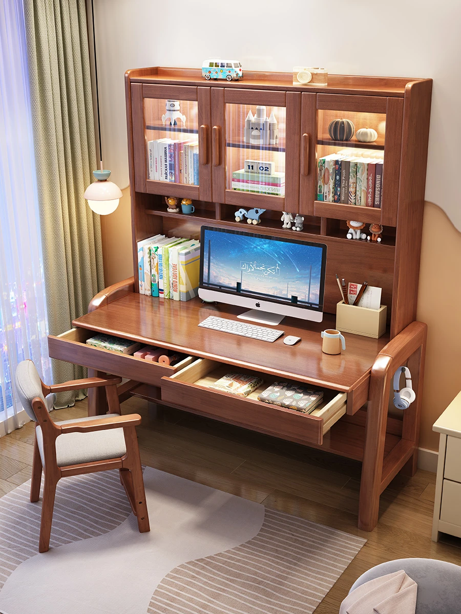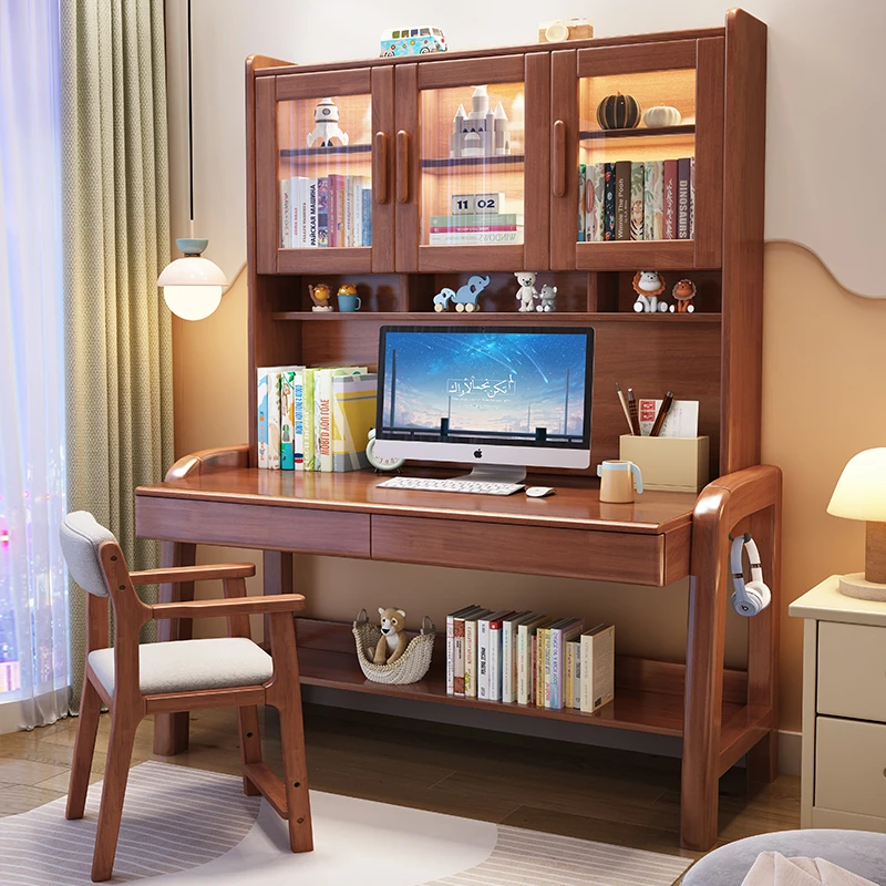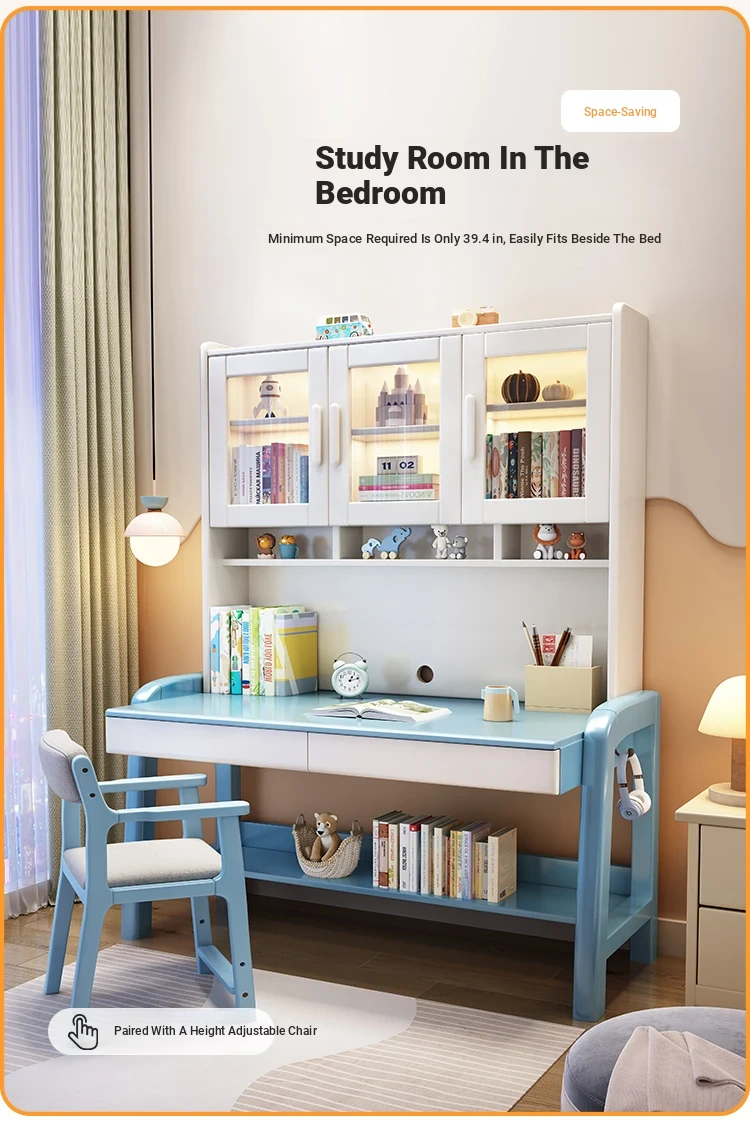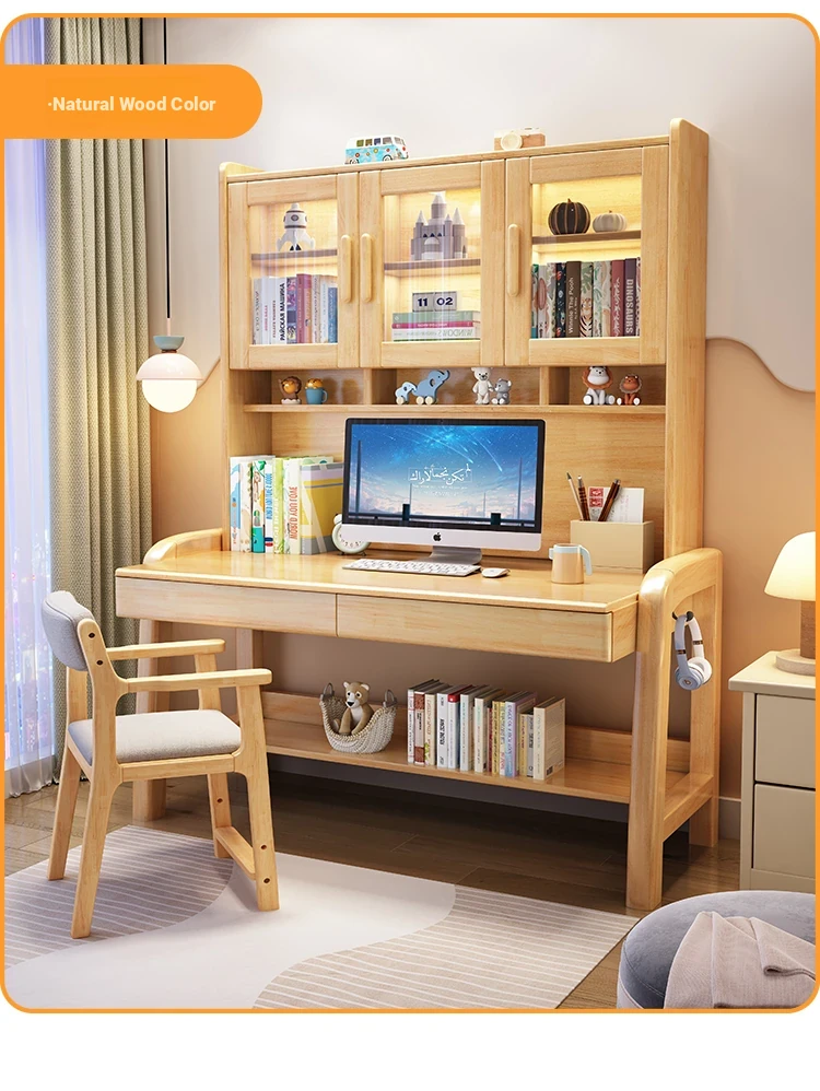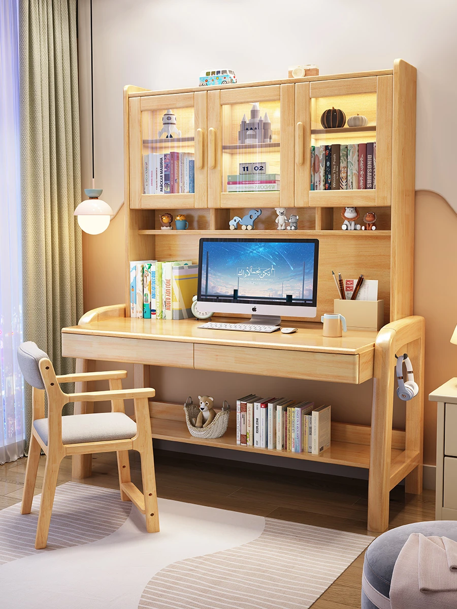 Solid Wood Study Desk and Bookshelf Combo - Children's Learning Desk for Home and Bedroom, Adjustable Writing Table for Middle School Students, Perfect for Computer Use.