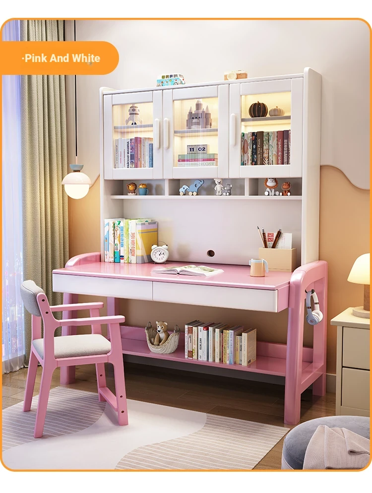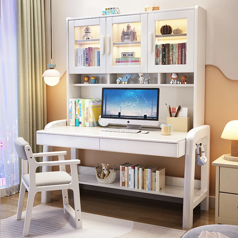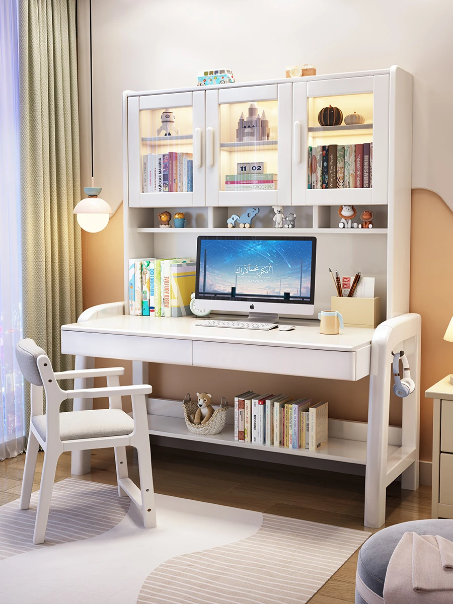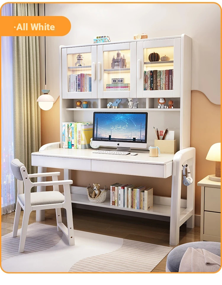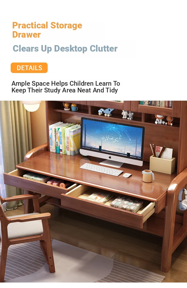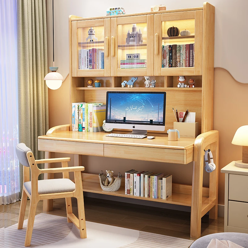 Solid Wood Study Desk and Bookshelf Combo - Children's Learning Desk for Home and Bedroom, Adjustable Writing Table for Middle School Students, Perfect for Computer Use.