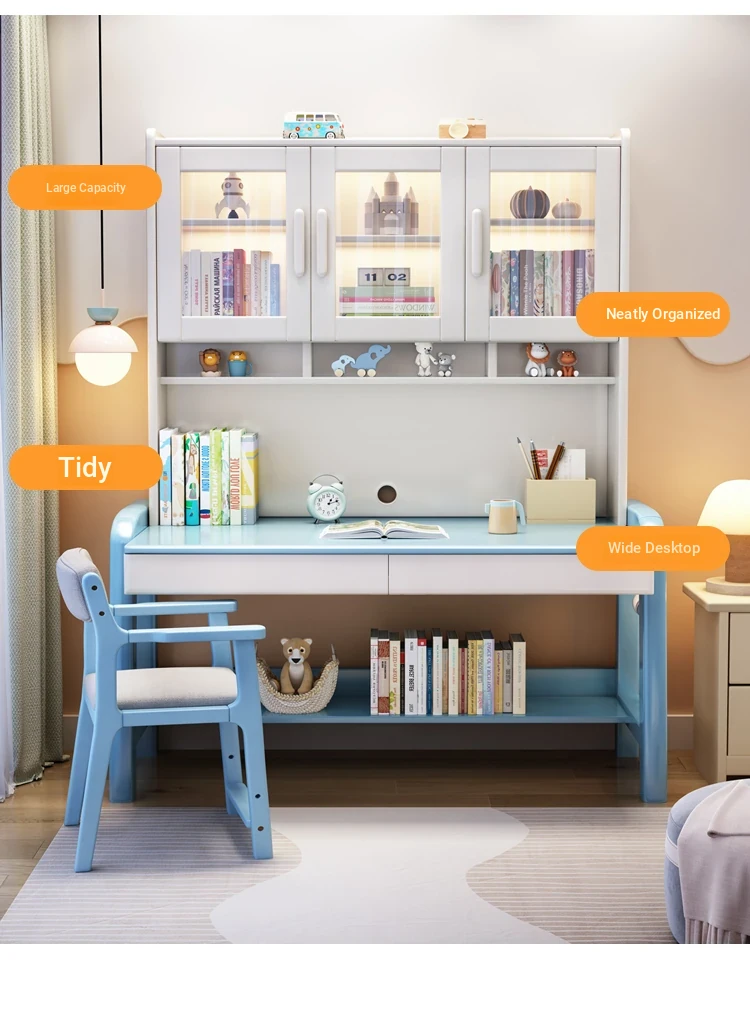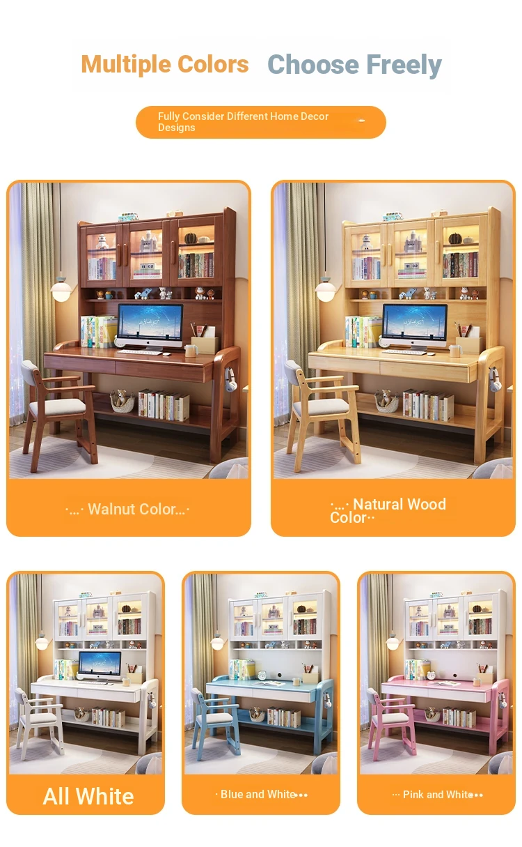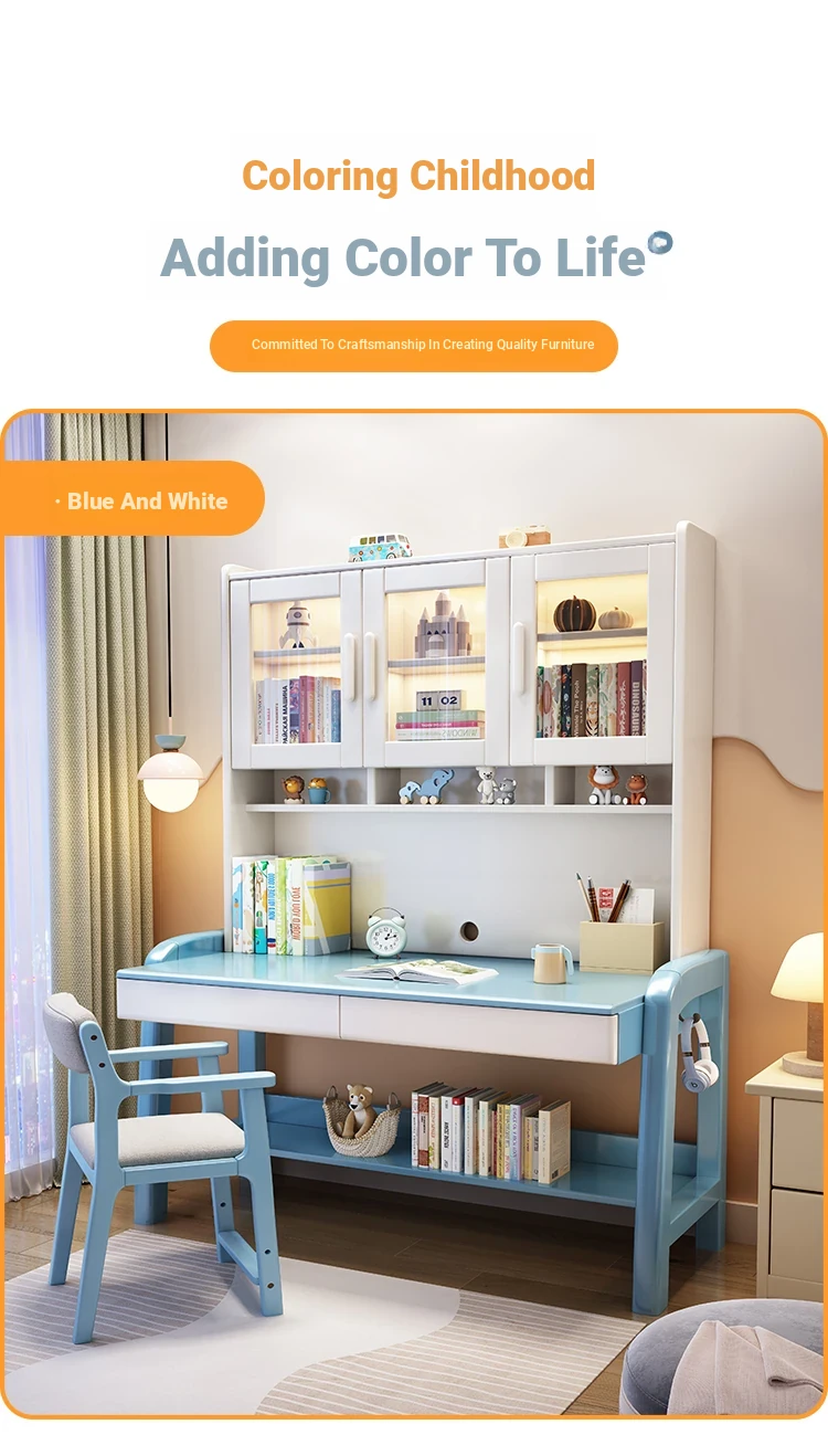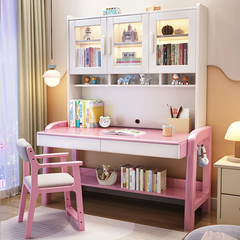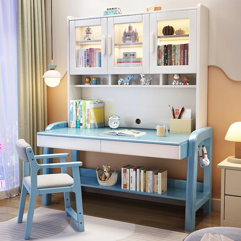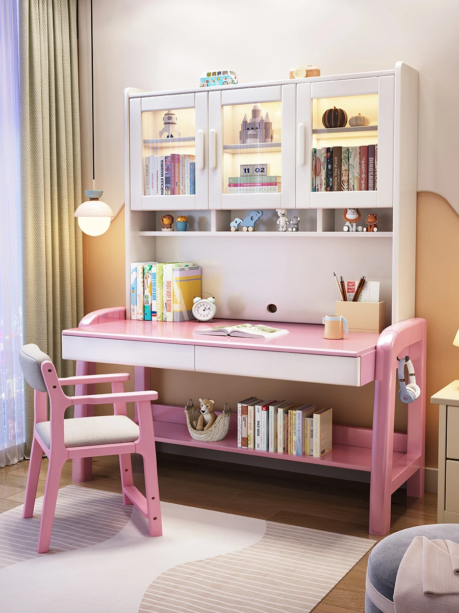 Solid Wood Study Desk and Bookshelf Combo - Children's Learning Desk for Home and Bedroom, Adjustable Writing Table for Middle School Students, Perfect for Computer Use.