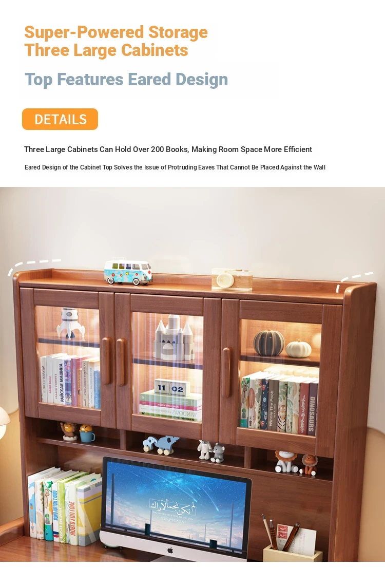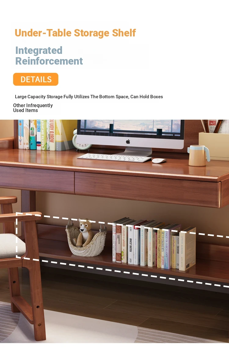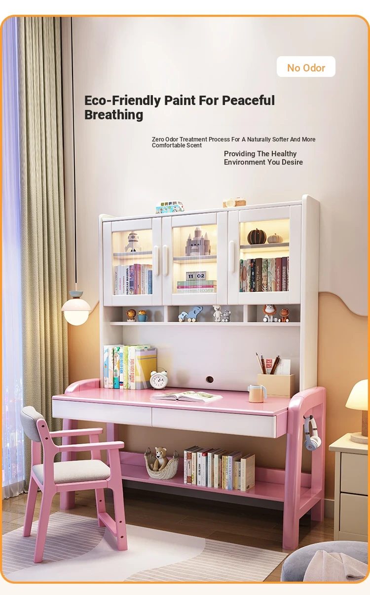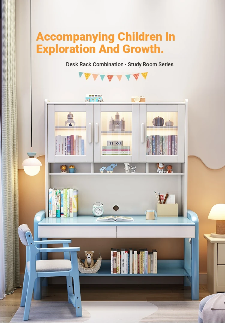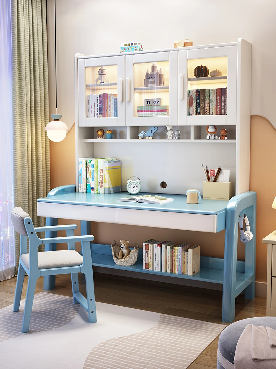 Solid Wood Study Desk and Bookshelf Combo - Children's Learning Desk for Home and Bedroom, Adjustable Writing Table for Middle School Students, Perfect for Computer Use.