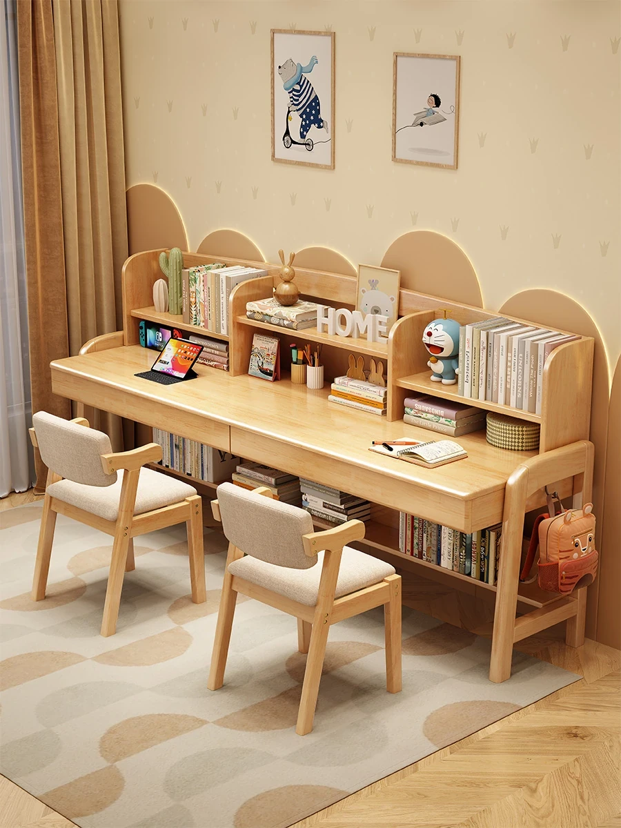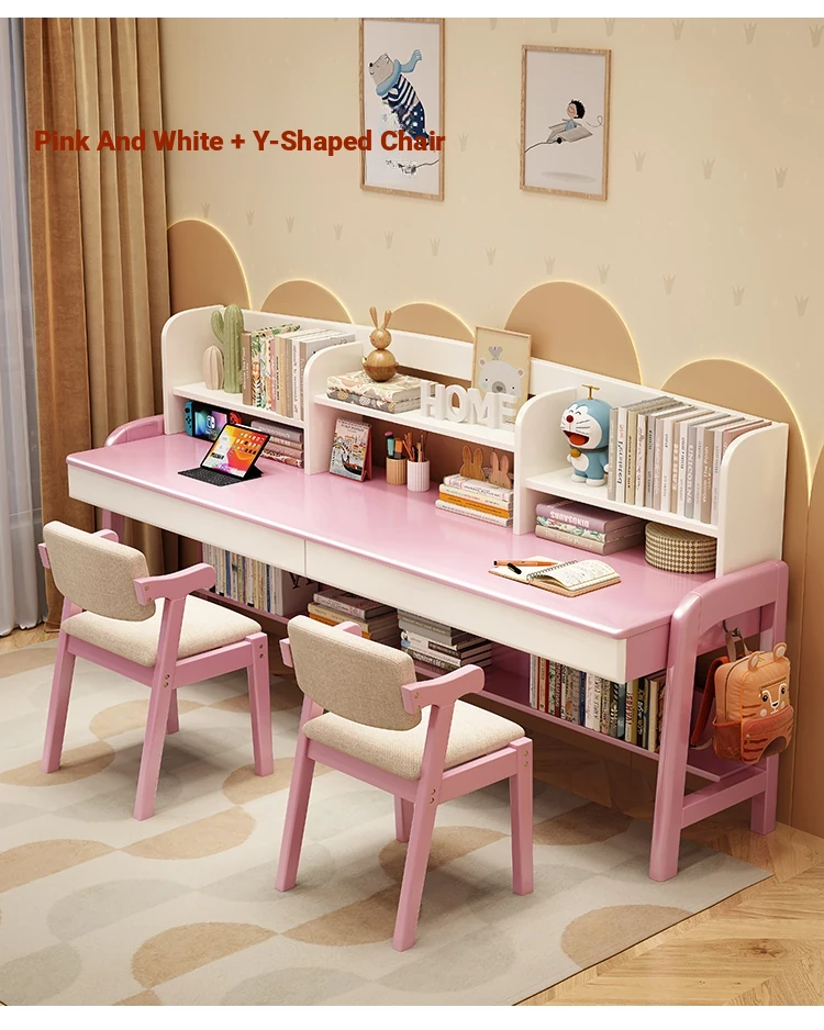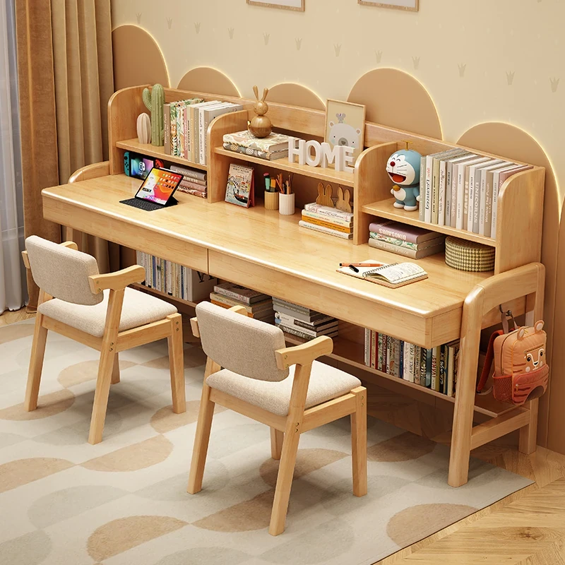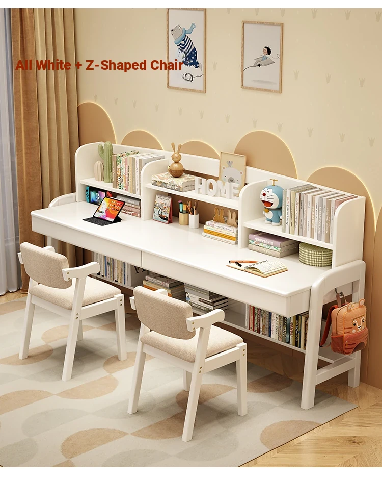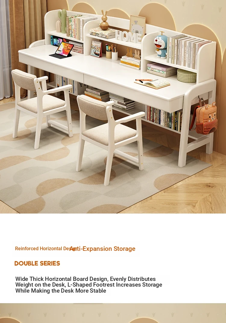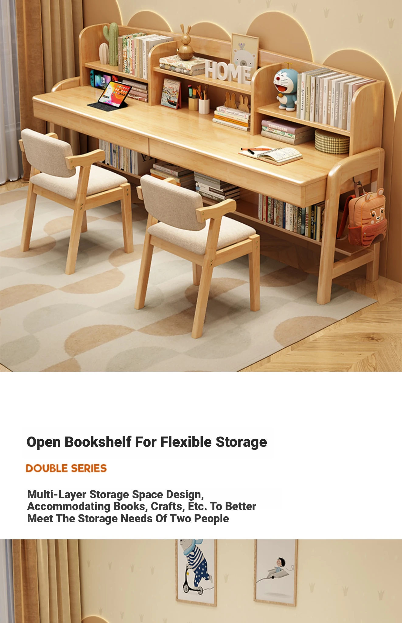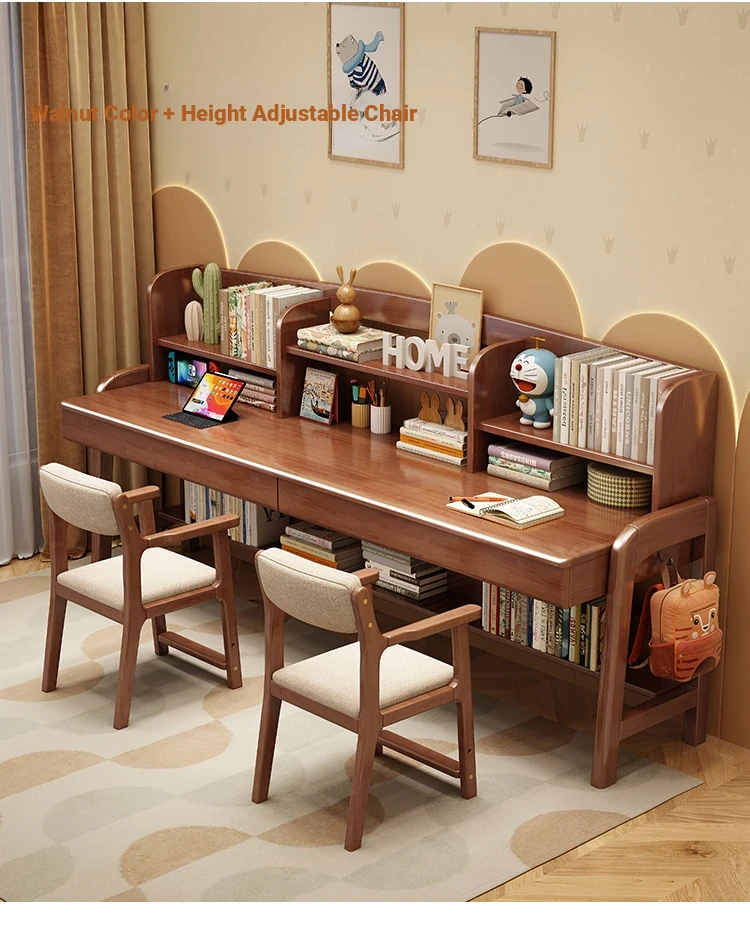 Stylish Solid Wood Desk and Bookshelf Combo – Perfect for Home, Students, and Kids! Spacious Extended Writing Table for Bedrooms, Ideal for Shared Study Spaces.