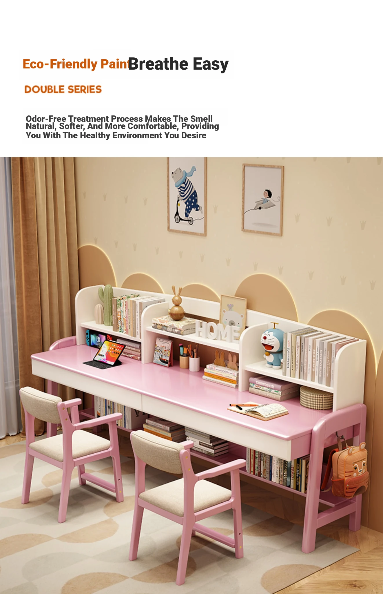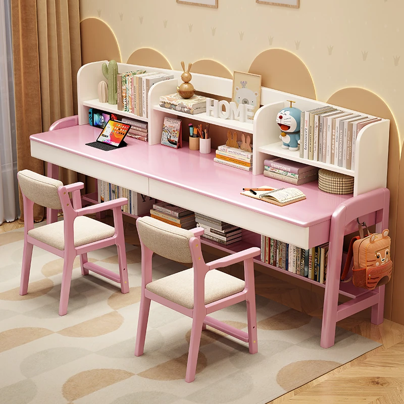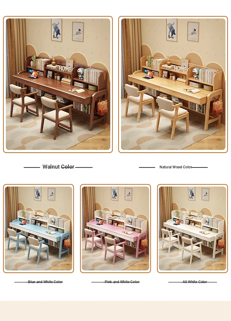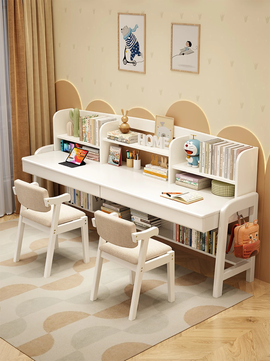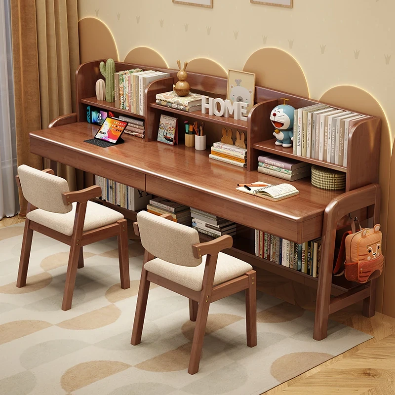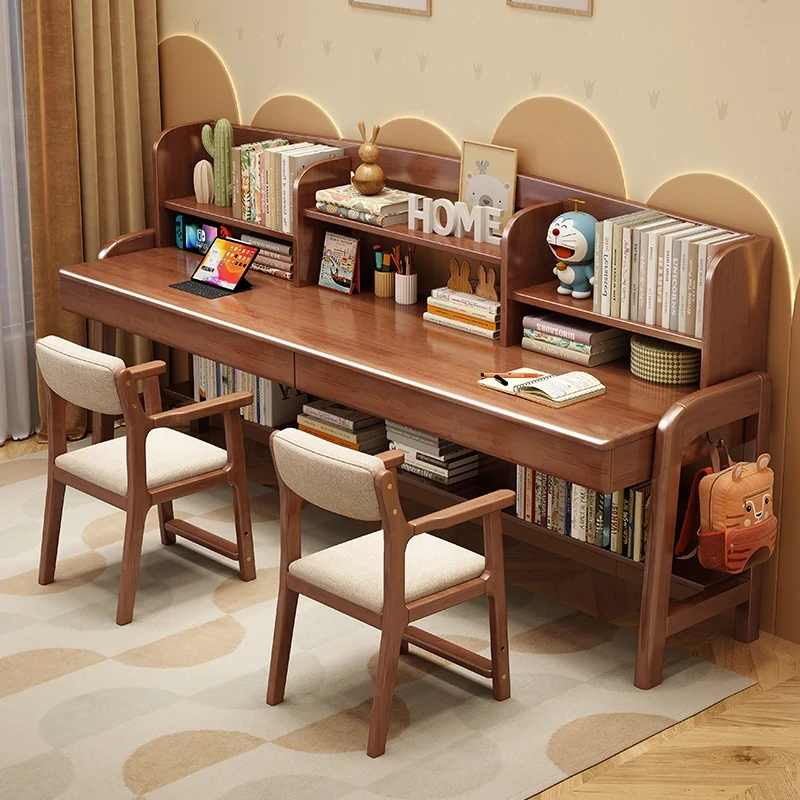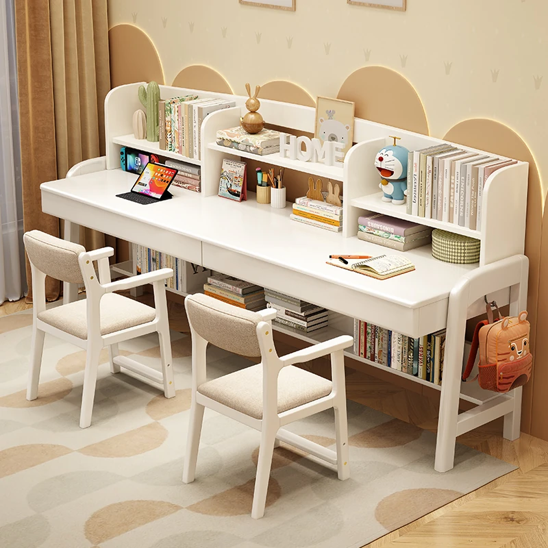 Stylish Solid Wood Desk and Bookshelf Combo – Perfect for Home, Students, and Kids! Spacious Extended Writing Table for Bedrooms, Ideal for Shared Study Spaces.