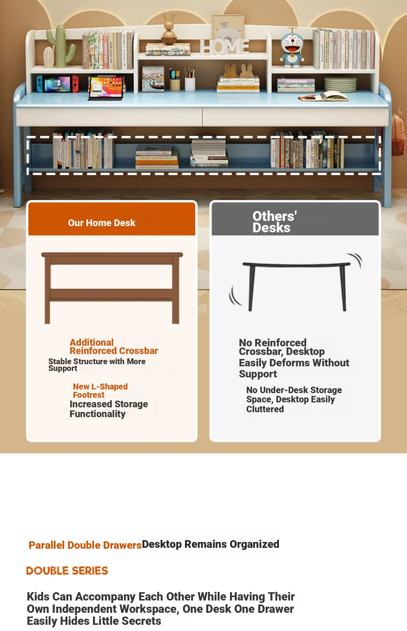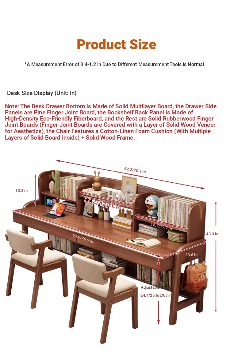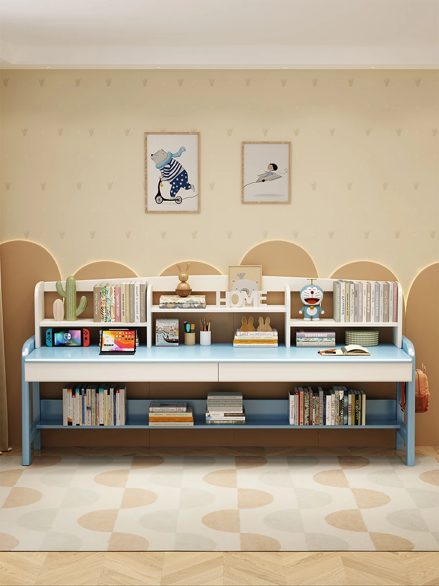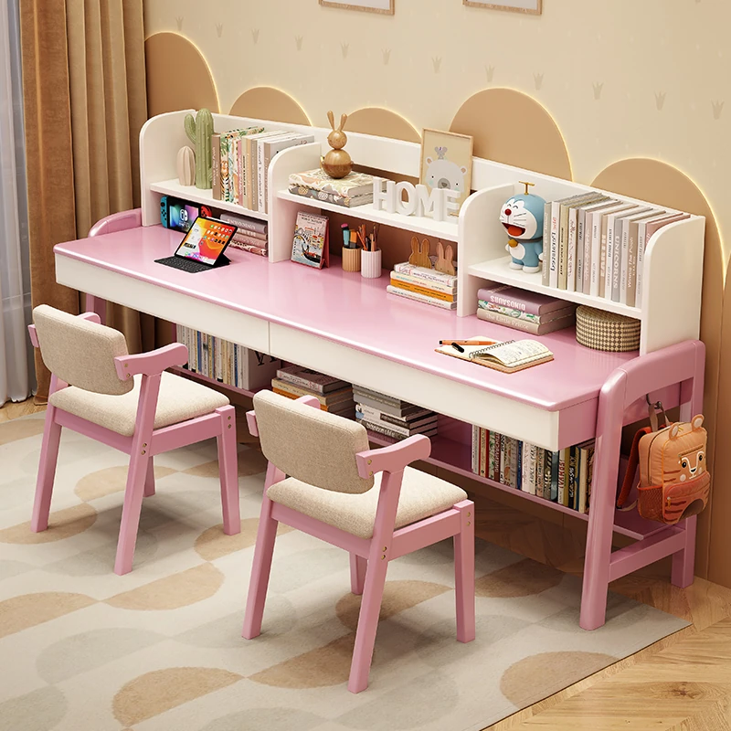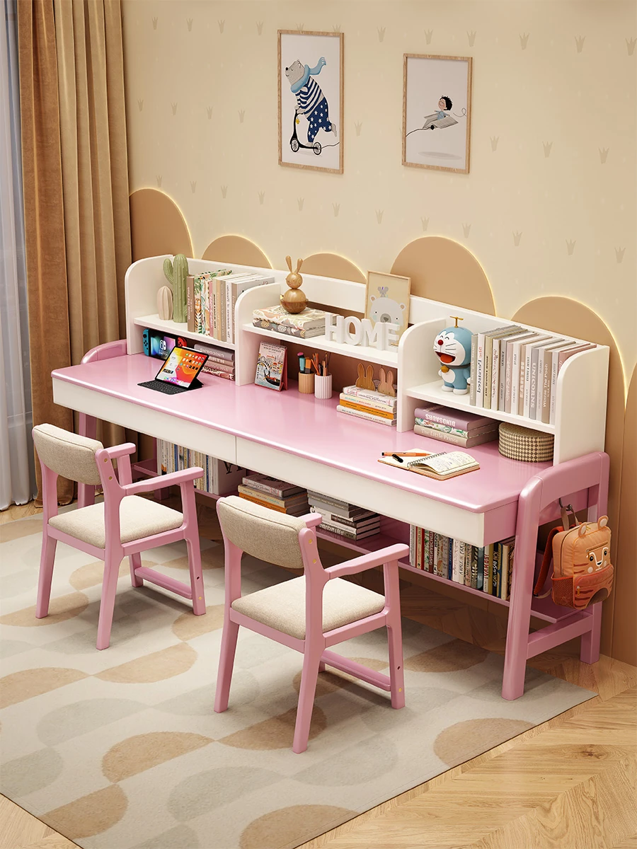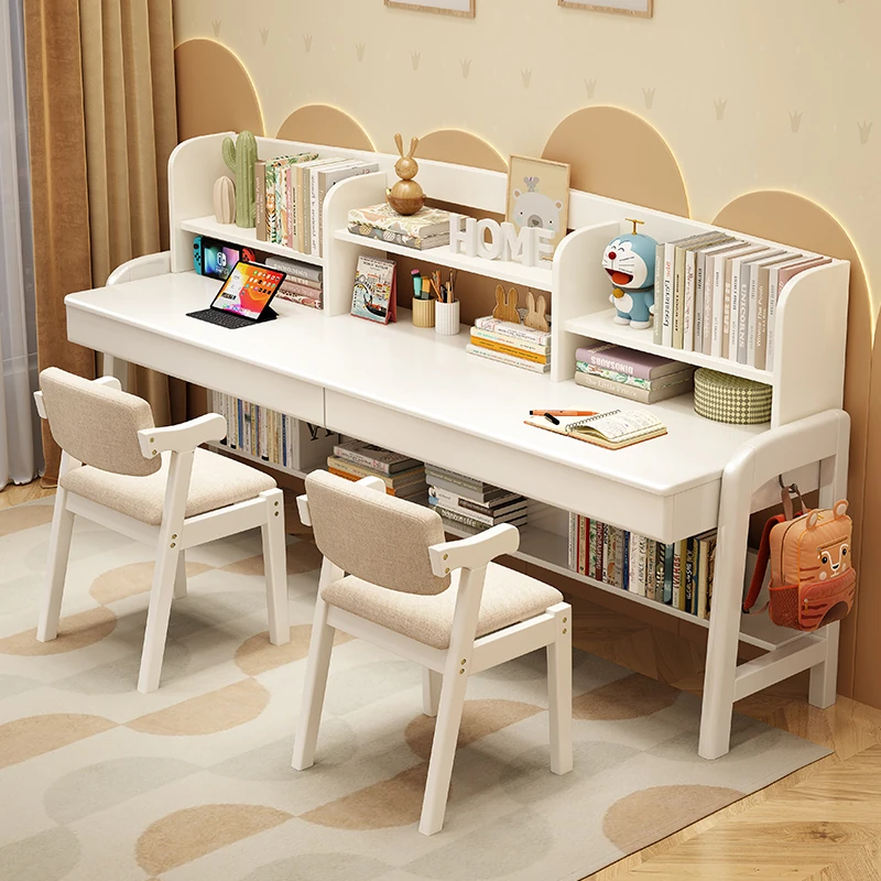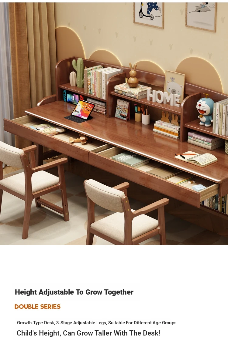 Stylish Solid Wood Desk and Bookshelf Combo – Perfect for Home, Students, and Kids! Spacious Extended Writing Table for Bedrooms, Ideal for Shared Study Spaces.