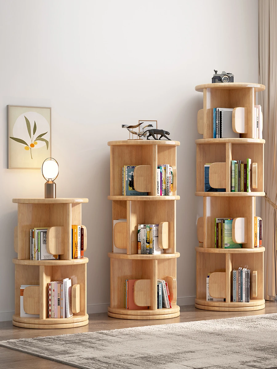360度回転する無垢材書棚 - お子様にも最適なシンプルな収納スペース!オフィスや家庭用にぴったりのスタイリッシュな本収納ラックで、快適な読書空間を実現します。