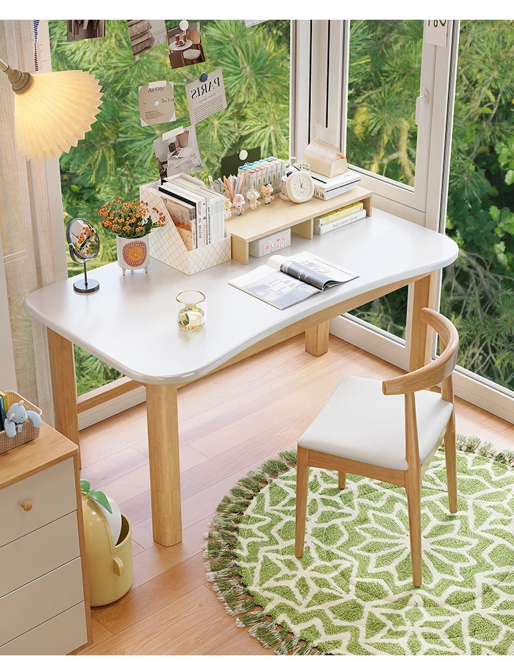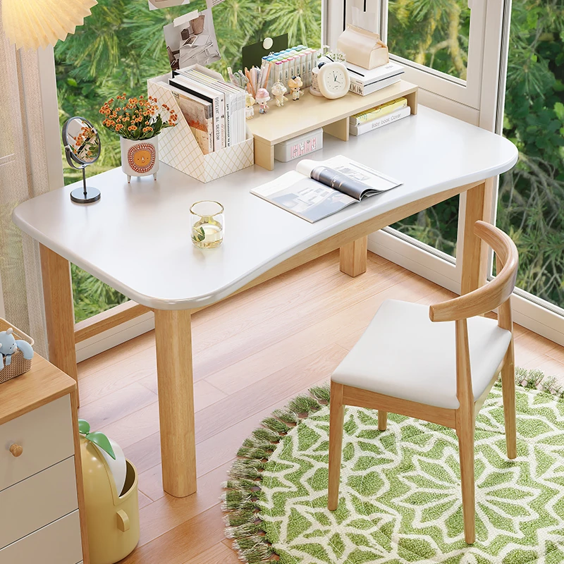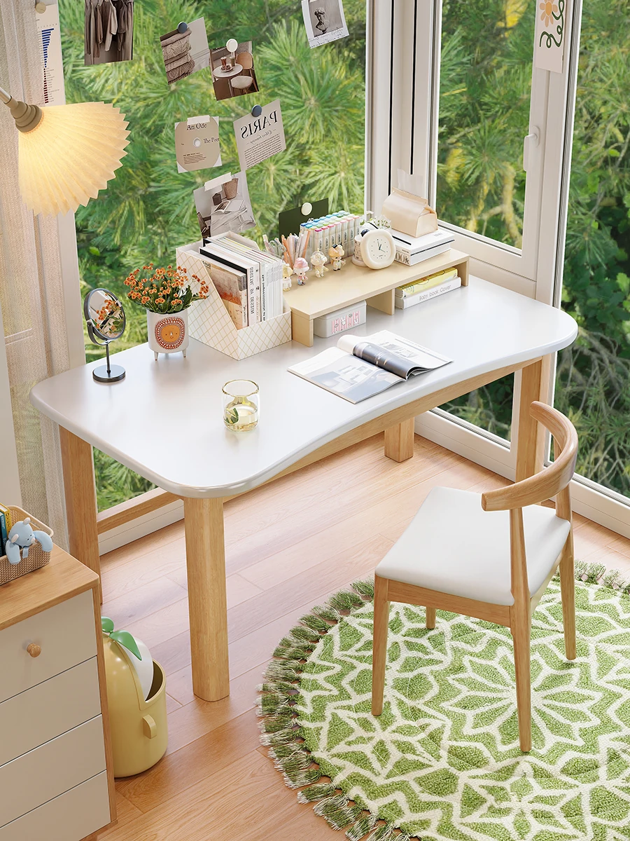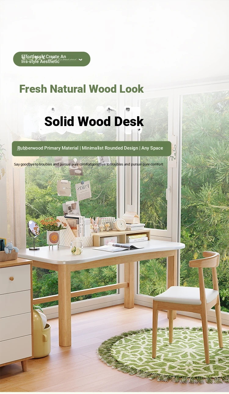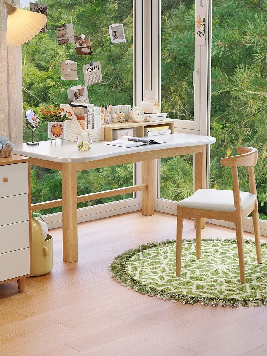 Elegant Solid Wood Desk for Small Spaces - Scandinavian Minimalist Home Office Table, Perfect for Study, Living Room, or Bedroom - Simple and Stylish Computer Desk