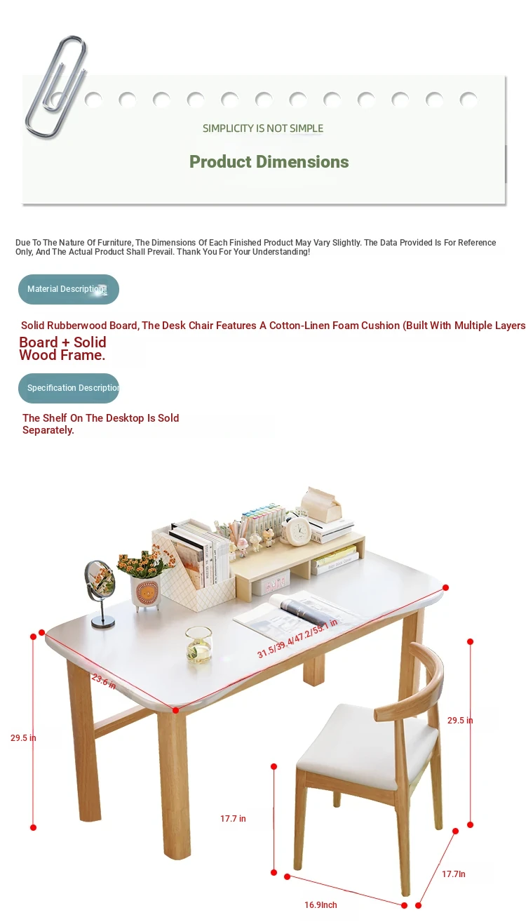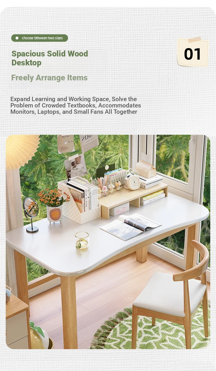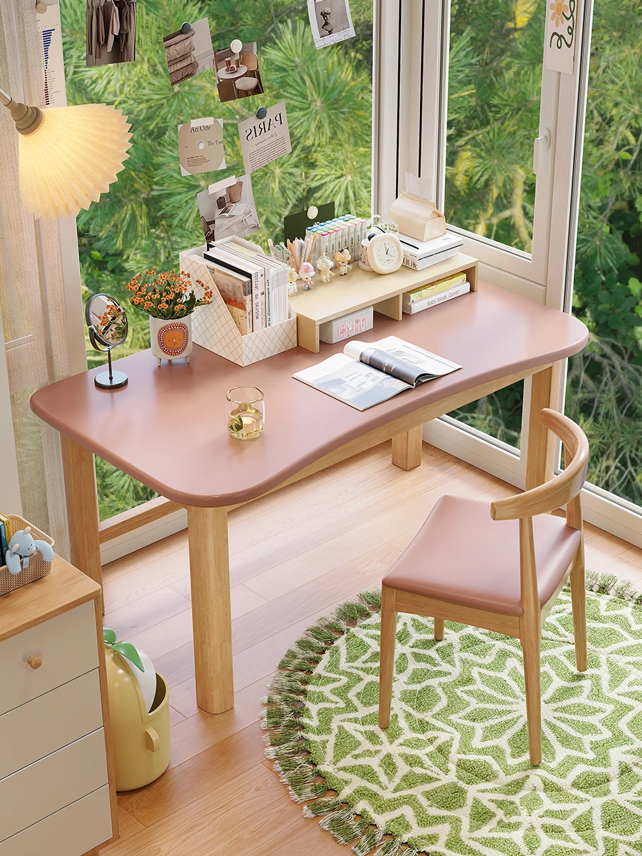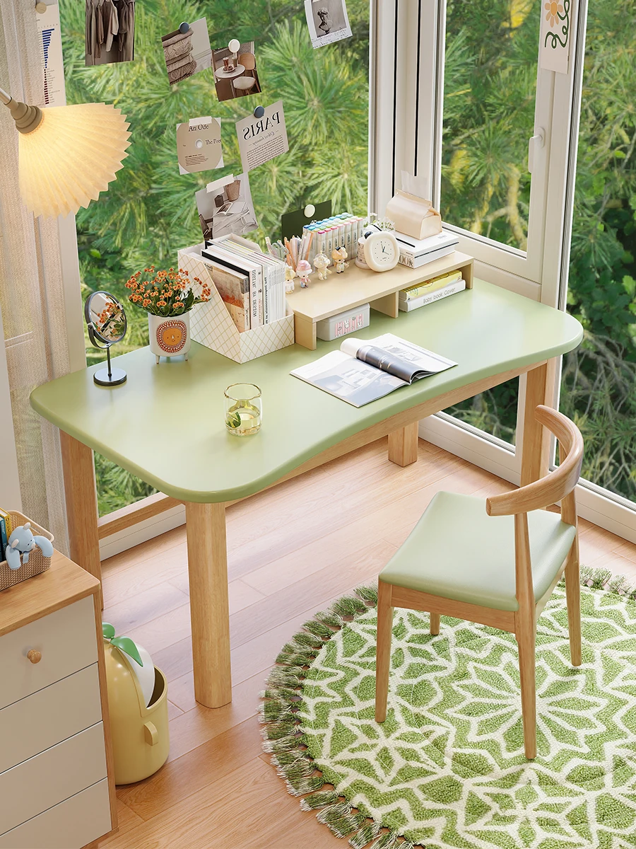 Elegant Solid Wood Desk for Small Spaces - Scandinavian Minimalist Home Office Table, Perfect for Study, Living Room, or Bedroom - Simple and Stylish Computer Desk