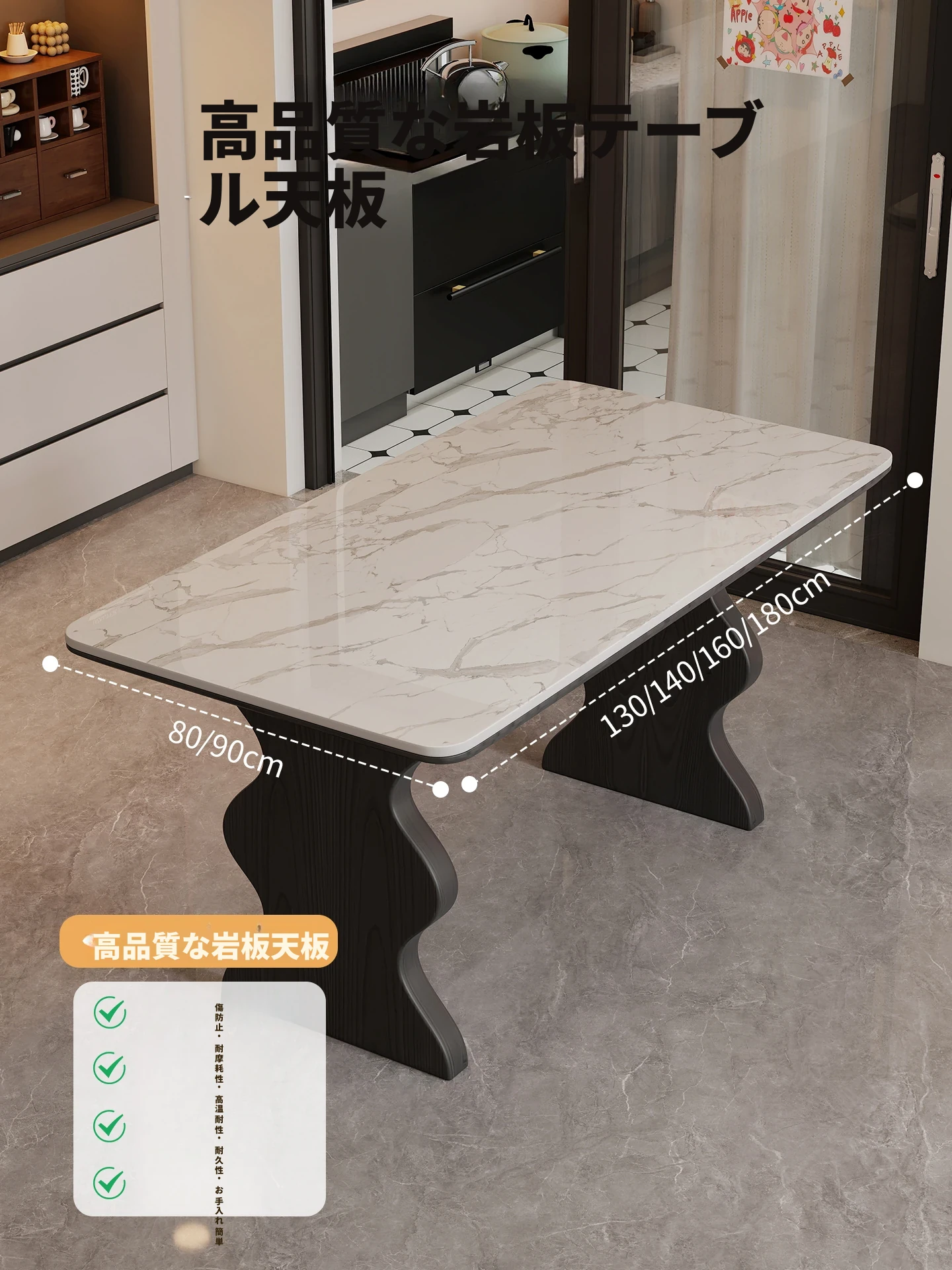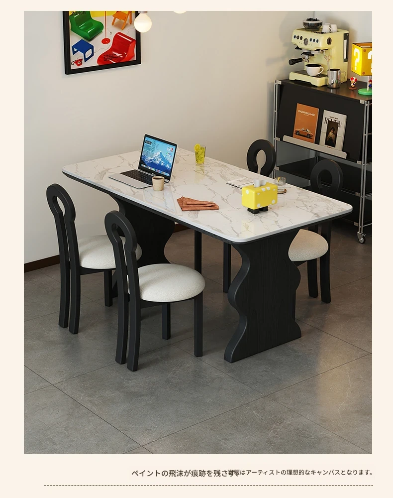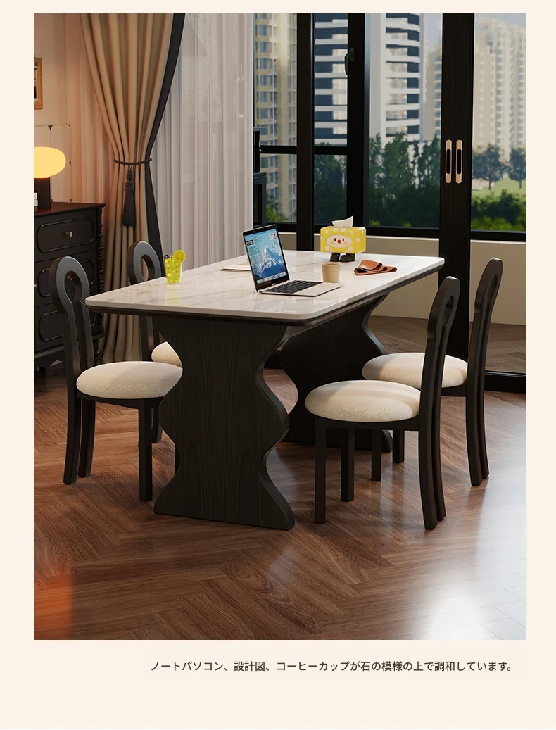 フランス風ビンテージ無垢材ロックボードダイニングテーブル|イタリアンラグジュアリー|高級感あふれるブラック|コンパクトサイズで小宅に最適|アメリカンスタイルのウッドテーブル