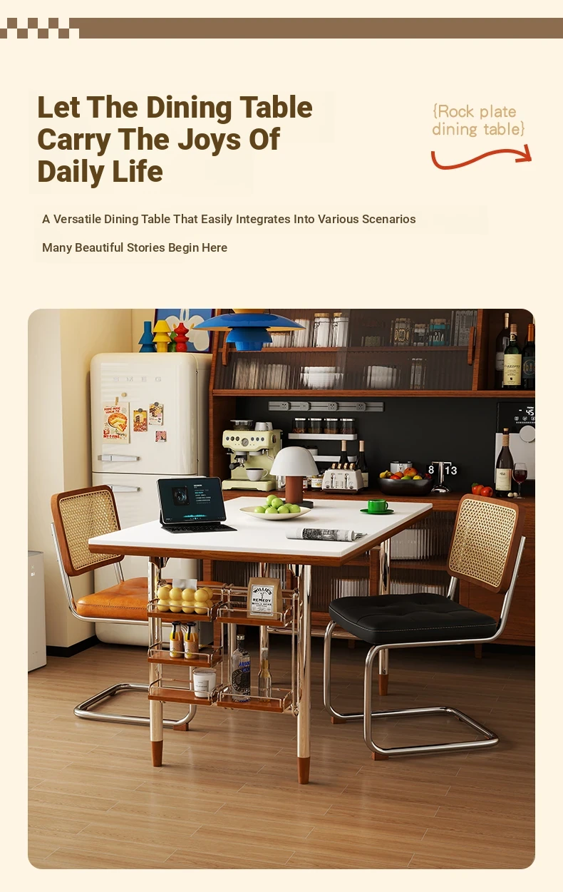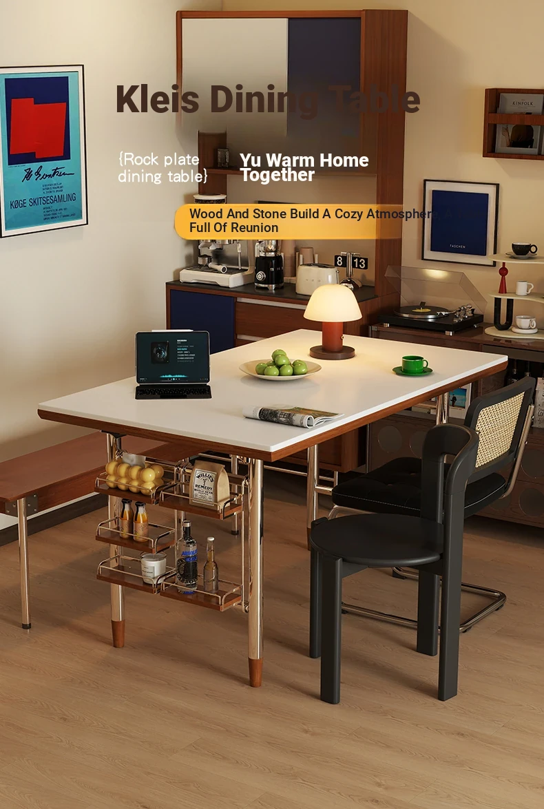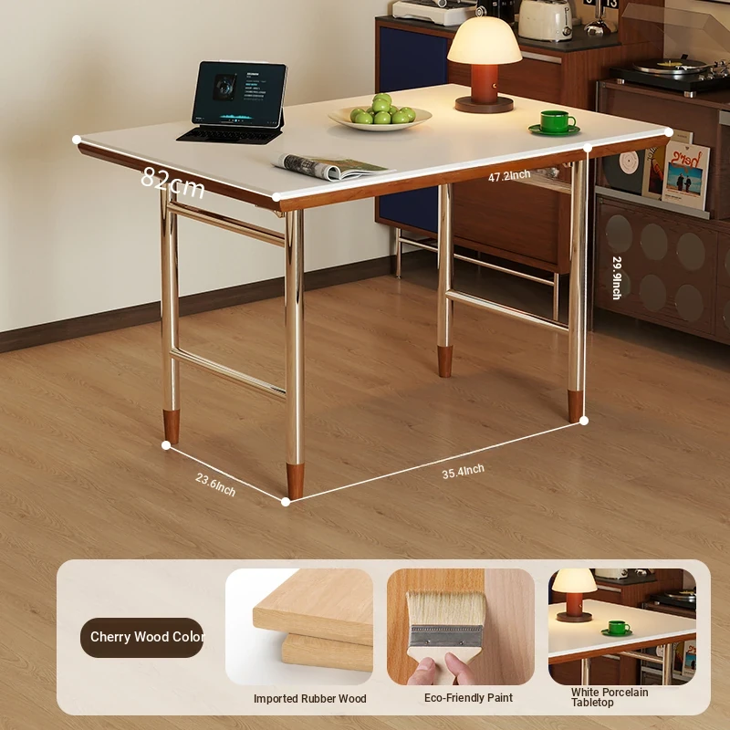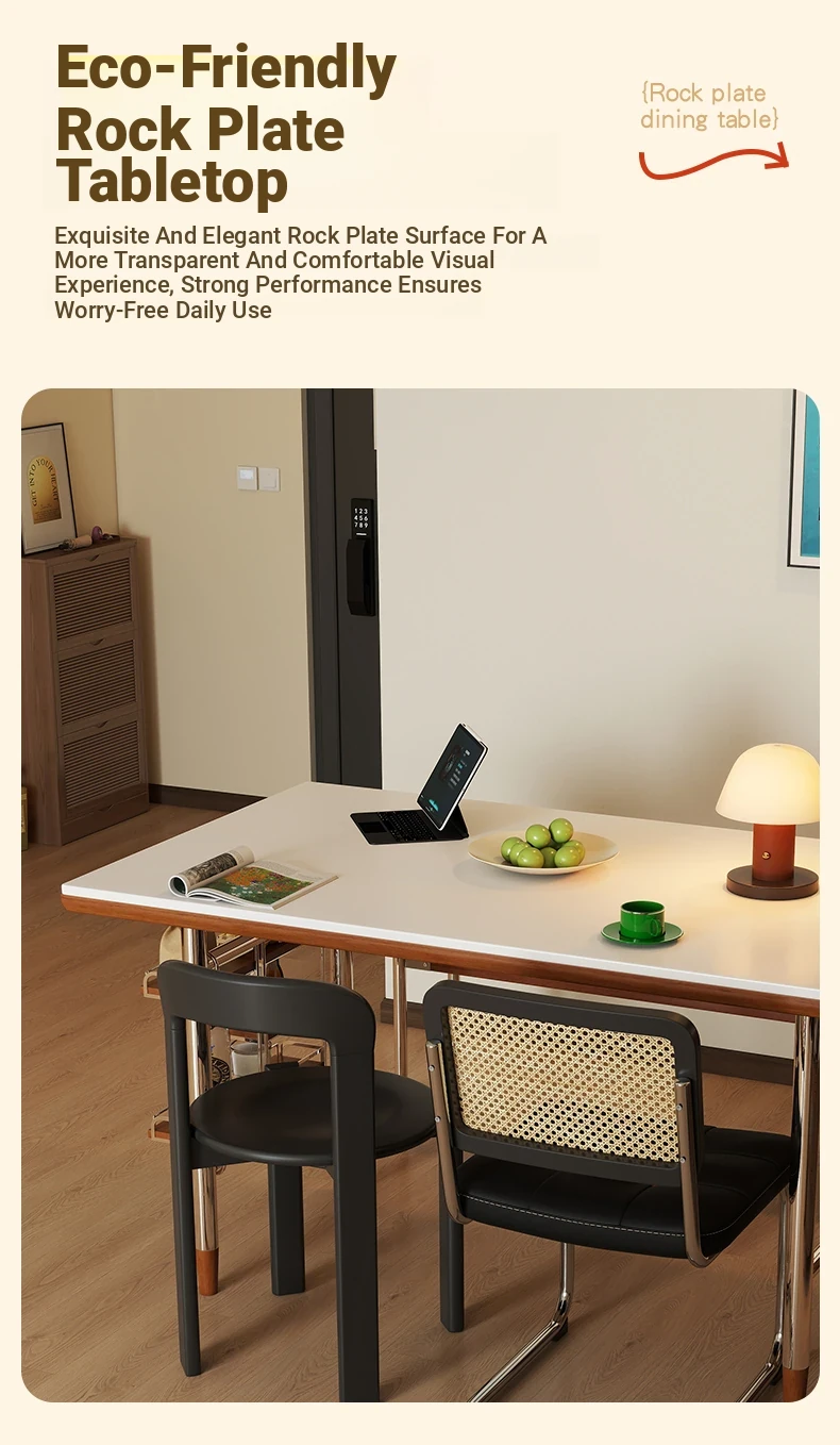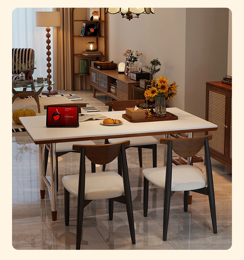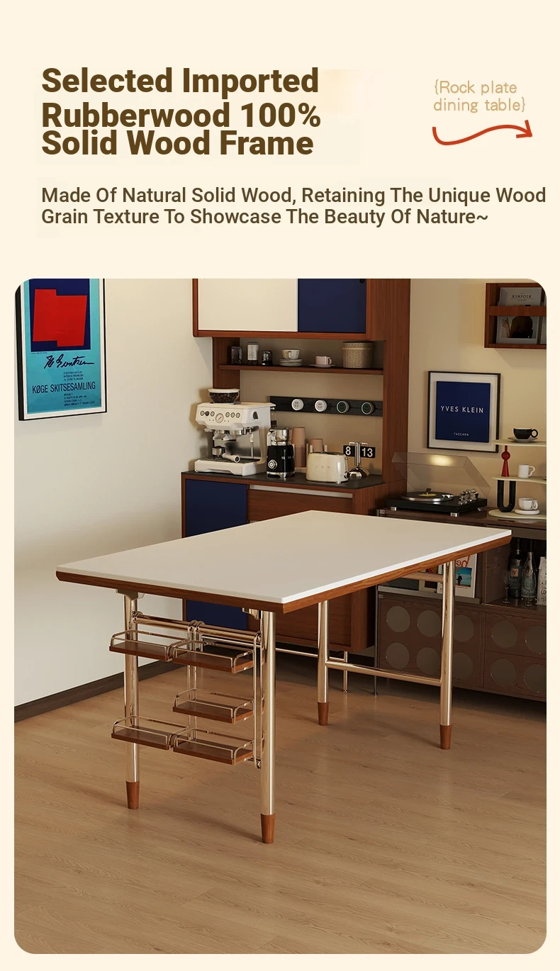 Klais Vintage Solid Wood Dining Table with Rock Panel - French Retro Style Rectangular Table for Small Spaces, Perfect for Family Meals