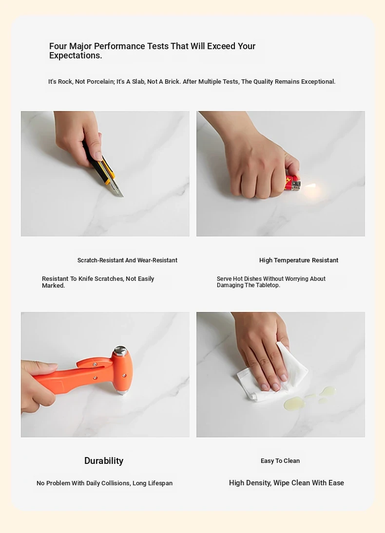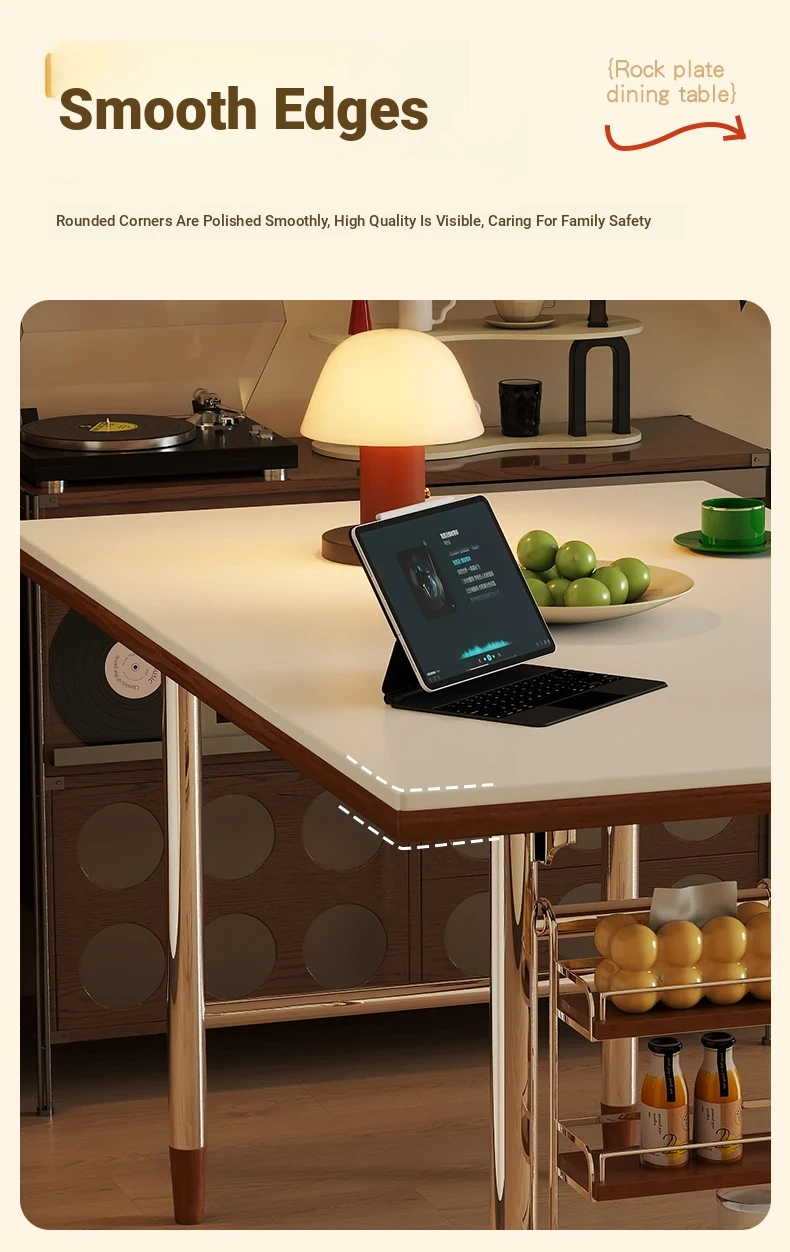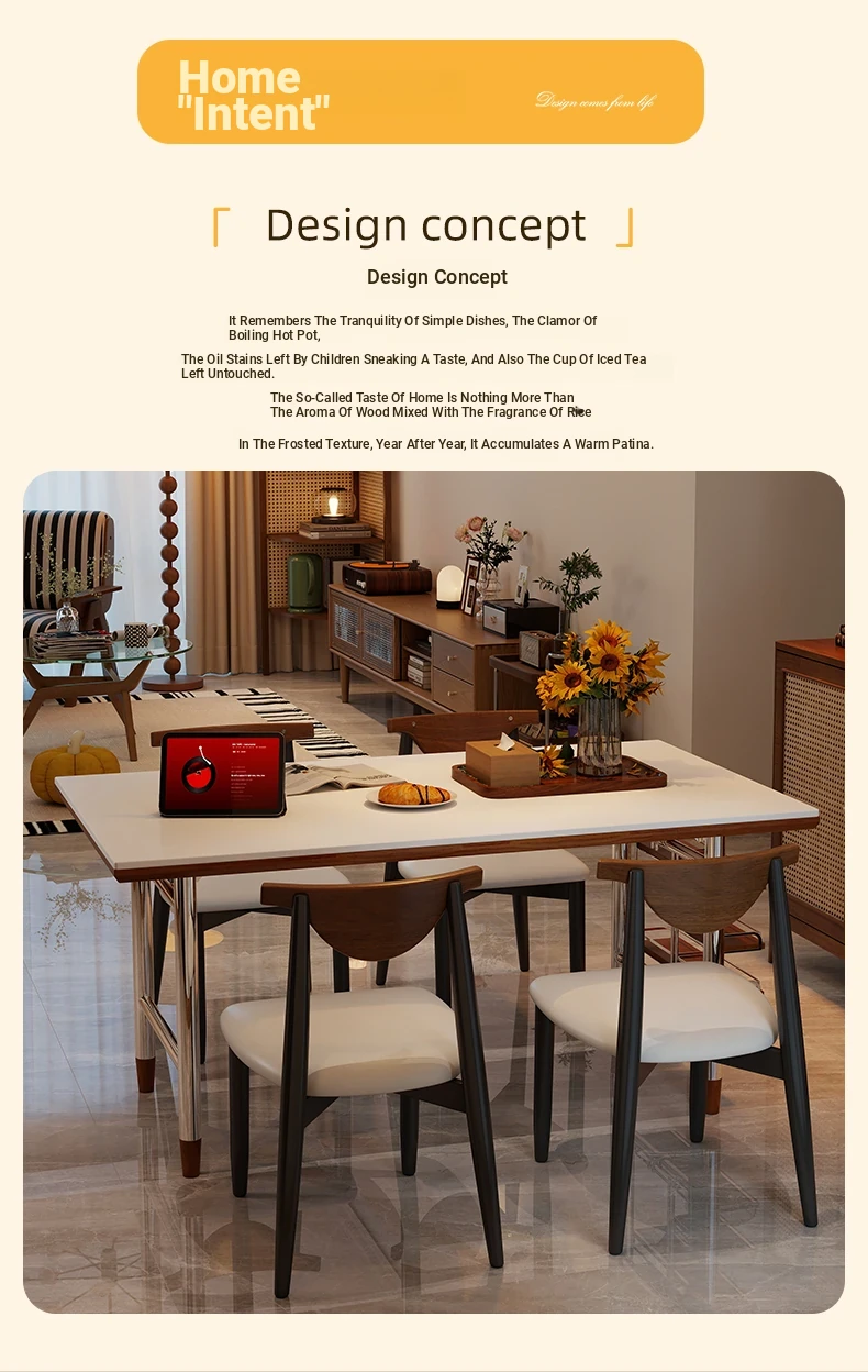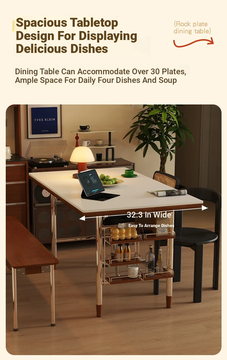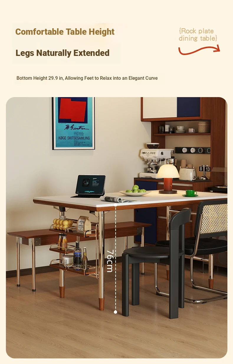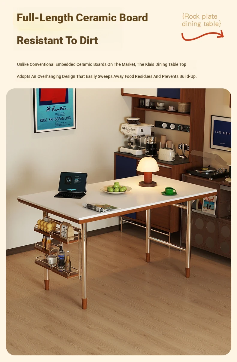 Klais Vintage Solid Wood Dining Table with Rock Panel - French Retro Style Rectangular Table for Small Spaces, Perfect for Family Meals