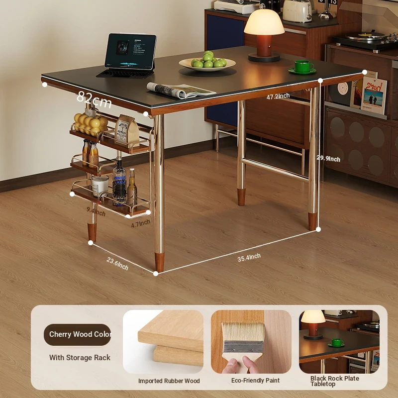 Black rock plate 47.24in single table + shelf [cherry wood color]]