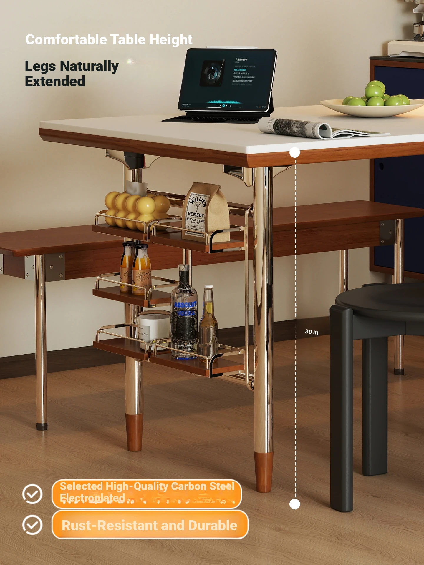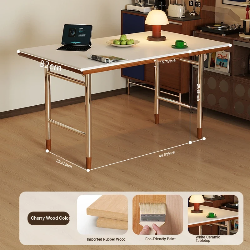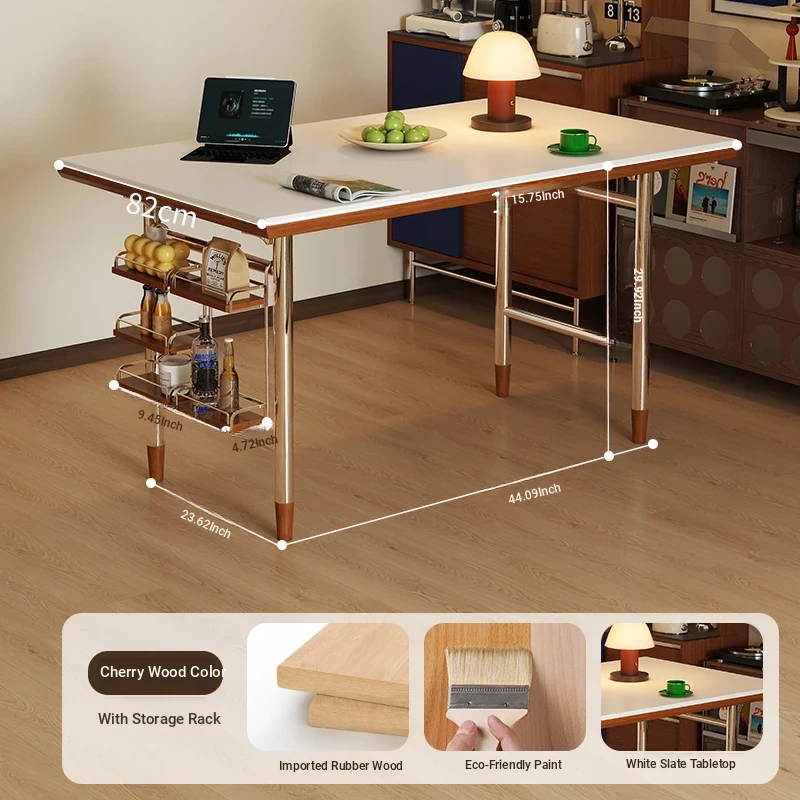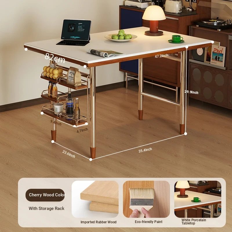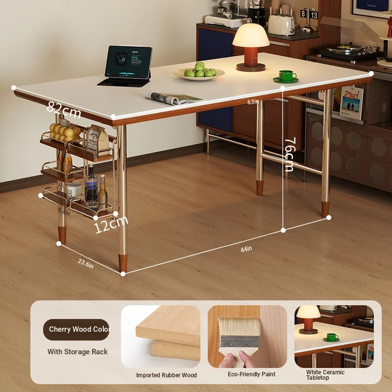 White rock plate 62.99in single table + shelf [cherry wood color]]