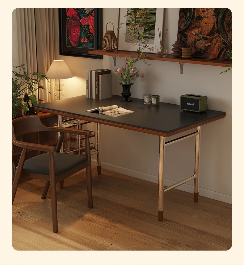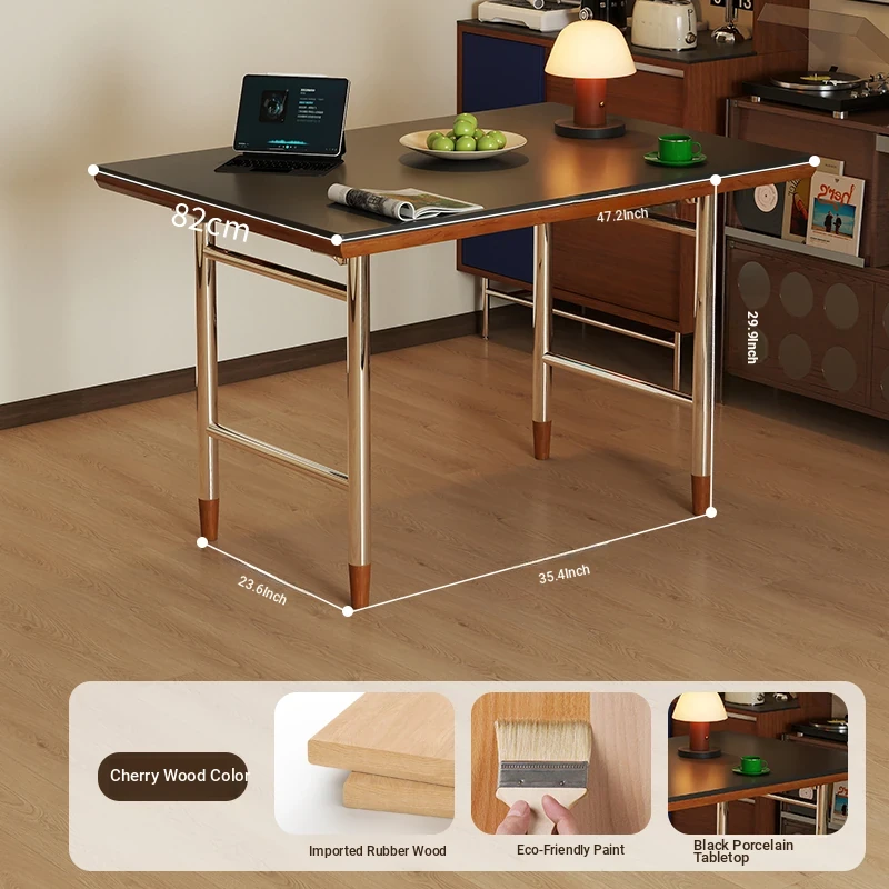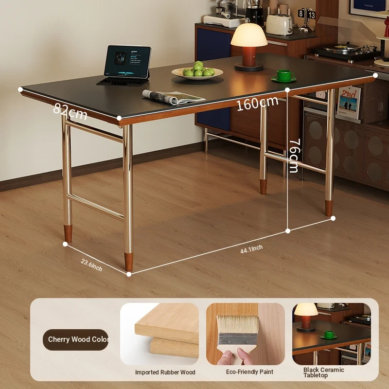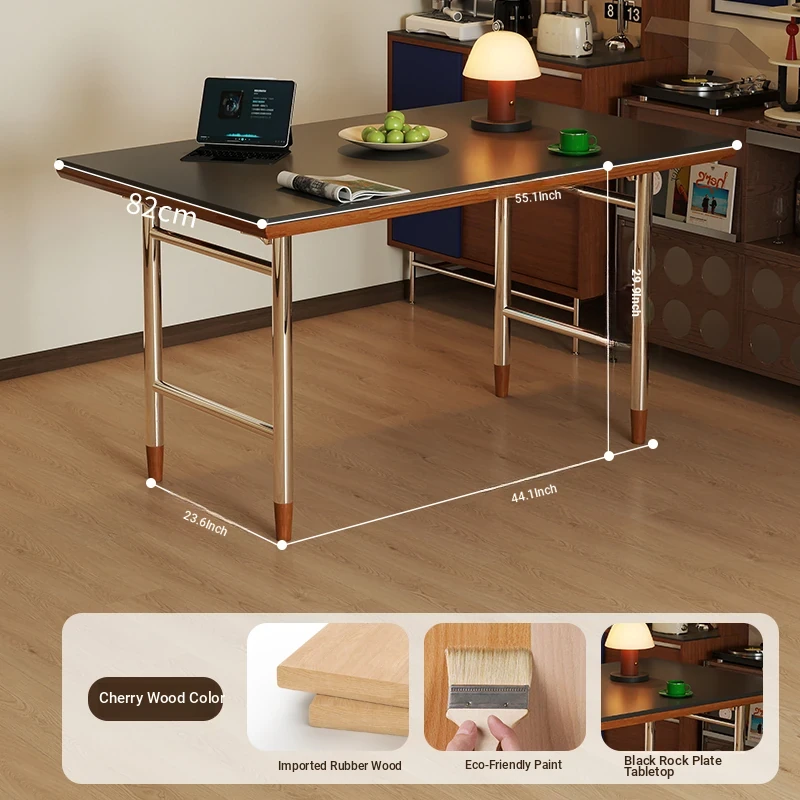 Black rock plate 55.12in single table "cherry wood color]
