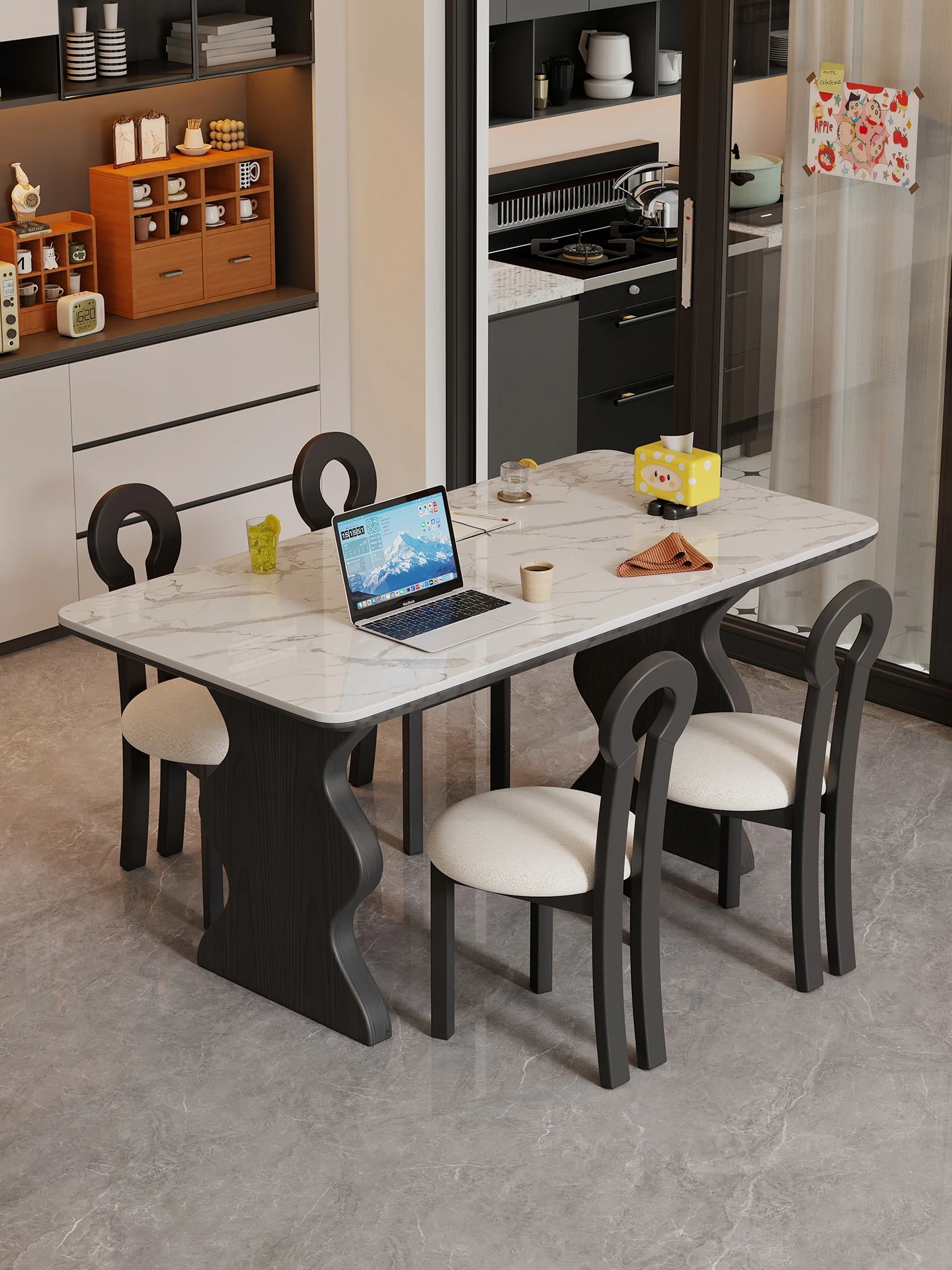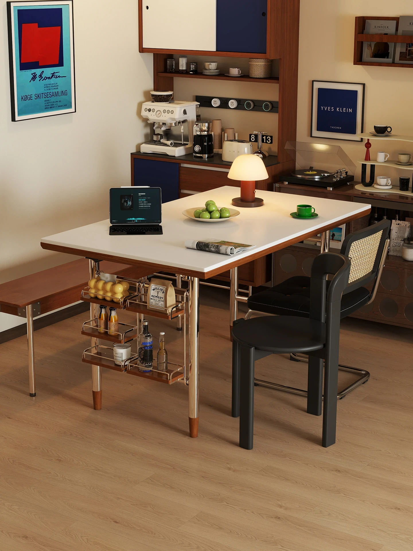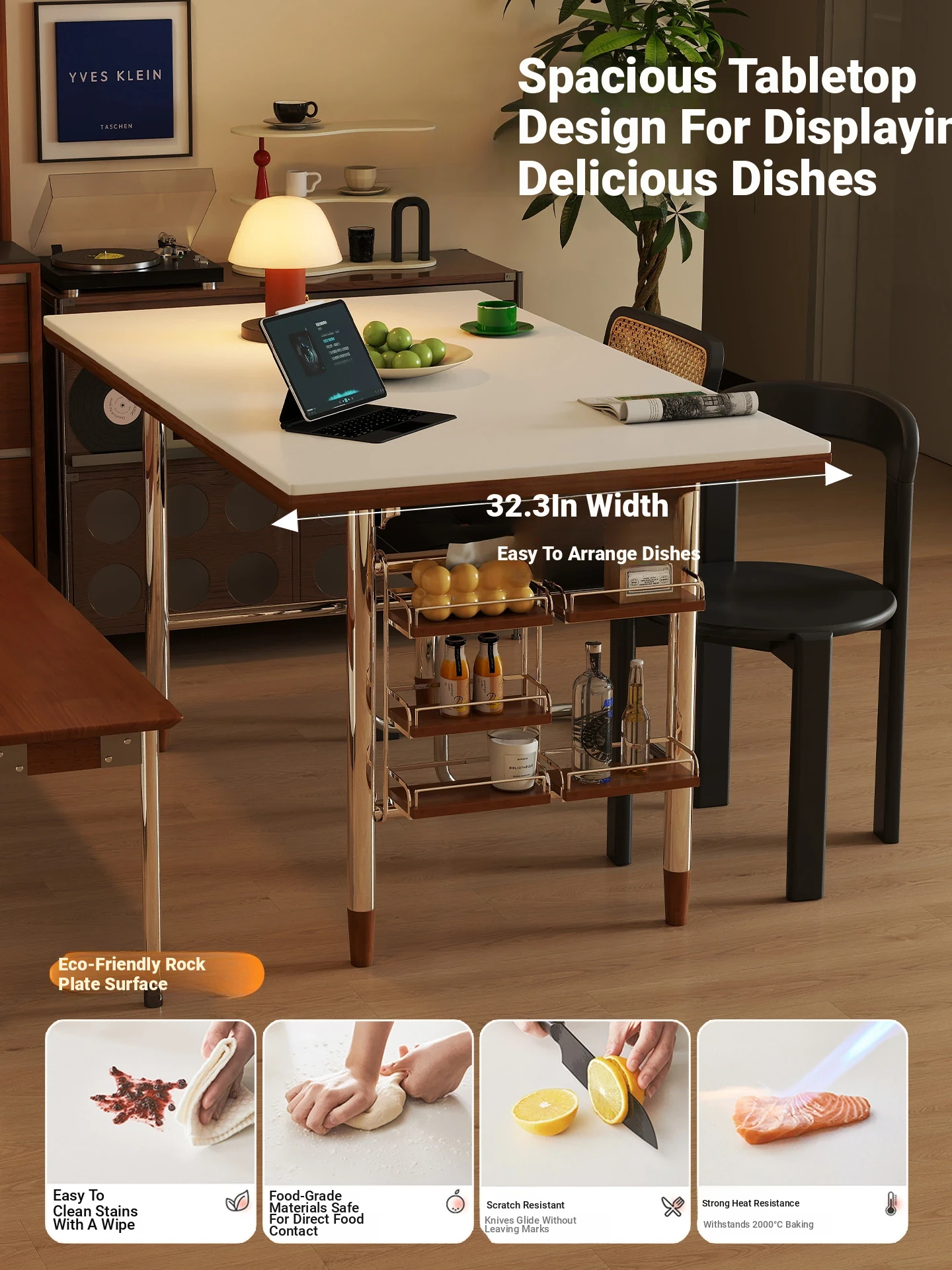 White rock plate 47.24in single table + shelf [cherry wood color]]