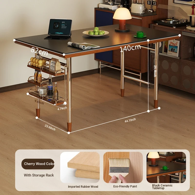 Black rock plate 55.12in single table + shelf [cherry wood color]]